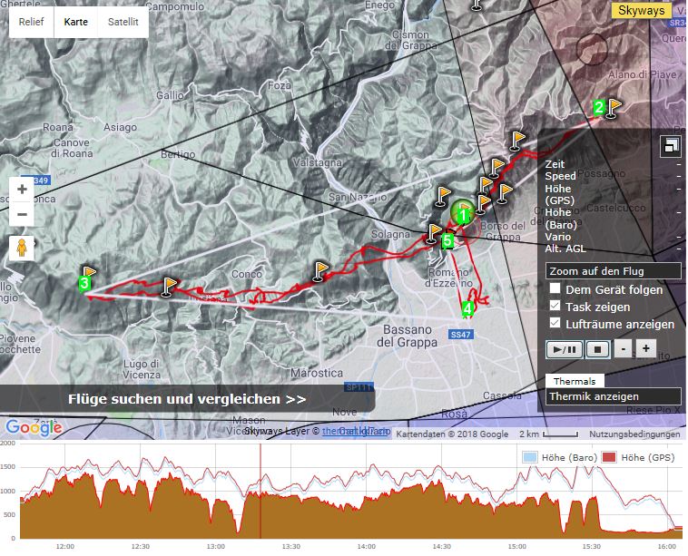 Heute war ein Traumtag in Bassano und ich bin 66,8 km (oder 116XC Punkte) weit gekommen 🙂 (https://www.dhv-xc.de/leonardo/index.php?op=show_flight&flightID=964329). Sandra hat zwei schöne Flüge hingelegt und dabei auch Streckenluft geschnuppert!