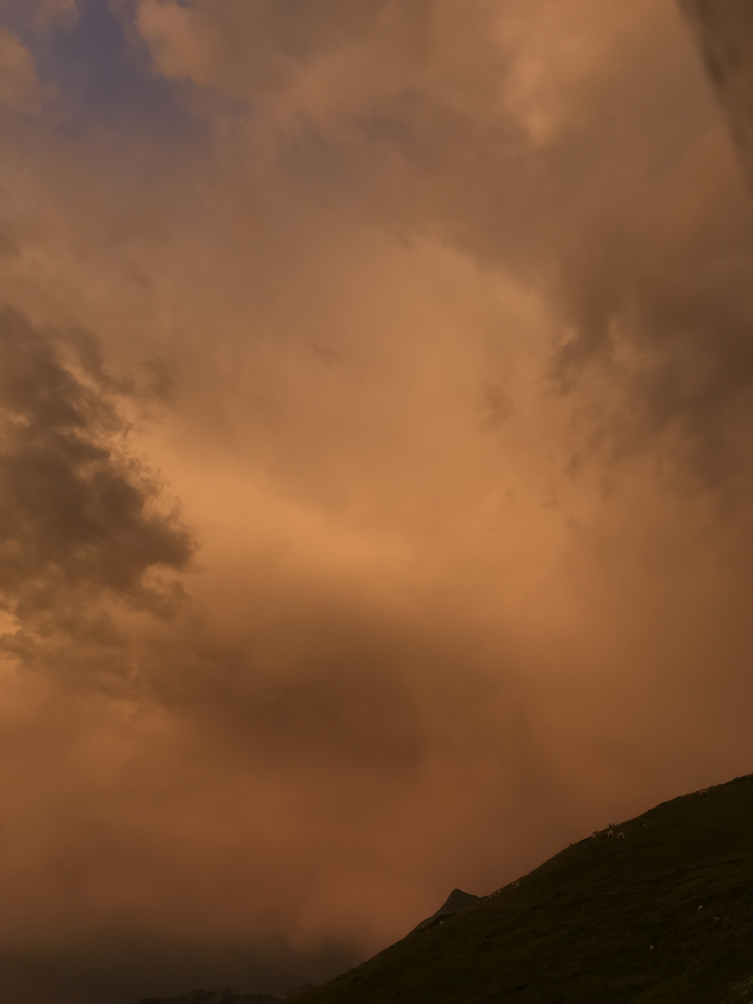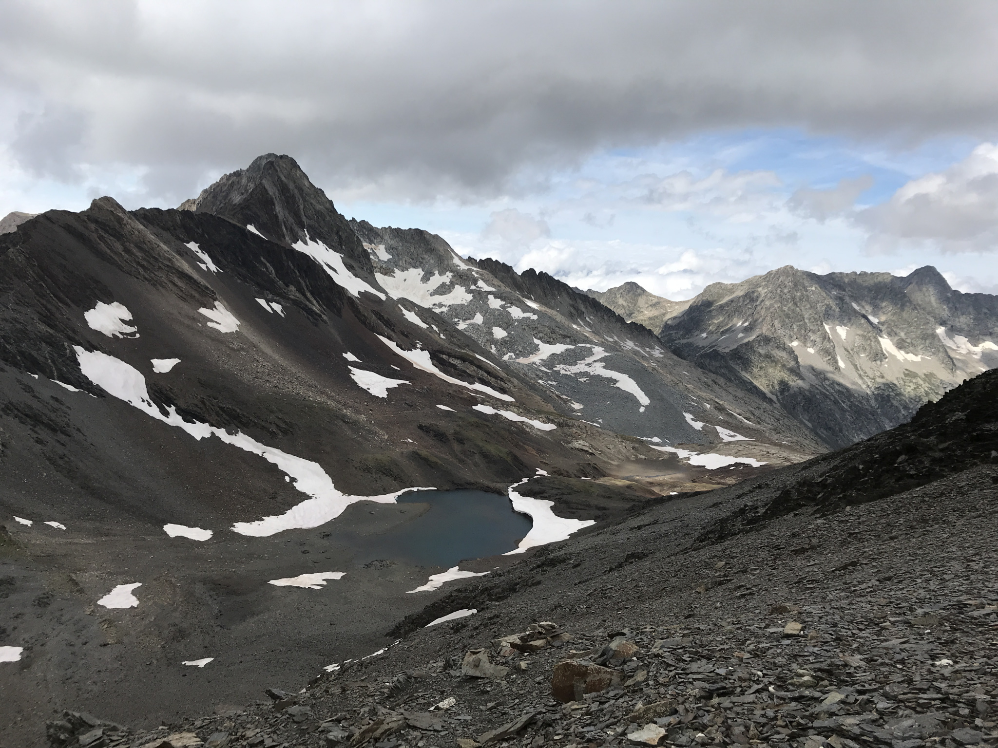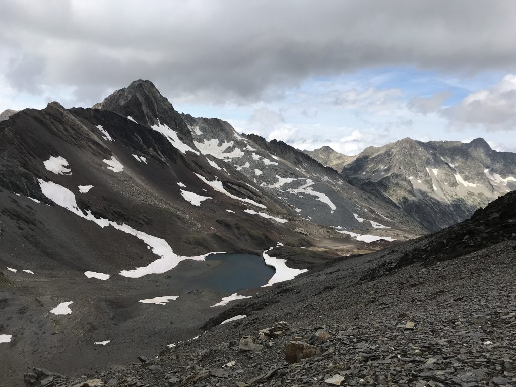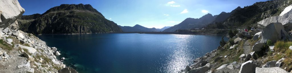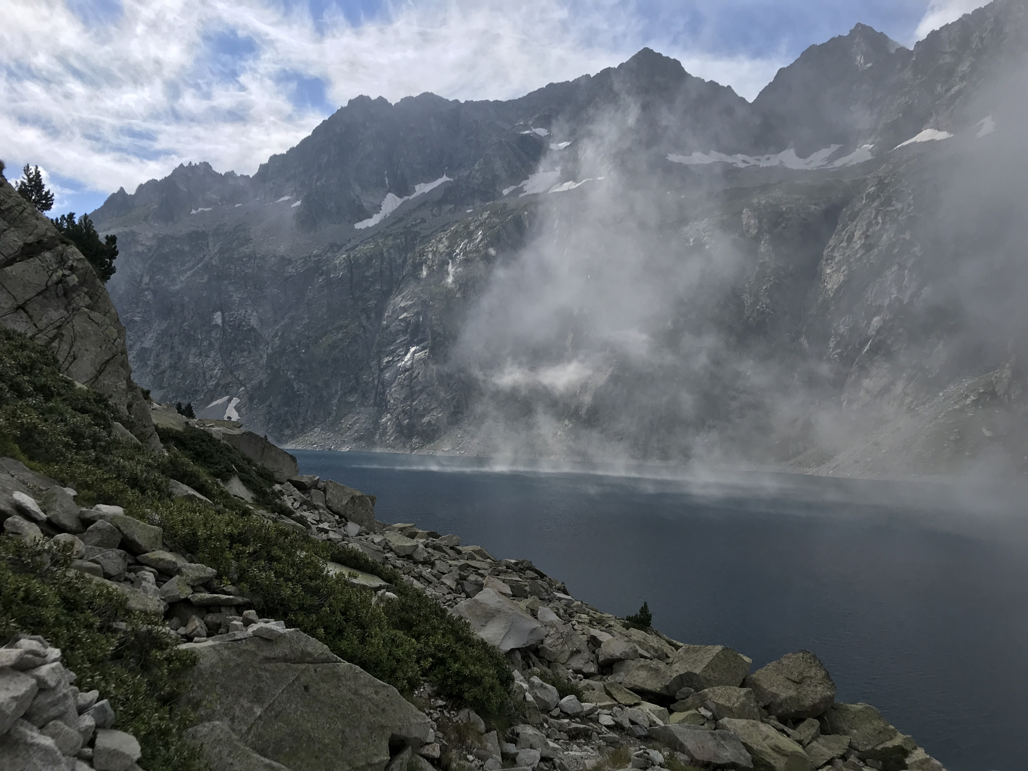 Nach unserer Radel-Tour am Pic Piau gings ein Tal weiter zu einem 2200m hoch gelegenen Stausee. Die Anfahrt war megaspannend, da es ein Fetzen-Gewitter mit Hagel gab und SEHR viele Autos (Wanderer die vor dem Gewitter flüchten) entgegen(!) kamen. Klar war die Strasse super schmal! Schließlich waren wir sehr froh, nach 10 km und 1,5h am Lac „Cap de Long“ angekommen zu sein.