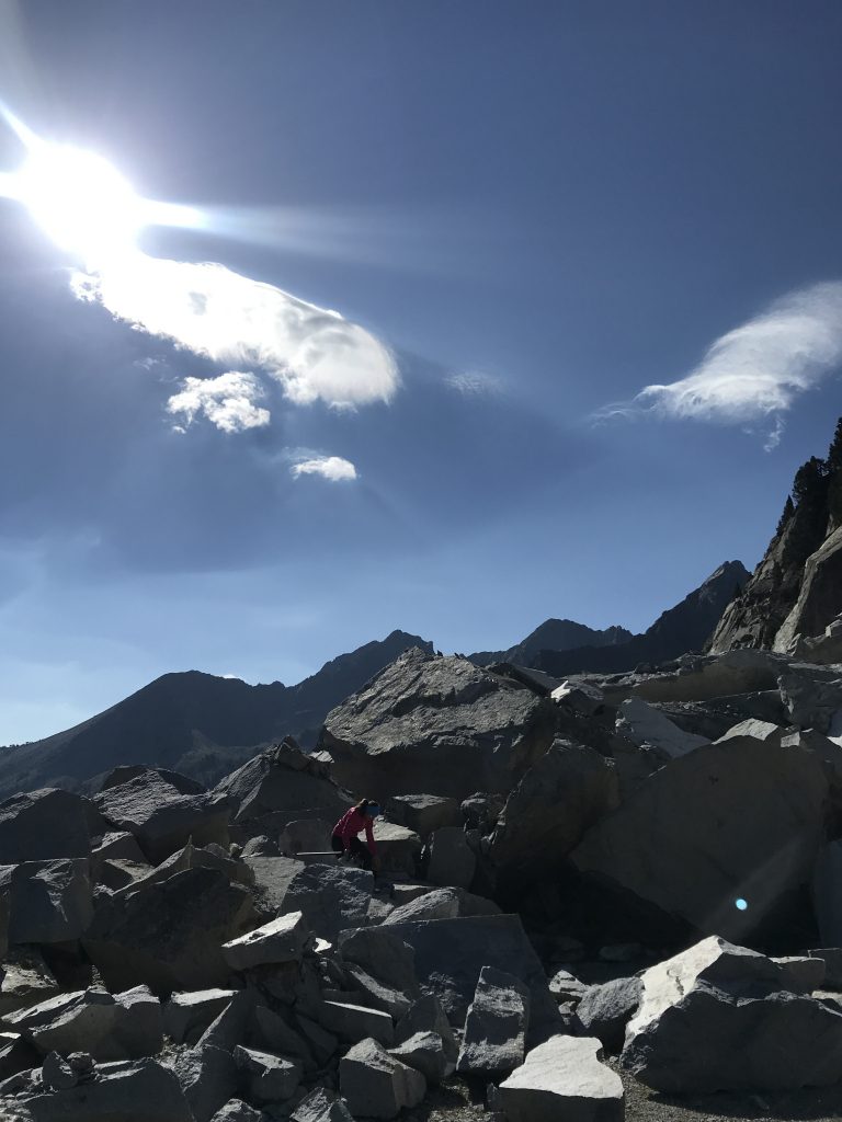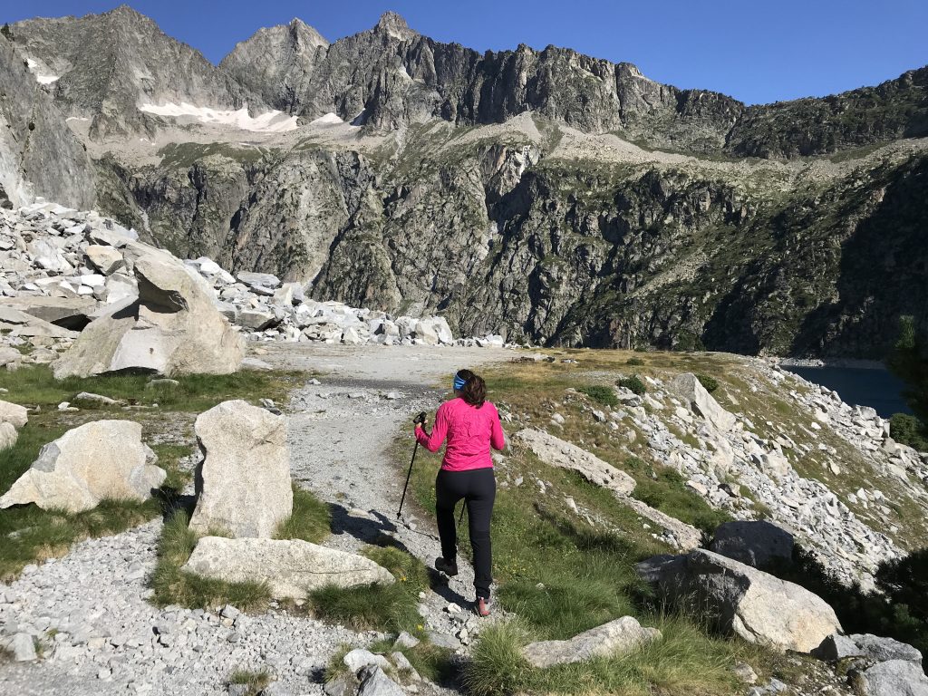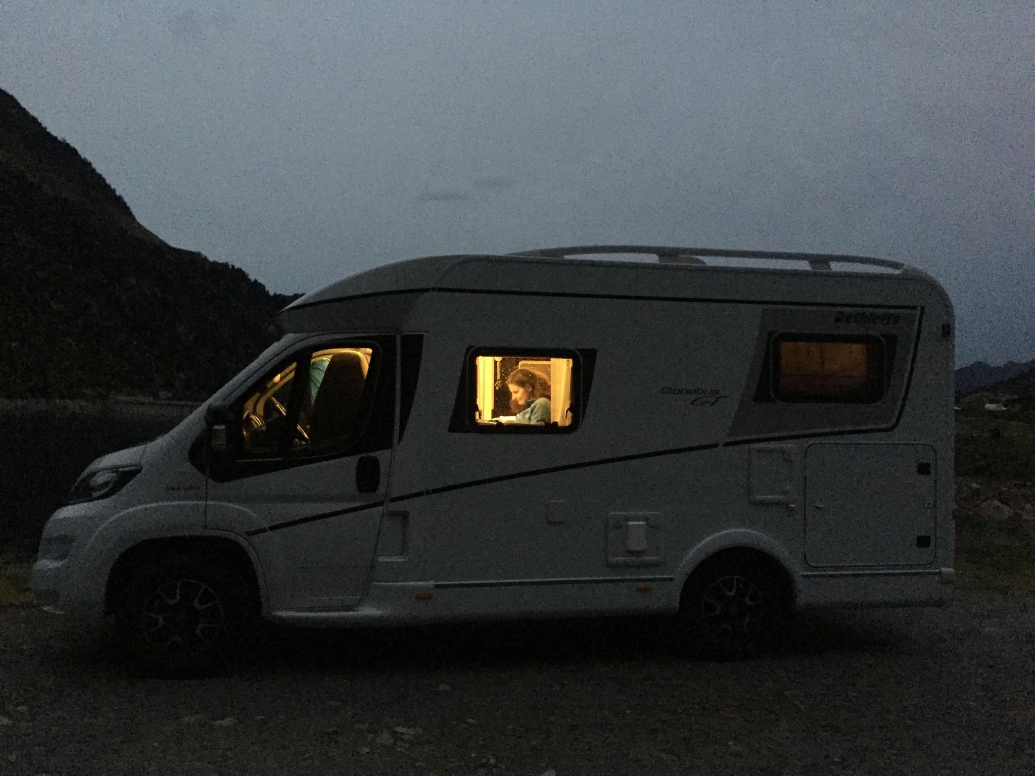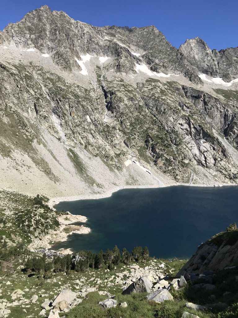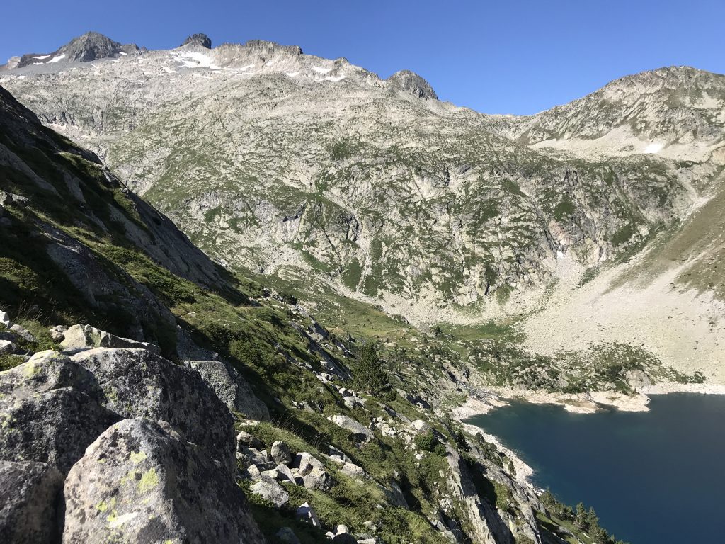Nach unserer Radel-Tour am Pic Piau gings ein Tal weiter zu einem 2200m hoch gelegenen Stausee. Die Anfahrt war megaspannend, da es ein Fetzen-Gewitter mit Hagel gab und SEHR viele Autos (Wanderer die vor dem Gewitter flüchten) entgegen(!) kamen. Klar war die Strasse super schmal! Schließlich waren wir sehr froh, nach 10 km und 1,5h am Lac „Cap de Long“ angekommen zu sein.