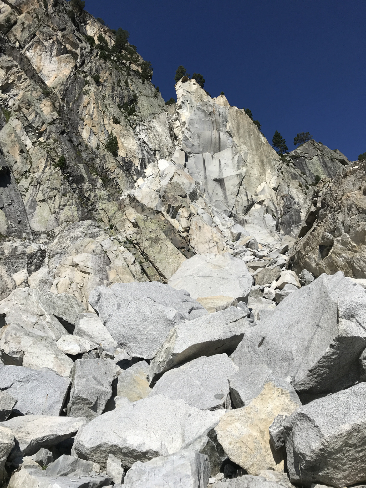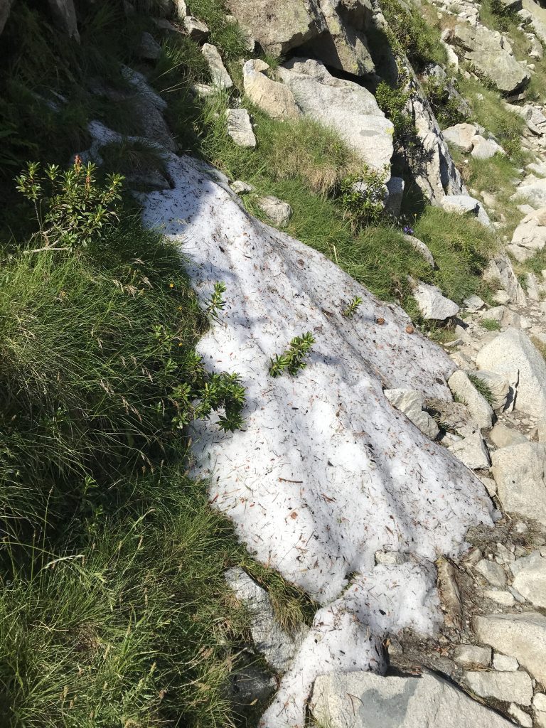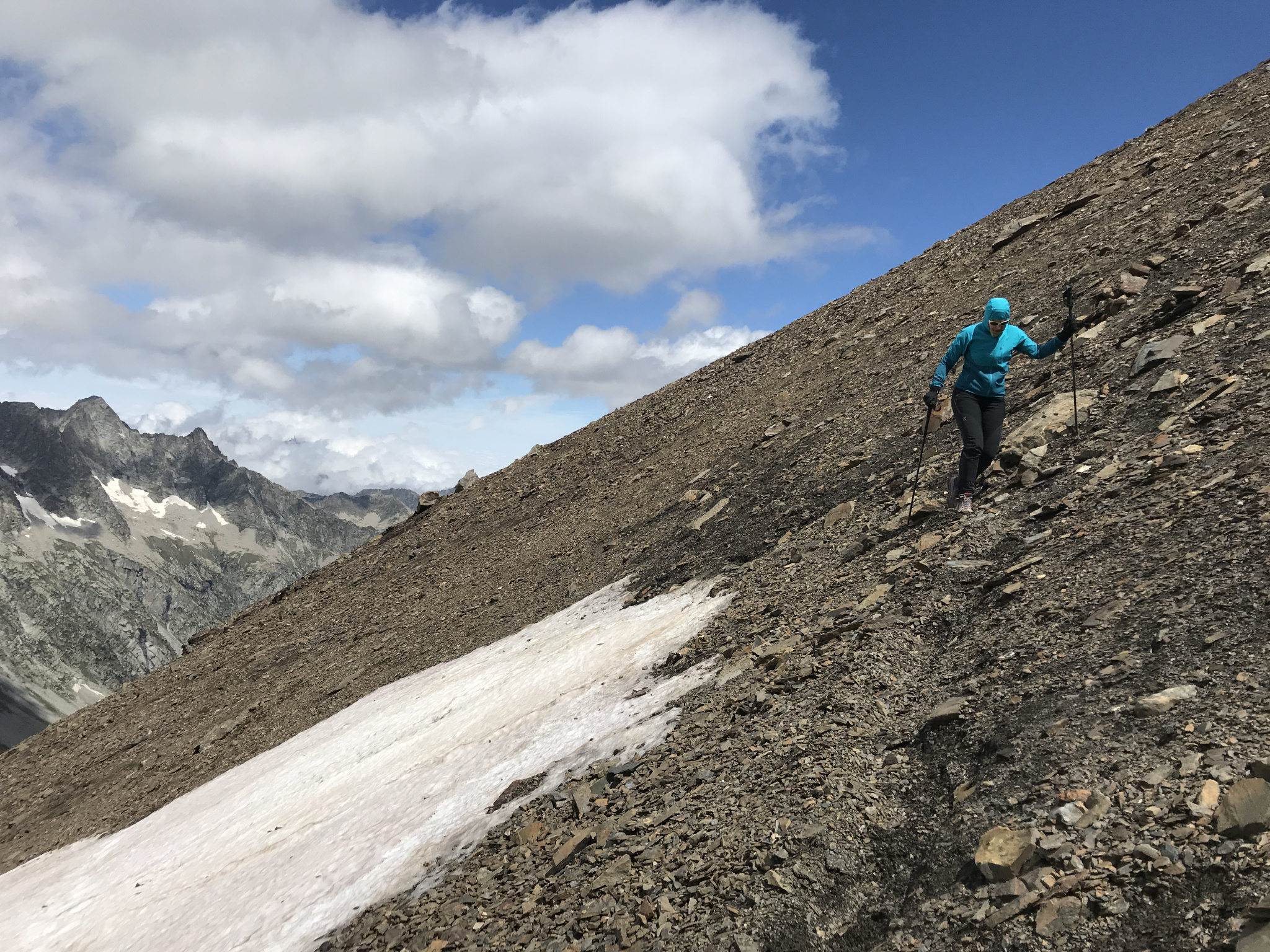 und ein bisserl Altschnee im steilen Schutt und Geröll!