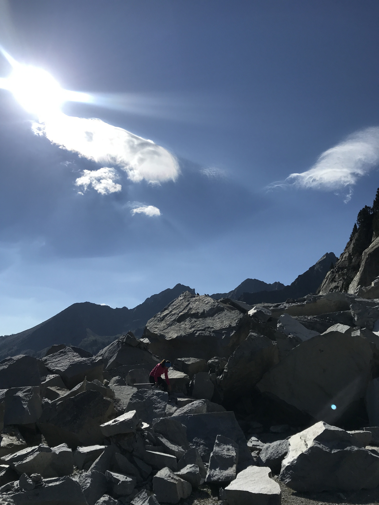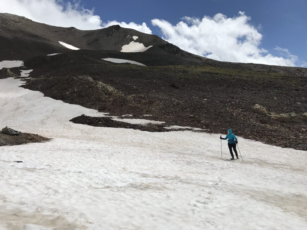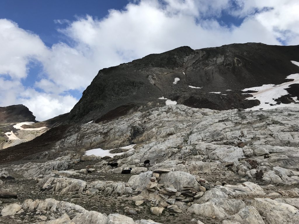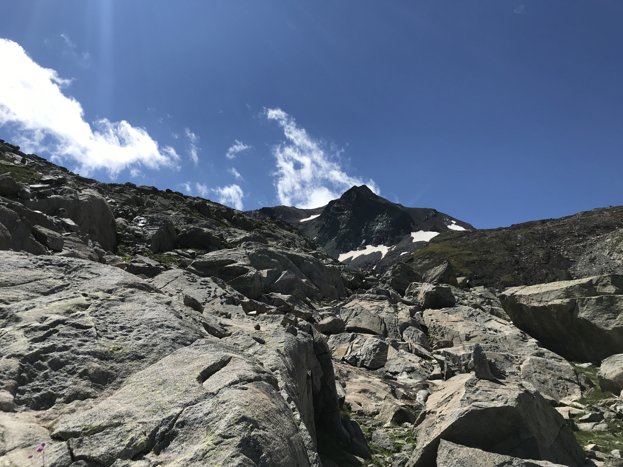 und ein bisserl Altschnee im steilen Schutt und Geröll!