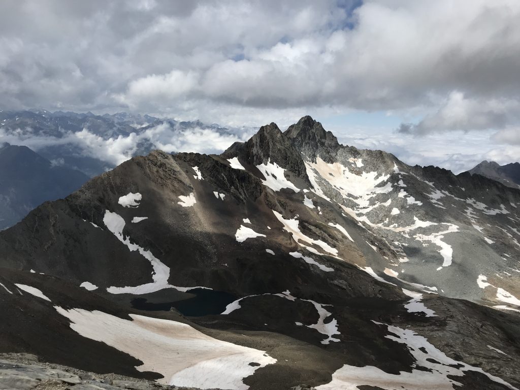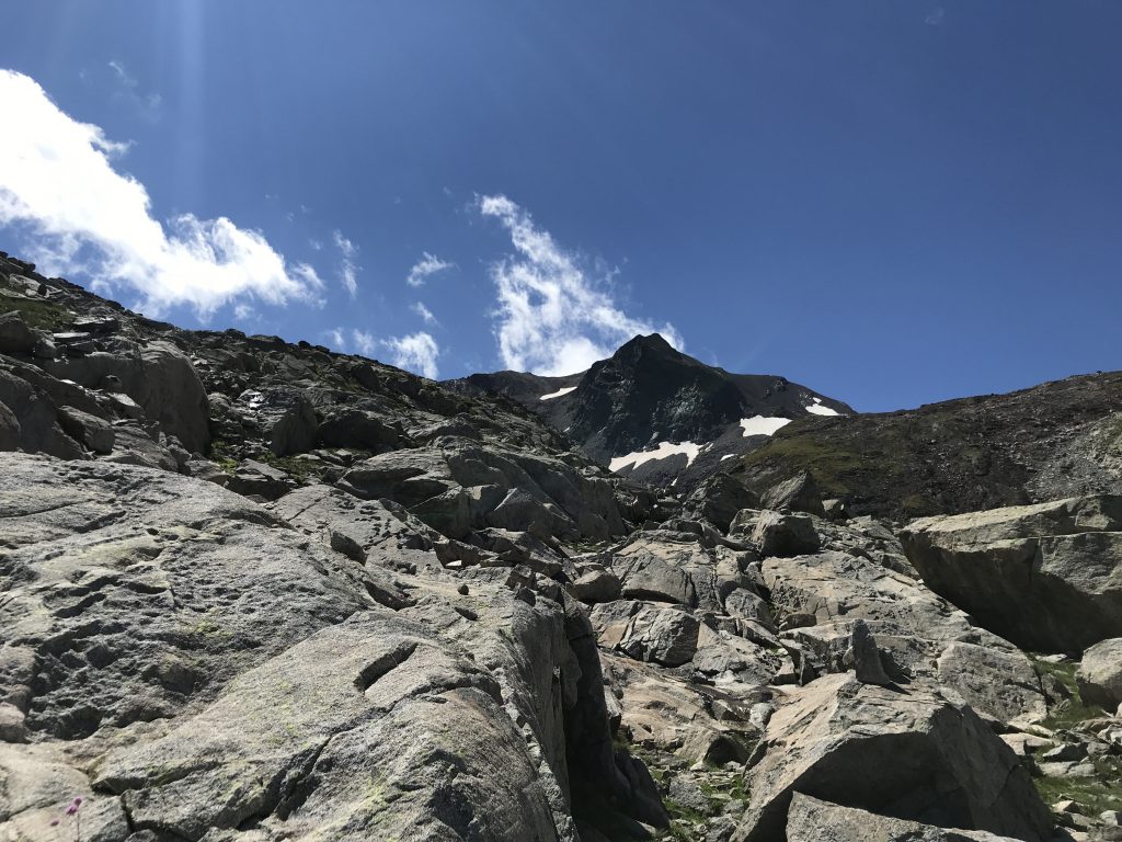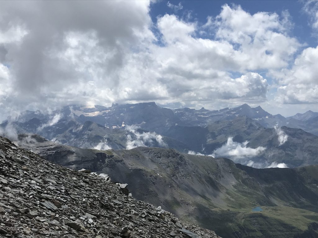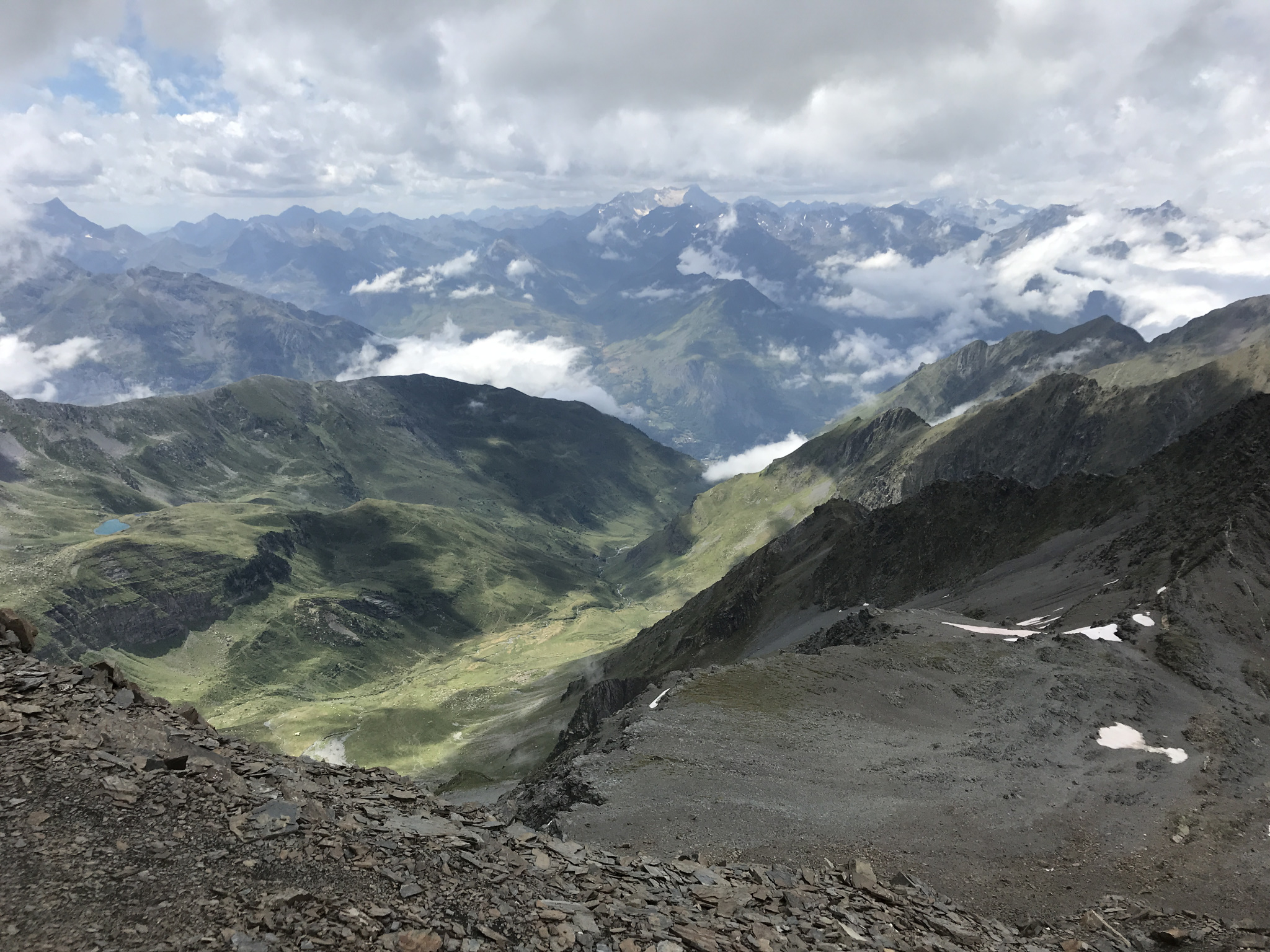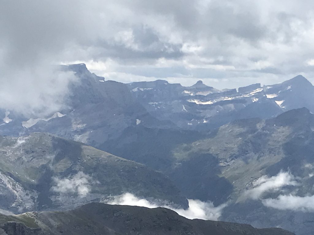 Am nächsten Tag gings recht früh auf den Pic den Campbiel, mit 3173m immerhin der 16 höchste Berg der Pyrenäen ;). Die Tour war sehr anstrengend, da der Weg (bedingt durch den Stauseebau immer wieder hoch und runter) ca. 400hm mehr Anstieg hatte als geplant. So wurden es am Ende 7 Stunden und 1400hm :-). Der Wind am Ende wurde richtig stark (Orkan!!) und wir waren sehr stolz als wir oben waren. Zudem gab es wieder einen schönen Blick auf die berühmte Breche de Roland (siehe Blog Breche de Roland :-)).