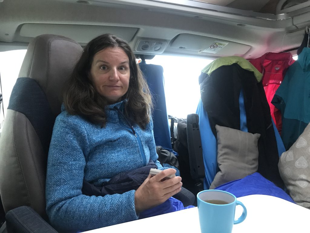 OBEN!!!! Und toll, dort legal und gratis übernachten zu dürfen. Es gab sogar eingerichtete Kletterrouten! Uns war es aber in dieser Höhe zu kalt (und zu nebelig…).