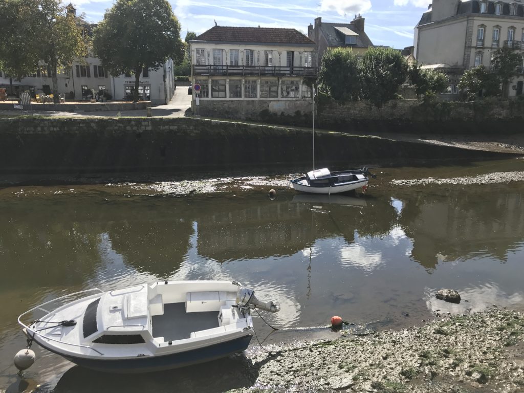 Und am Schluß ein bretonisches Schiff bei Ebbe! Allerdings mit bretonischem Kniff: zwei Stangen, die das Schiff auch bei Ebbe aufrecht halten! 😀