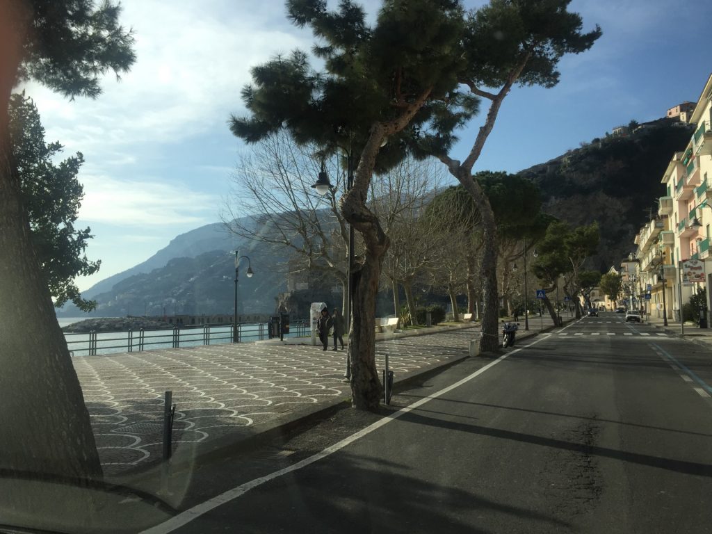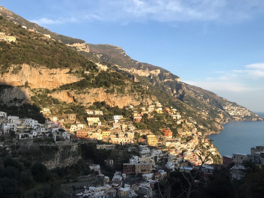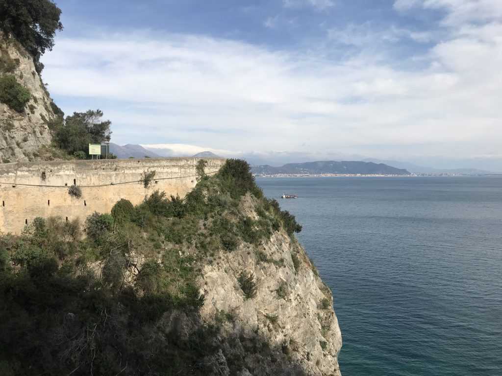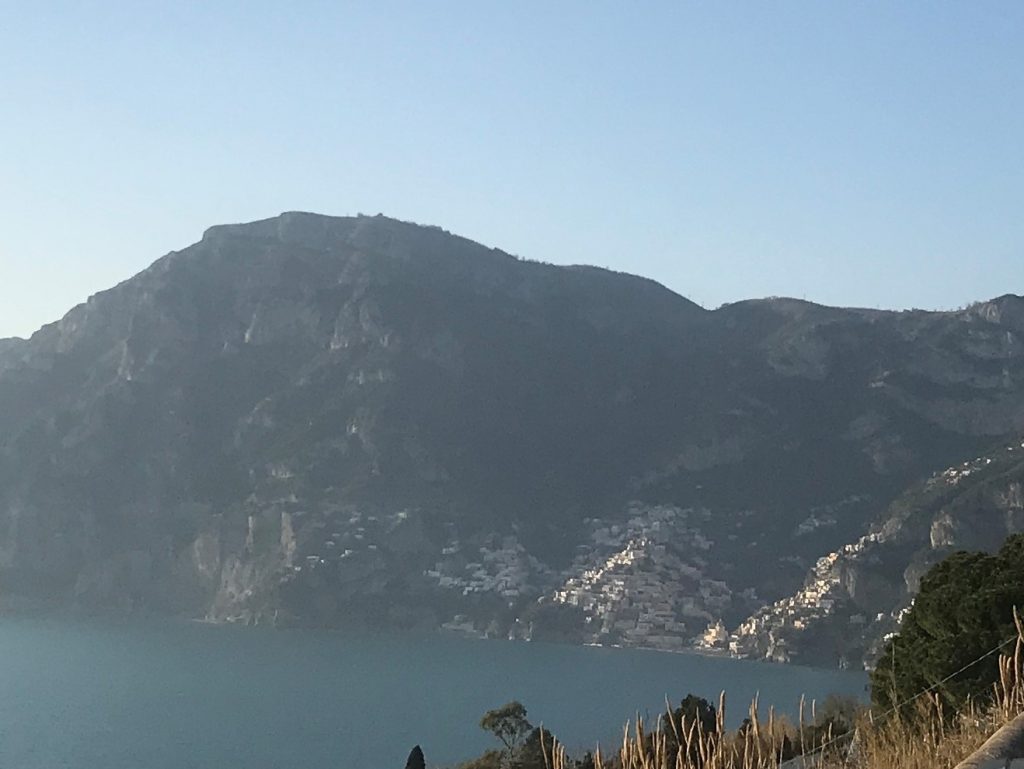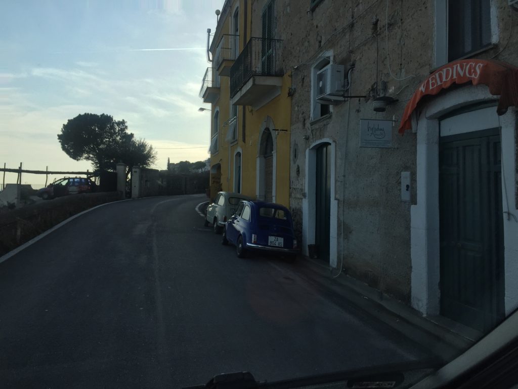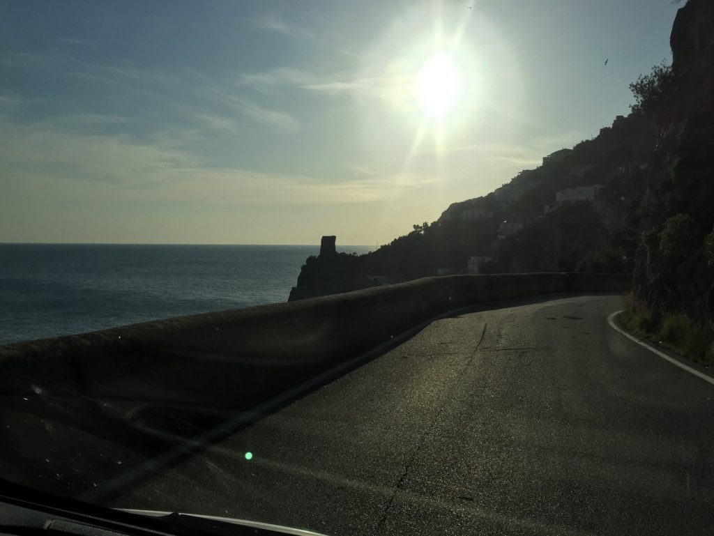 So geht’s über etliche Kilometer und viele abenteuerliche Dörfer (Cetera, Erchie, ..) nach Amalfi (hier gibt’s einen Beruhigungskaffe) und weiter bis nach Positano, dem malerischen Fischerdörfchen. Immer wieder halten wir die Luft an und der Moppel macht sich dünn. UNGLAUBLICH wo wir überall durchpassen! Leider fährt doch ein Bus (der Linienbus SIA ist ein ausgewachsener Bus!!!) und zwar mindestens jede halbe Stunde. Das wird immer wieder spannend. Wir sind sehr froh, die Amalfietta hinter Positano zu beenden und tuckern noch gemütlich zu einem schönen Stellplatz mit Blick auf Capri. Hier versinkt die rote Sonne dann sooo schön im Meer :-).