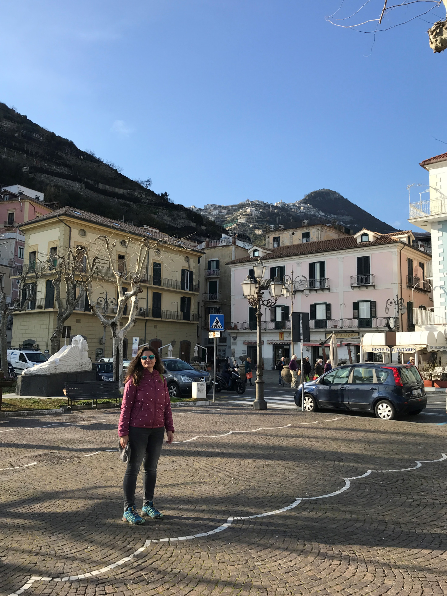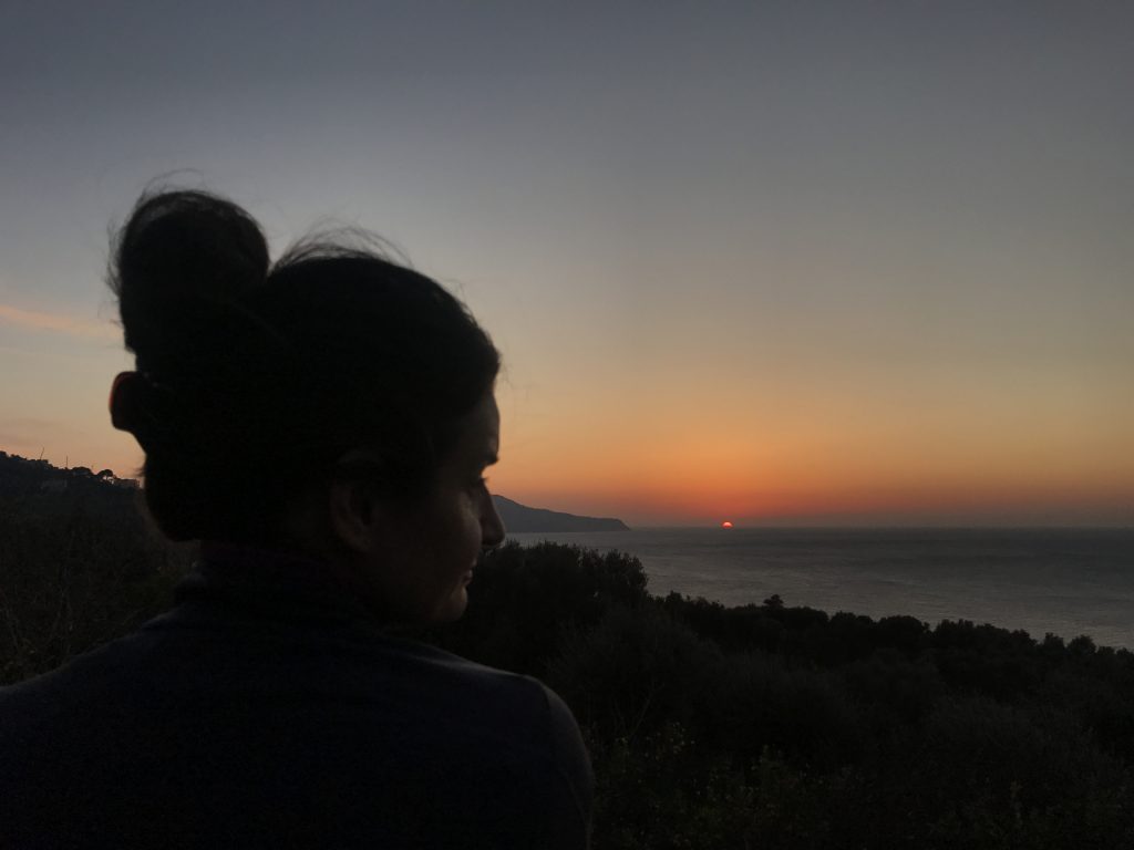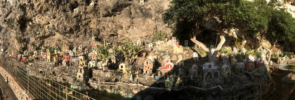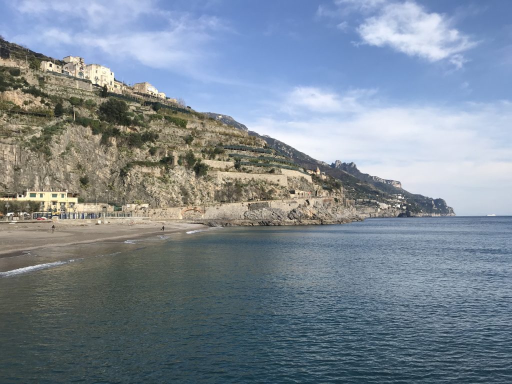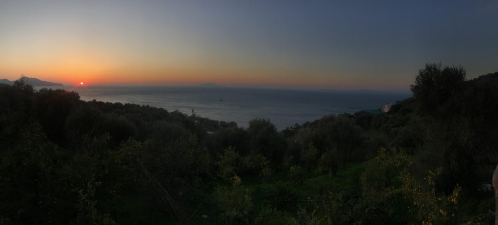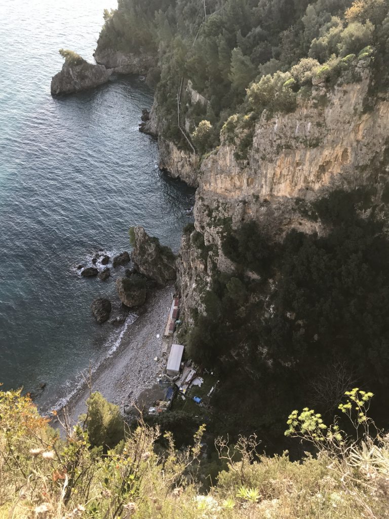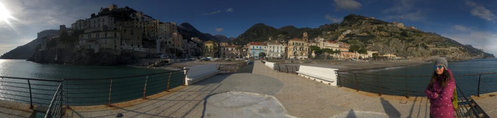 So geht’s über etliche Kilometer und viele abenteuerliche Dörfer (Cetera, Erchie, ..) nach Amalfi (hier gibt’s einen Beruhigungskaffe) und weiter bis nach Positano, dem malerischen Fischerdörfchen. Immer wieder halten wir die Luft an und der Moppel macht sich dünn. UNGLAUBLICH wo wir überall durchpassen! Leider fährt doch ein Bus (der Linienbus SIA ist ein ausgewachsener Bus!!!) und zwar mindestens jede halbe Stunde. Das wird immer wieder spannend. Wir sind sehr froh, die Amalfietta hinter Positano zu beenden und tuckern noch gemütlich zu einem schönen Stellplatz mit Blick auf Capri. Hier versinkt die rote Sonne dann sooo schön im Meer :-).
