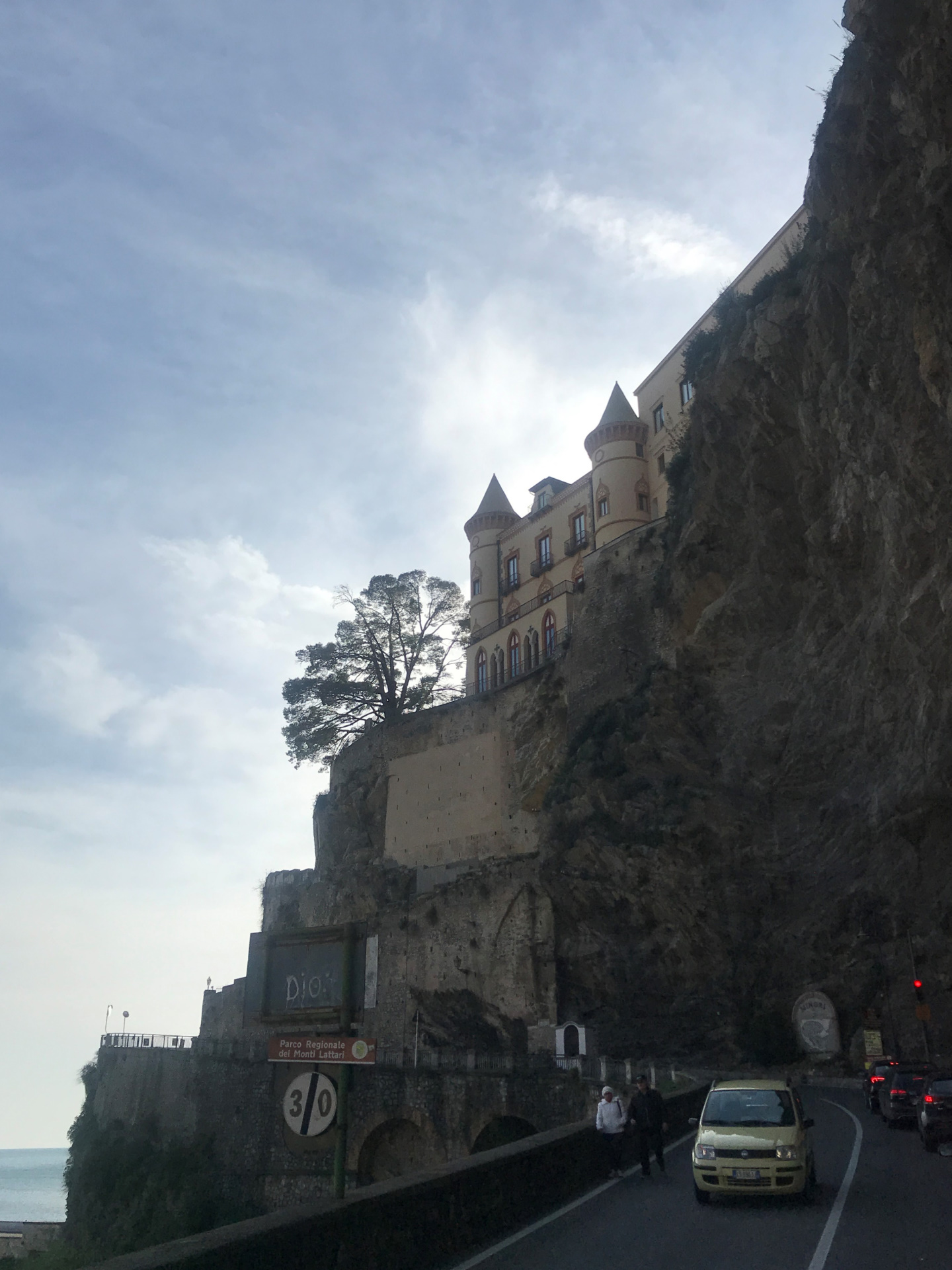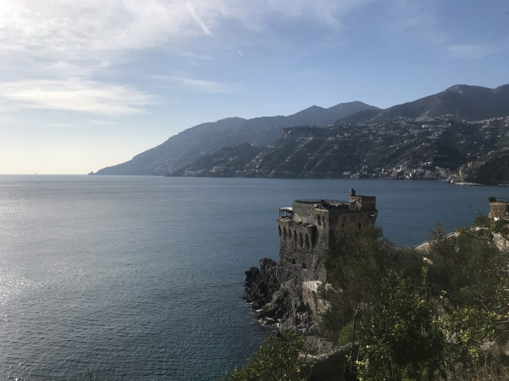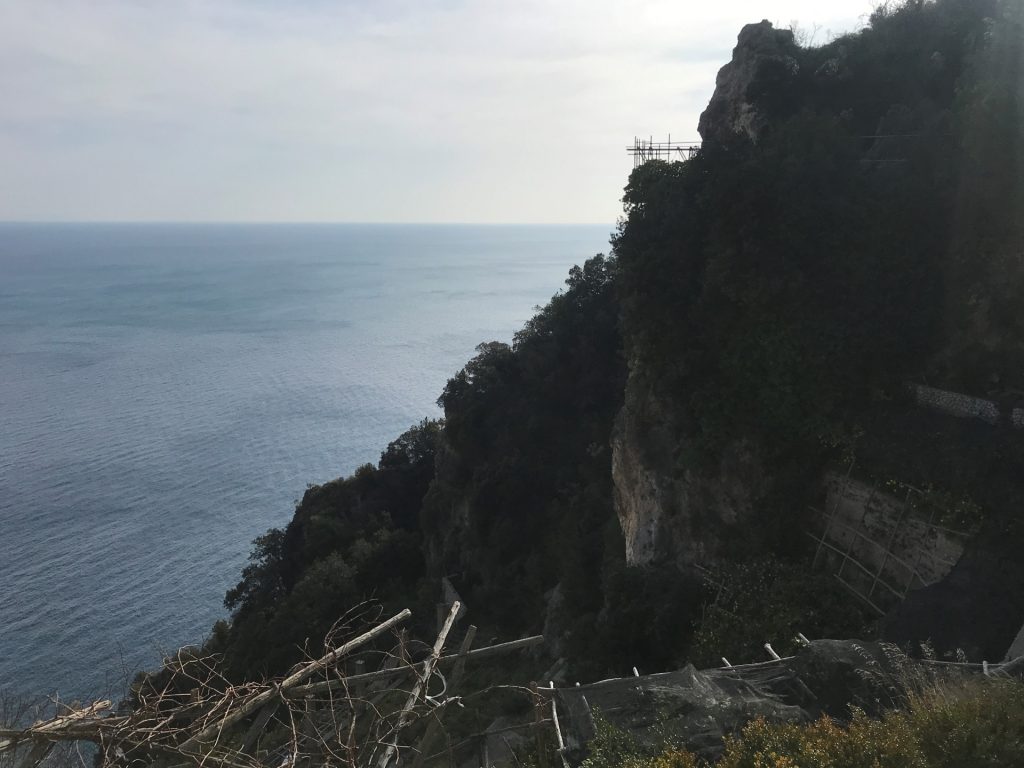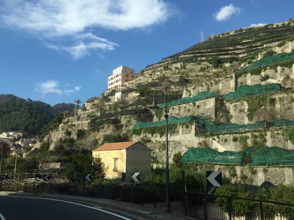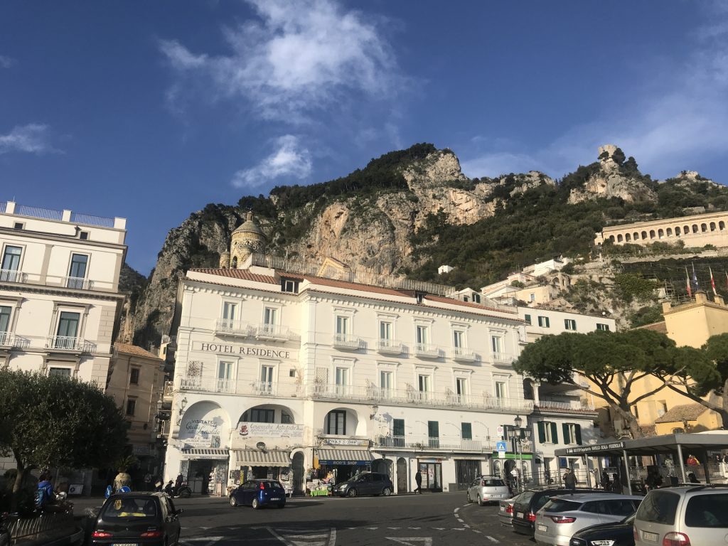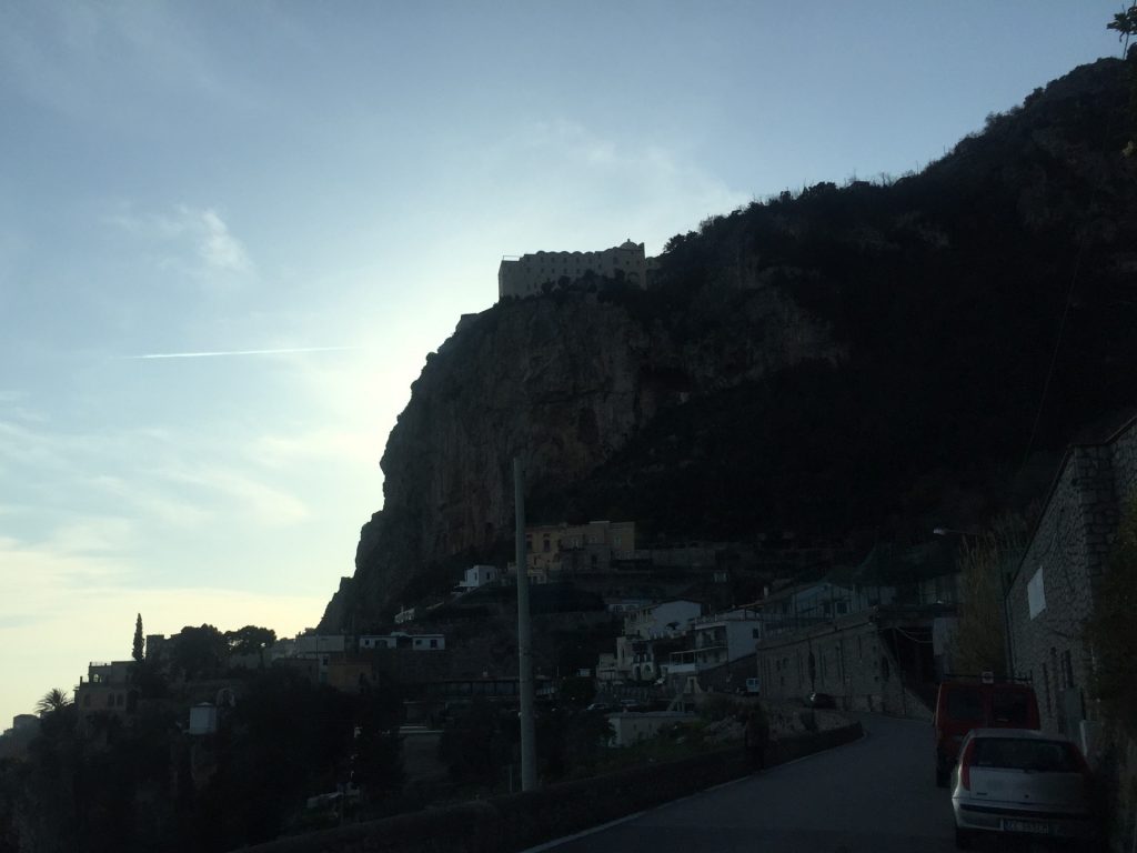 Nicht so auf der Amalfietta! Ich kenne nach 44tkm den Moppel doch recht gut, aber Sandra sitzt auf der RECHTEN Seite, also die Seite, die die Felsen hat. Nach 2 km rutscht Sandra unruhig auf dem Sitz. Ok ist eng und VIEL Verkehr. Zum Glück keine LKW oder Wohnmobile, da die Straße für LKW und Wohnmobile nur zwischen 24:00 und 6:30 geöffnet ist (wir sind ja kein Wohnmobil, sondern nur ein sportlicher Weekender :-)). Trotzdem ENG! Und die Rechtskurven sind wirklich scheußlich, wenn man Glück hat, gibt’s einen Spiegel, wenn nicht, nur ein Stoßgebet. Nach weiteren 5 km „Du Schatz, ich bin froh, dass der rechte Außenspiegel noch dran ist“. Mir kommt die geniale Idee, dass Sandra doch filmen könnte und das gelungene Ergebnis sieht man am Ende des Blogs :-).