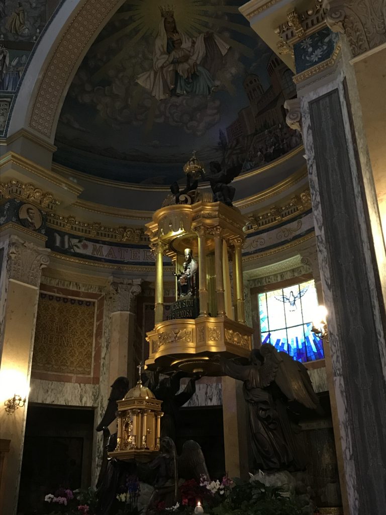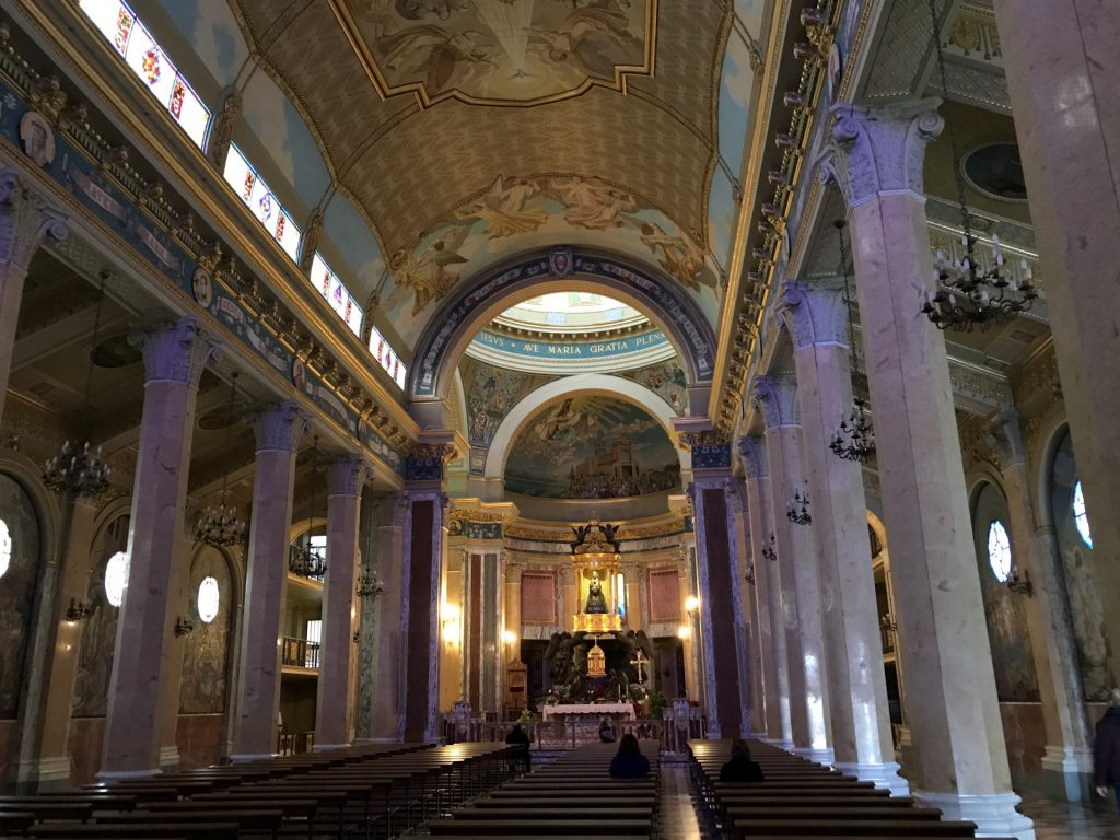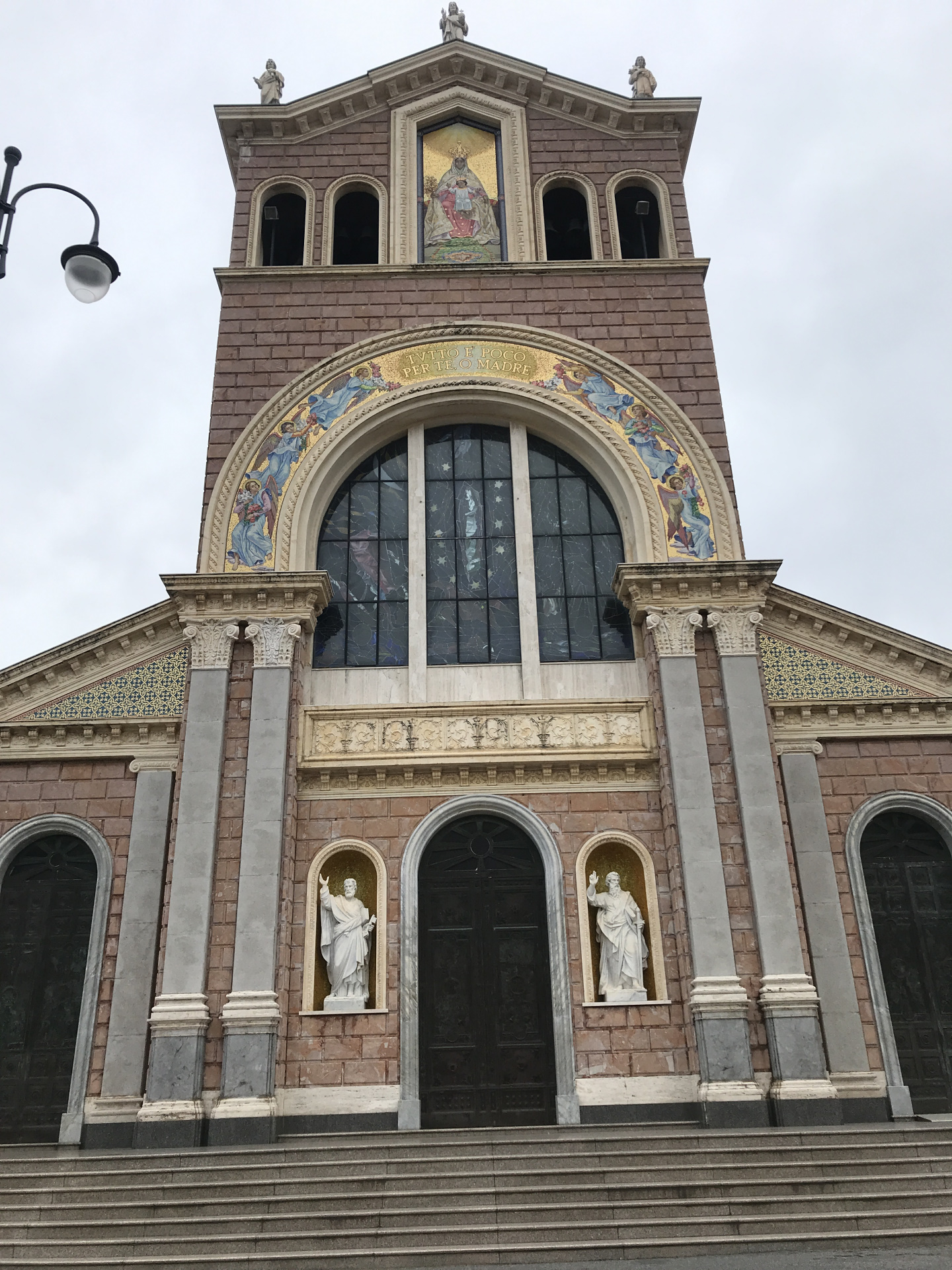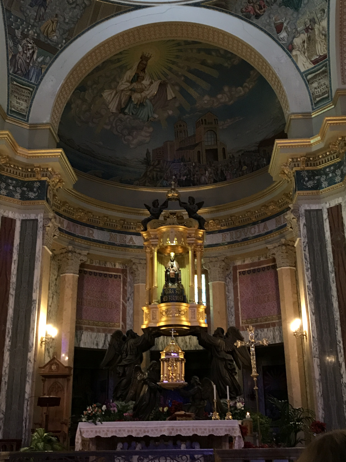 Im Gegensatz dazu steht die in den 1950er Jahren erbaute römisch-katholischen Wallfahrtskirche, in der die Schwarze Madonna von Tindari verehrt wird. Die Kirche steht sehr gut da und ist auch (da Wallfahrtsort) gut besucht und gepflegt. Das Besondere ist die Schwarze Madonna, die nach der Überlieferung im 8./9. Jahrhundert aus Konstantinopel kam und in einer Kiste angeschwemmt wurde. Sie trägt die Inschrift NIGRA SUM SED FORMOSA (deutsch: „Ich bin schwarz, aber schön“). Das für uns beeindruckendste war ein RIESIGES Kripperl am Eingang der Kirche, das mit einer komplizierten Mechanik und Elektrik aufgepeppt war und eine märchenhafte Geburt Jesu nachstellen soll (Video ist unten).