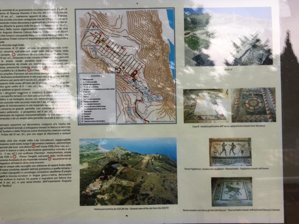Die griechische Stadt wurde erst relativ spät als Satellit der Metropole Syrakus gegründet und lief im Punischen Krieg bald zu den Römern über. Ein Erdbeben im 1. Jahrhundert zerstörte viele Gebäude und die Reste der Stadt wurden auch danach mehrfach immer wieder zerstört (Araber, Piraten). Recht gut erhalten ist noch das griechische Theater und der Thermalbereich. Man sieht auch schön die quadratischen Straßen der Wohngebäude und bekommt einen guten Überblick über die Größe der Stadt. Leider zeigt sich hier der italienische Geldmangel und die Lustlosigkeit der Verantwortlichen/Angestellten sehr krass. Die Stadt wurde vor etlichen Jahren (mit EU Geldern gefördert) ausgegraben und so wurden z.B. im Thermalbereich auch schöne Mosaiken freigelegt. Danach fehlt es aber, wie so oft am Geld und guten Willen, da die Anlage sehr verrottet ist. Simple Wellblechdächer sind kaputt (ein Dach kostet mit Sicherheit nur ein paar Euro), die Wege sind zugewuchert und die meisten sind Schilder unleserlich. Es gibt keine Broschüre oder einen Übersichtsplan, das einzige, was funktioniert, ist ein Ticketverkäufer, der 6€ pro Person kassiert. Es wurde auch ein kleines Museum eingerichtet, in dem einige Stücke ausgestellt sind. Leider ist das Licht in fast allen Räumen kaputt und man braucht viel Phantasie, um die Stücke zu erkennen, da erklärende Schilder über den Ausstellungsgegenstand entweder komplett fehlen, oder nur rudimentär in Italienisch sind. Eigentlich einen sehr schöne antike Stätte, die mit Blick auf die Liparischen Inseln sehr schön gelegen ist.