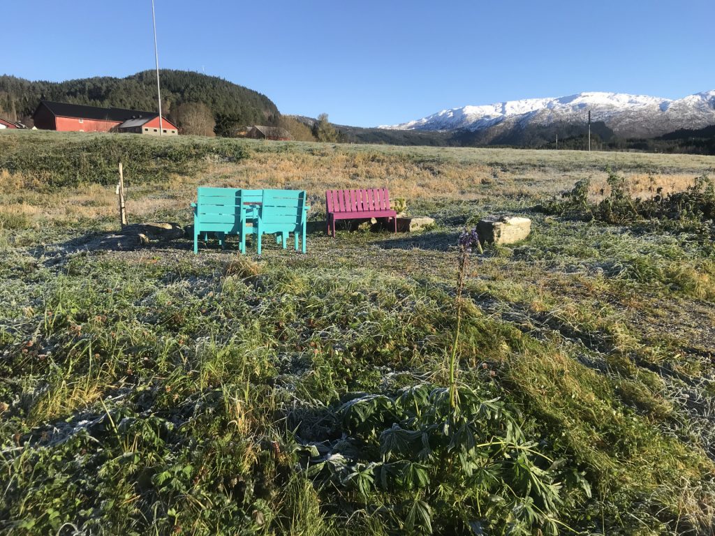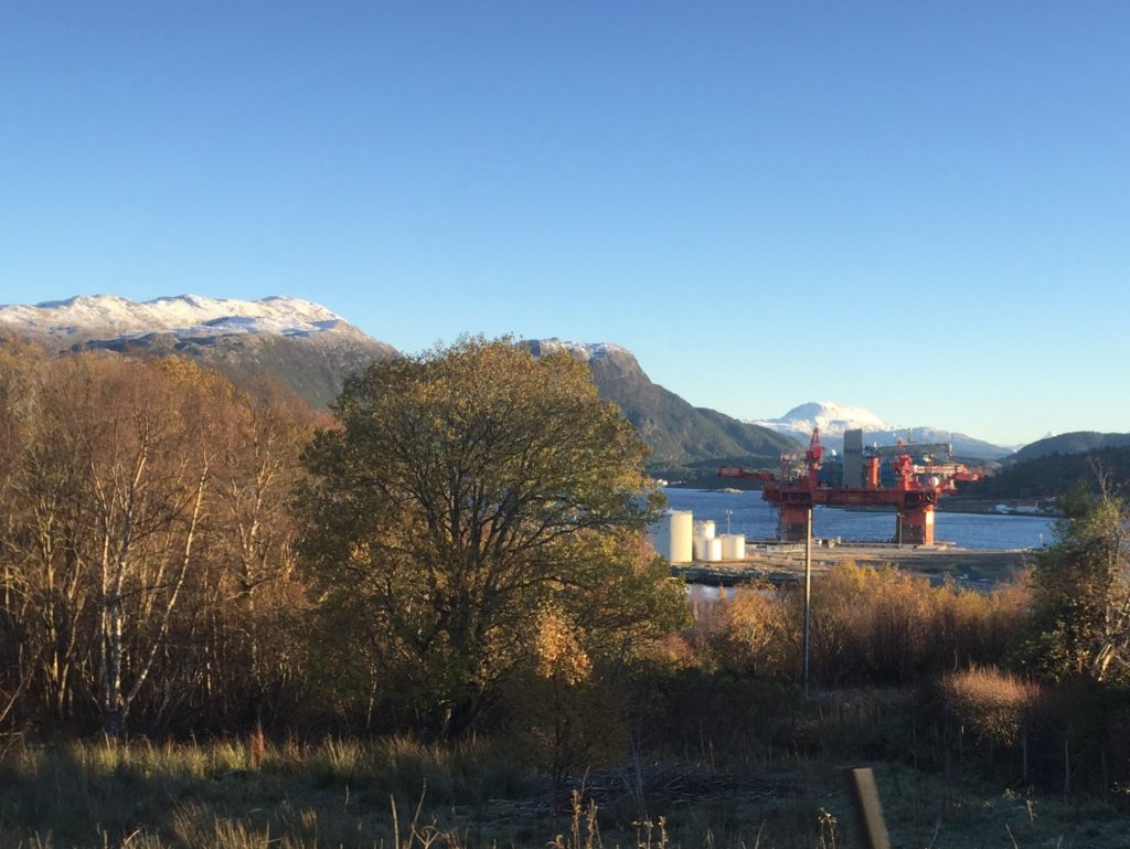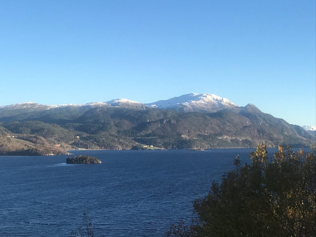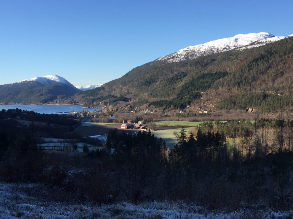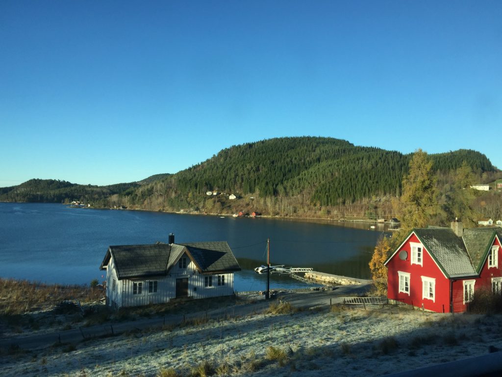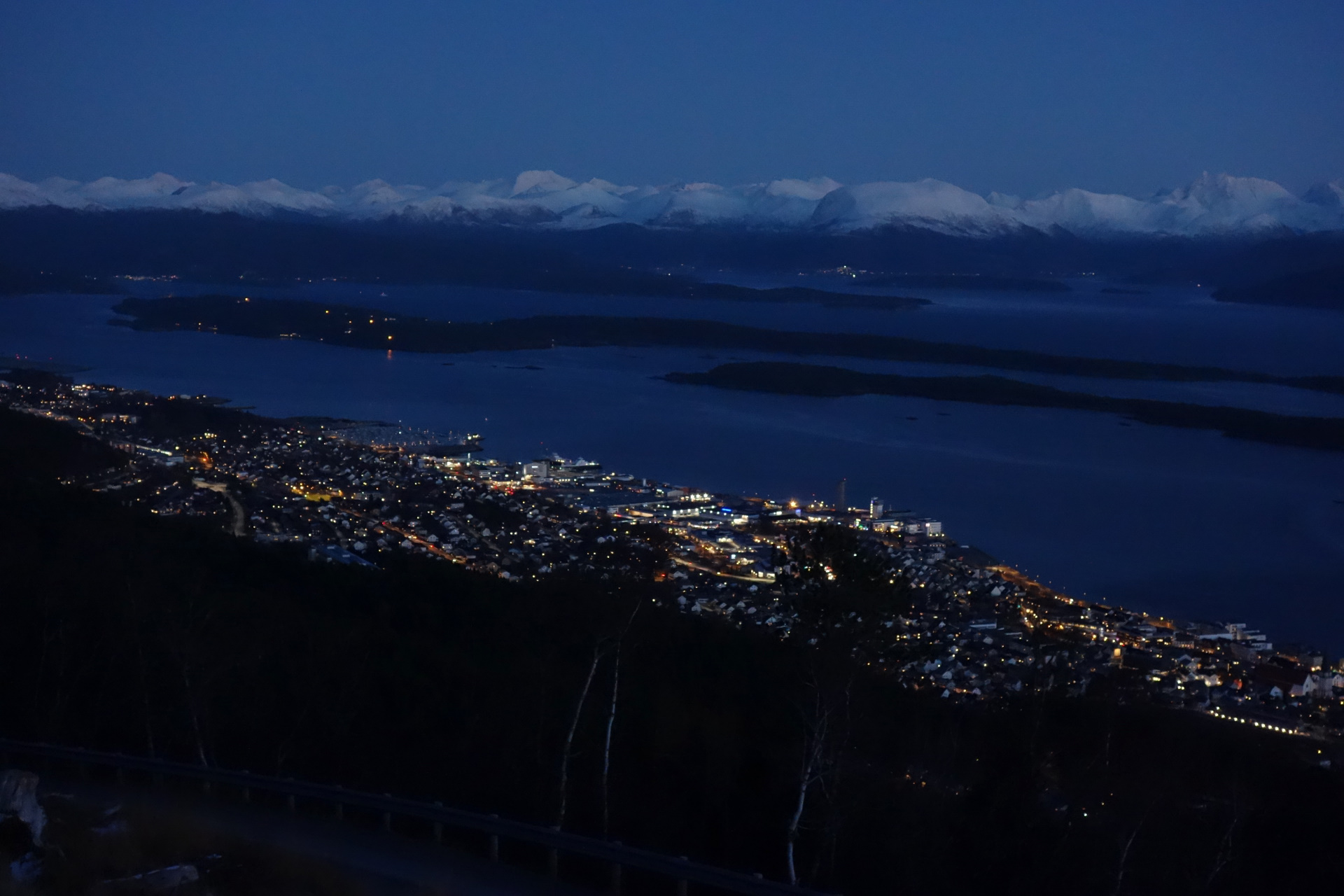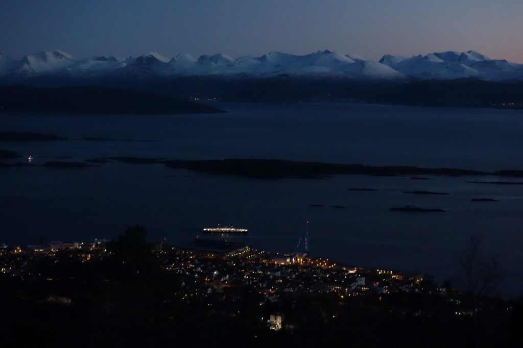 Übernachtet haben wir wieder auf einem zufällig aus unserer App Park4Night ausgewählten Platz auf der Strecke 400 Meter oberhalb der Hafenstadt Molde. Und dieser war der unbeschreiblichste Platz auf unserer Reise bisher: was für eine AUSSICHT! Wie im Märchen. Alex‘ Drohnenvideo sollten wir zu National Geographic einschicken… Unsere fahrbare Almhütte hat wieder alles an Aussicht gegeben und über Nacht auch noch standesmäßig Eiszapfen wachsen lassen (zum Glück nur außen; innen war es superflauschig warm).