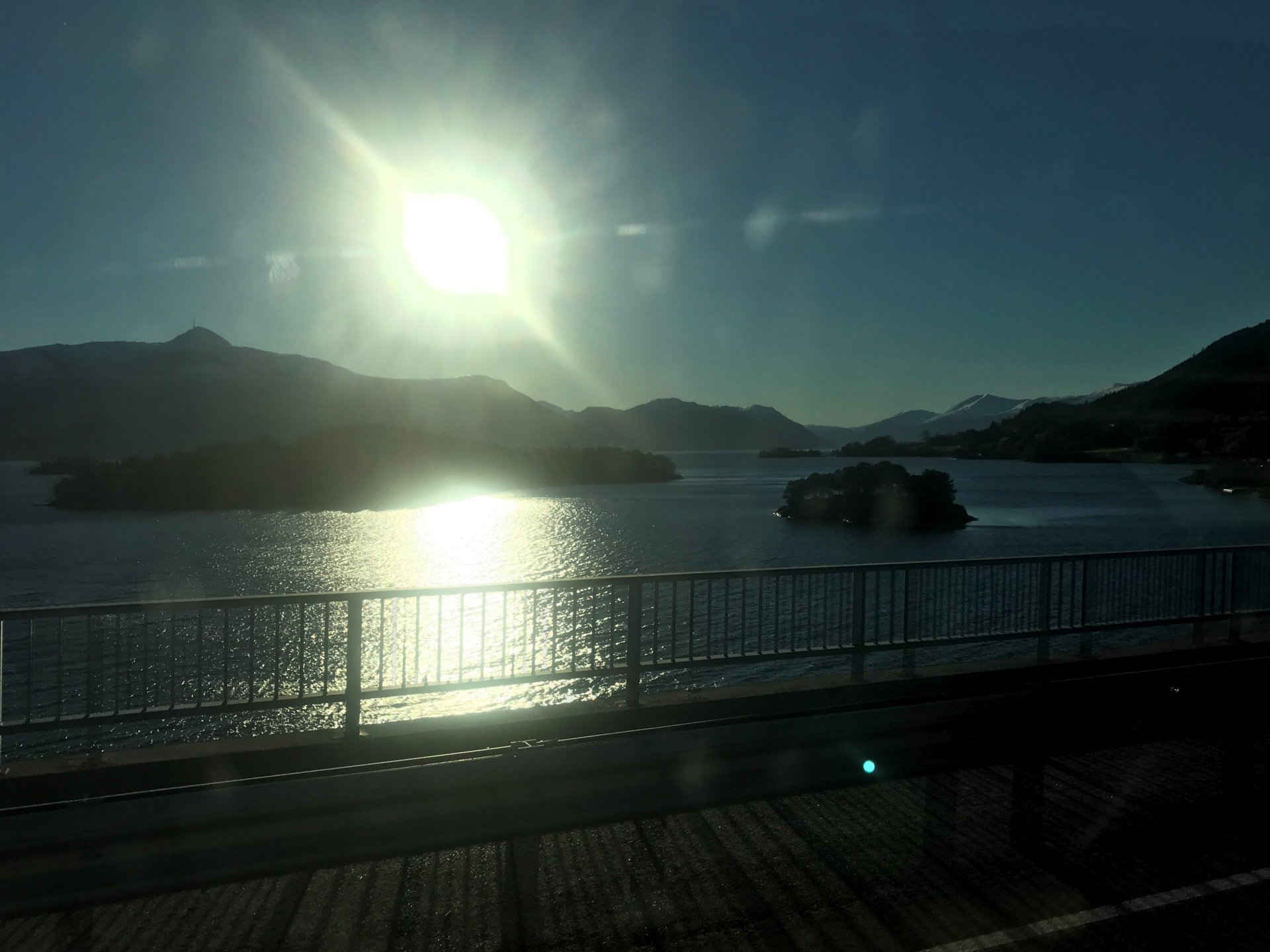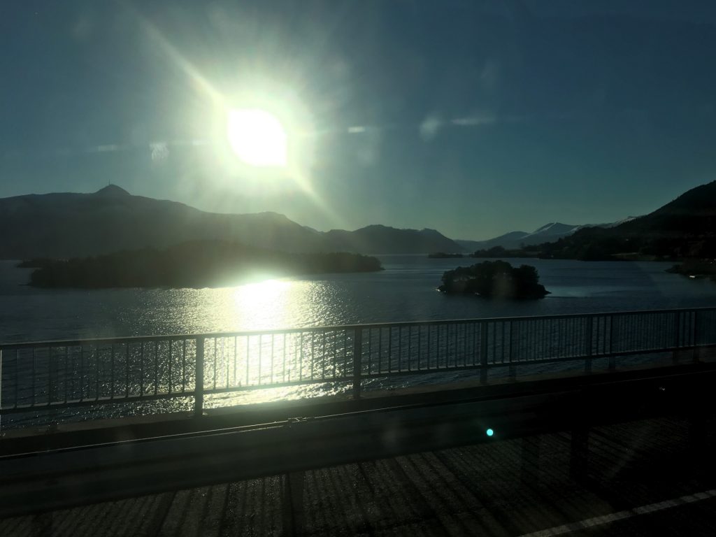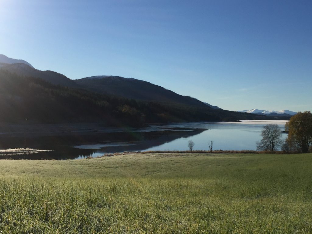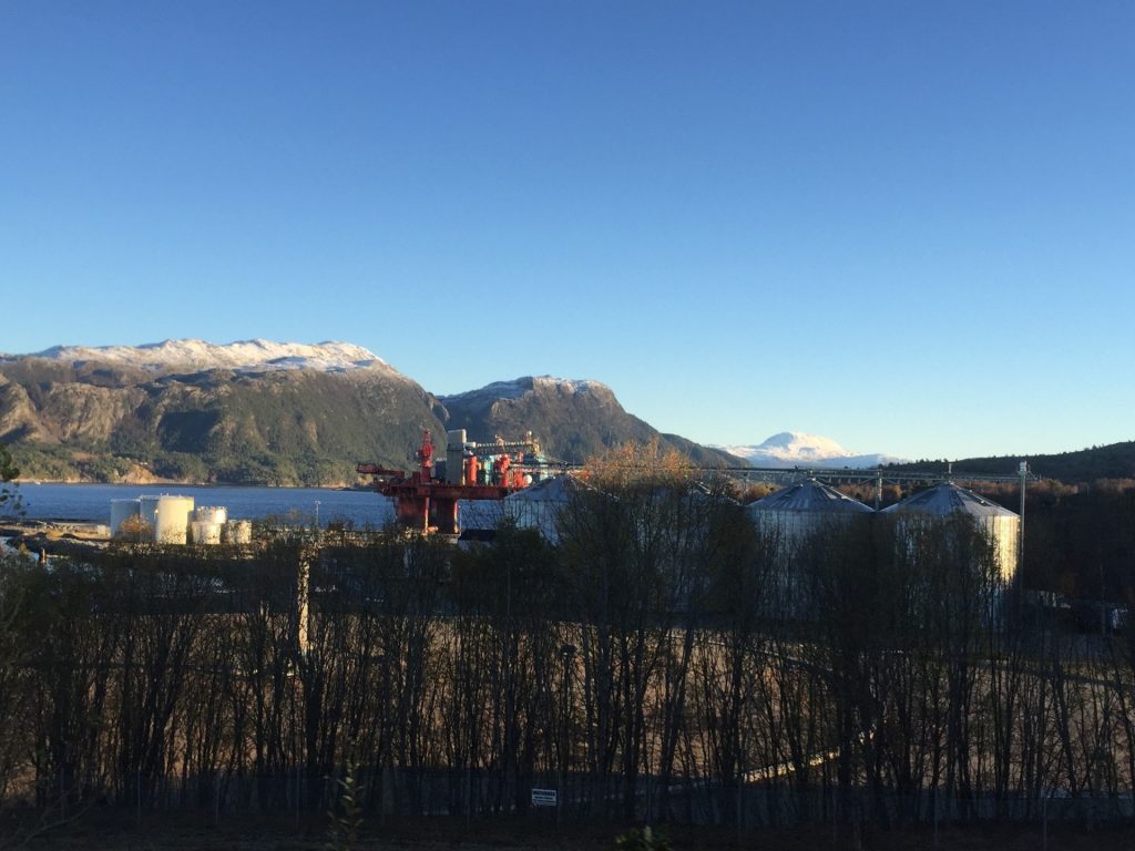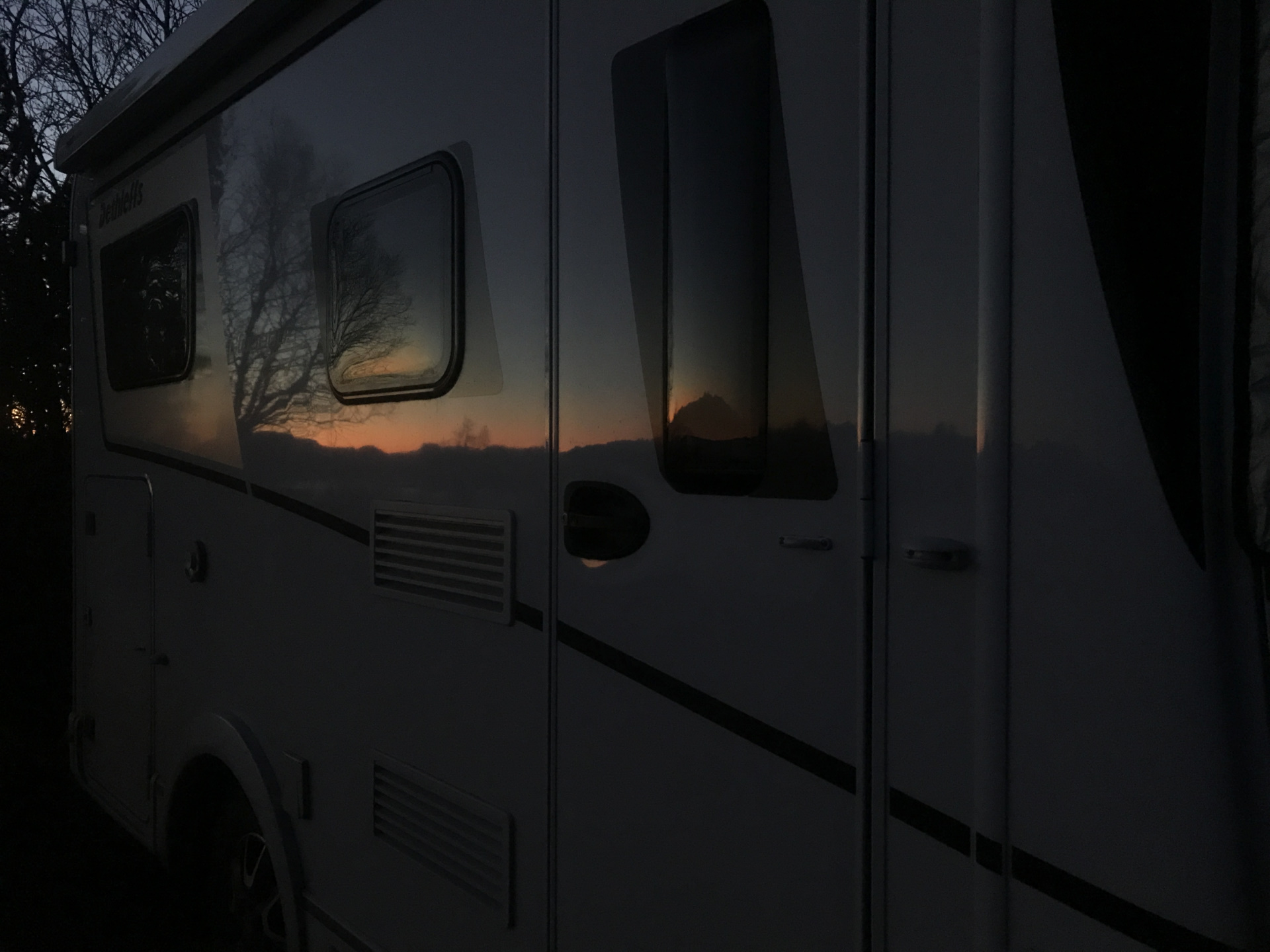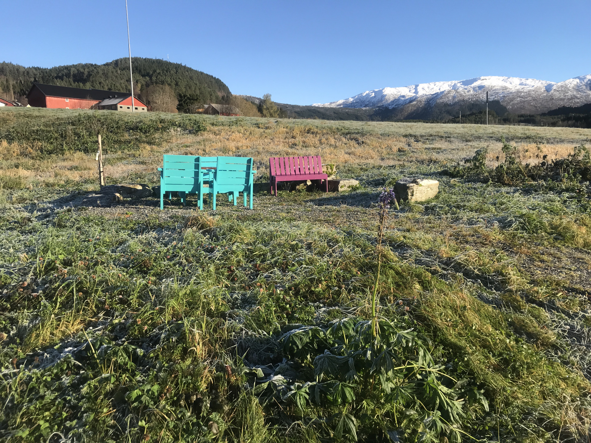Übernachtet haben wir wieder auf einem zufällig aus unserer App Park4Night ausgewählten Platz auf der Strecke 400 Meter oberhalb der Hafenstadt Molde. Und dieser war der unbeschreiblichste Platz auf unserer Reise bisher: was für eine AUSSICHT! Wie im Märchen. Alex‘ Drohnenvideo sollten wir zu National Geographic einschicken… Unsere fahrbare Almhütte hat wieder alles an Aussicht gegeben und über Nacht auch noch standesmäßig Eiszapfen wachsen lassen (zum Glück nur außen; innen war es superflauschig warm).