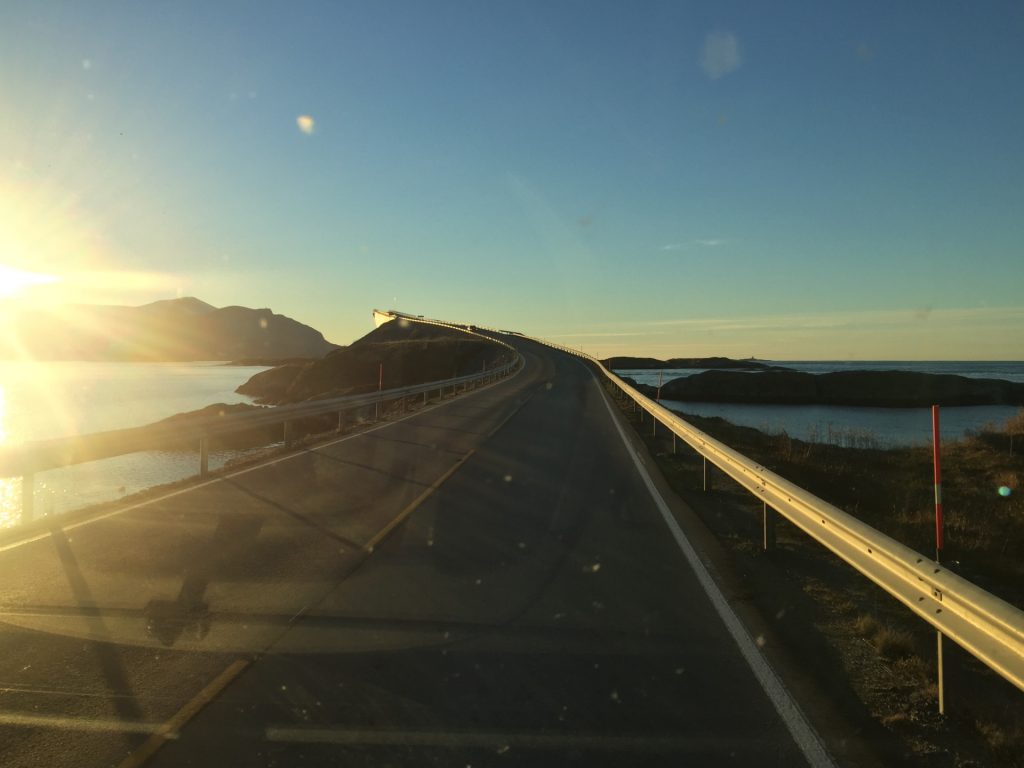 Und danach geht’s los: Die Atlantikstrasße! Die eigentliche Atlantikstraße ist nur 8 km lang, aber jeder Meter hat es in sich! Also der Titel schönste Straße der Welt ist wirklich nicht übertrieben! Die Storseisundbrücke ist kühn geschwungen, 26 Meter hoch und 260 Meter lang. Wenn man sie einmal gesehen hat erinnert man sich unweigerlich immer wieder an Werbespots für Autos aller Art. Dazu noch das um diese Jahreszeit perfekte Licht! Wir waren wirklich atemlos und sind die Brücke dreimal gefahren :-)! Dazu habe ich am Ende noch ein ultimatives GoPro Roadmovie erstellt :-).