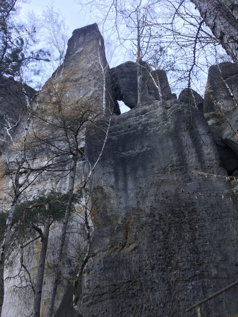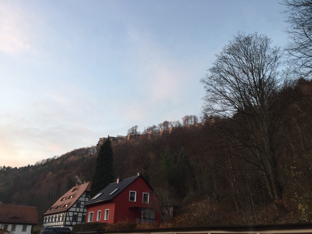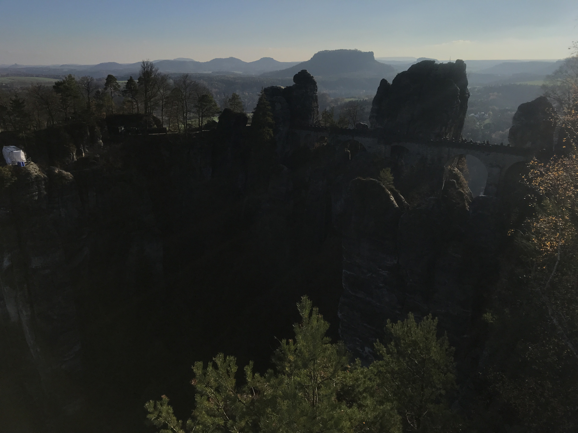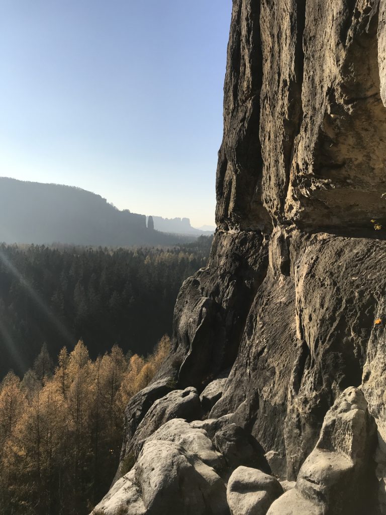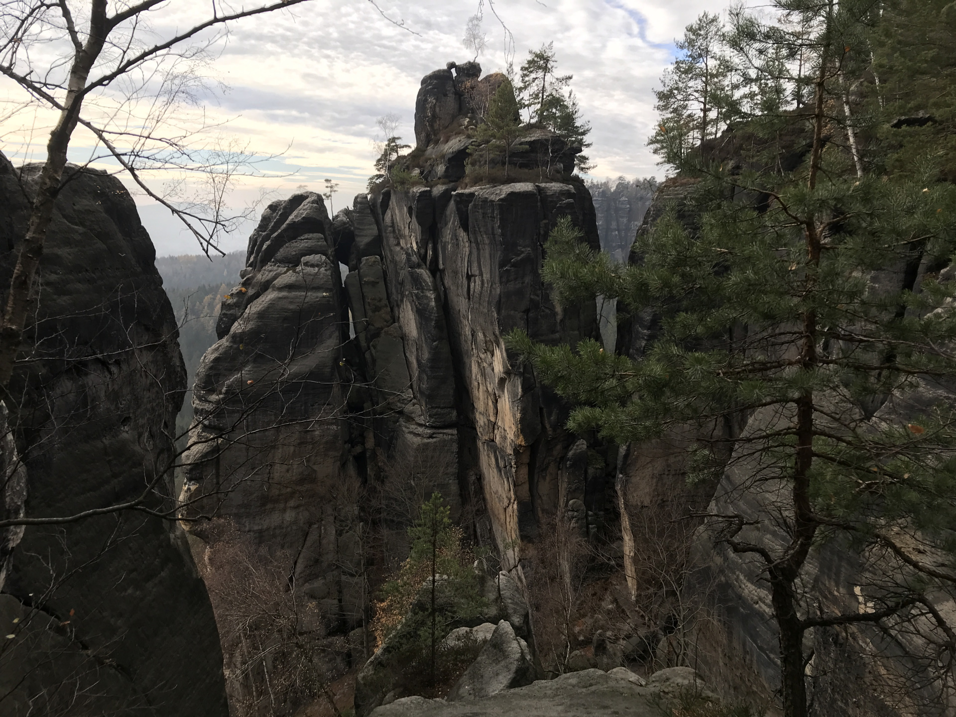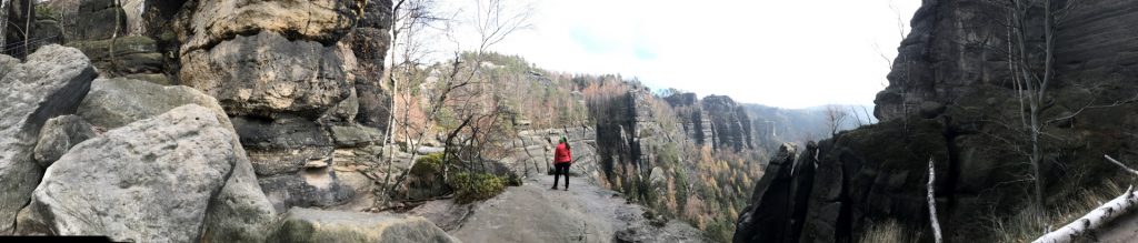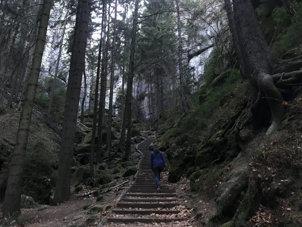Alex hatte ja die unglaublich gute Idee, auf unserer Fahrt Richtung Süden in die Heimat durch die Sächsische Schweiz zu fahren (dafür haben wir die Weinstraße gekippt :D). Wirklich toll. Wie sich wahrscheinlich jeder vorstellen kann (oder sowieso schon dort war), landet man hier im Märchen-Wunderland. Und weils ja gerade jeder weiss, ist es im Sommer wahrscheinlich unglaublich voll. Nicht so im Dezember.. 😉 Wir haben ein sehr nettes (und kostenloses) Übernachtungsplätzchen auf einem Wanderparkplatz gehabt und es uns ein paar Tage gut gehen lassen. Richtig kalt ist es aber langsam schon geworden! 😉 Genutzt haben wir das gute (traumhafte!) Wetter für ein paar zauberhafte Wanderungen, auf denen wir fast alleine waren. Was für eine unglaublich schöne Gegend! Und soo tolle Treppen und Steige überall 😉 Wirklich ein wunderbarer Platz, um draußen sein zu können. Angesehen und bewandert haben wir die Bastion (Brücke), Schwedenlöcher, Heilige und Zwillingsstiegen, Rübezahl, Kuhställe und noch ein paar trollige Stiege, Steige und Treppen. Allerdings… So viele Stufen findet man auf der Welt nicht noch einmal, glaube ich.. Da wir bei unserer langen Wanderung einige „Klettersteige“ aneinandergereiht haben, sind wir alle dazwischen liegenden Höhenmeter auf den Stufen abwärts gegangen. Gut, gibt auch Knieschwammerl, aber so viele Treppen aufwärts wären auch ein echter Rekord gewesen. Wenn man die „Heilige Stiege“ aufwärts geht, glaubt man am Ende sicherlich an alles.. 😀