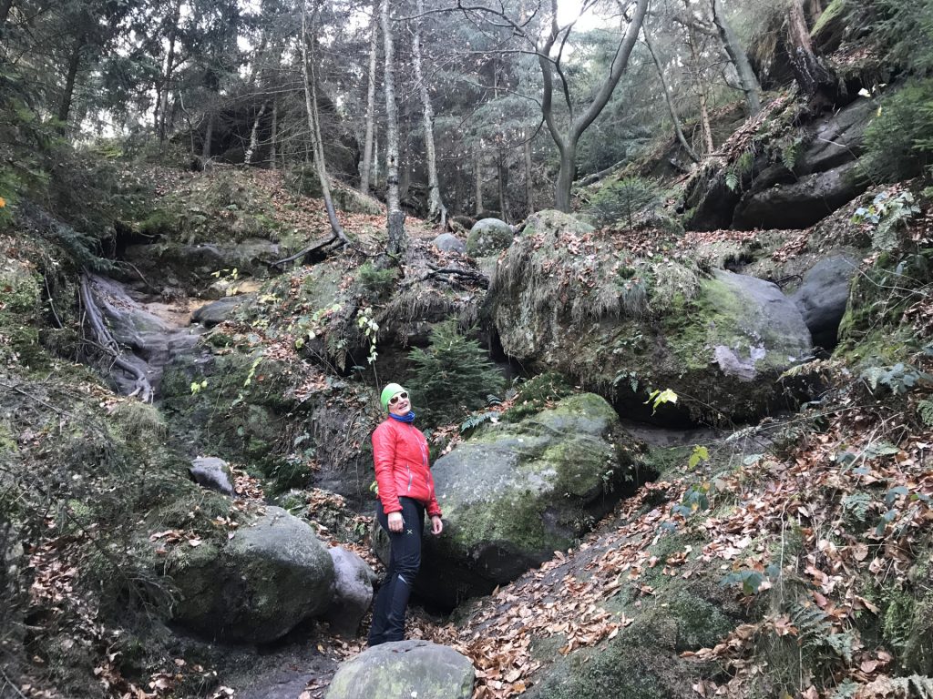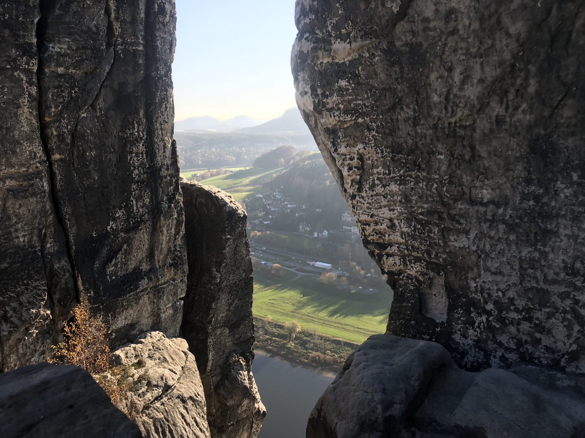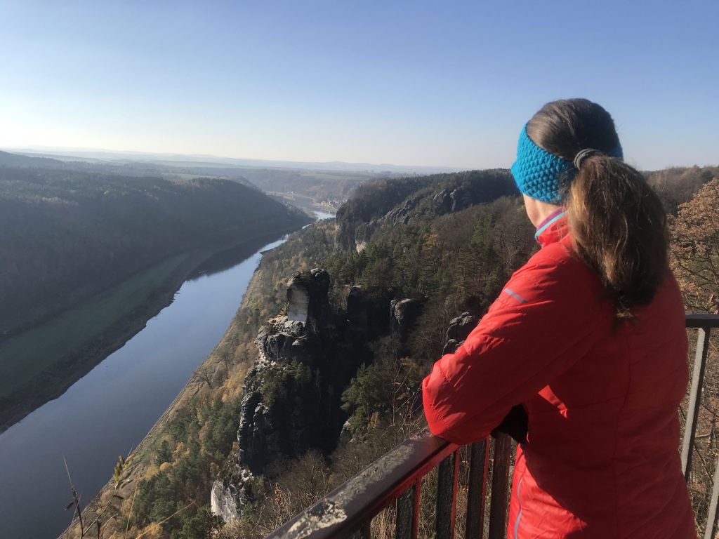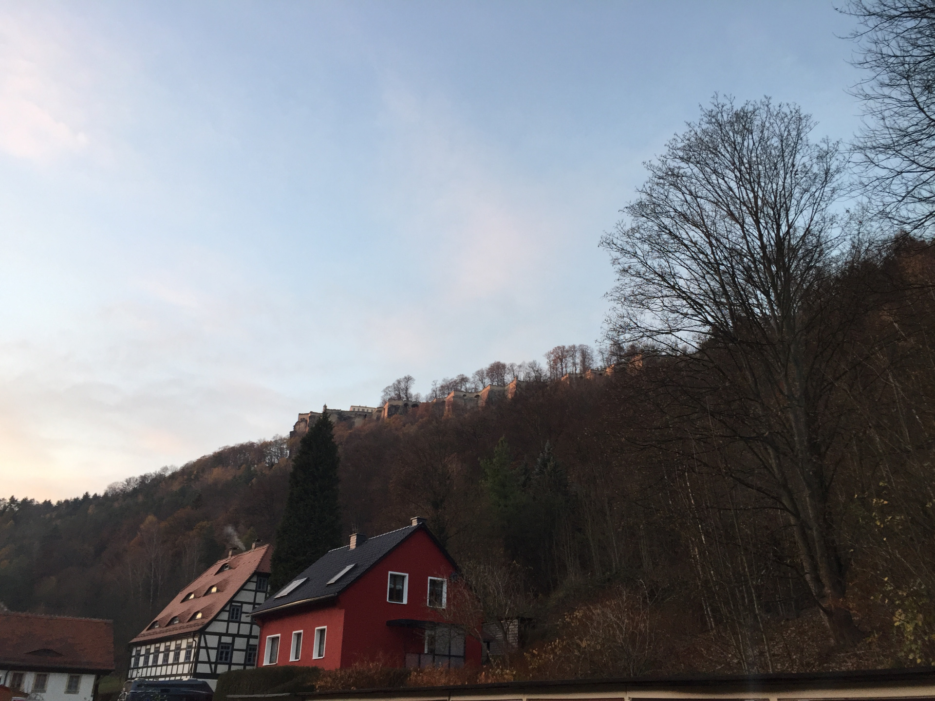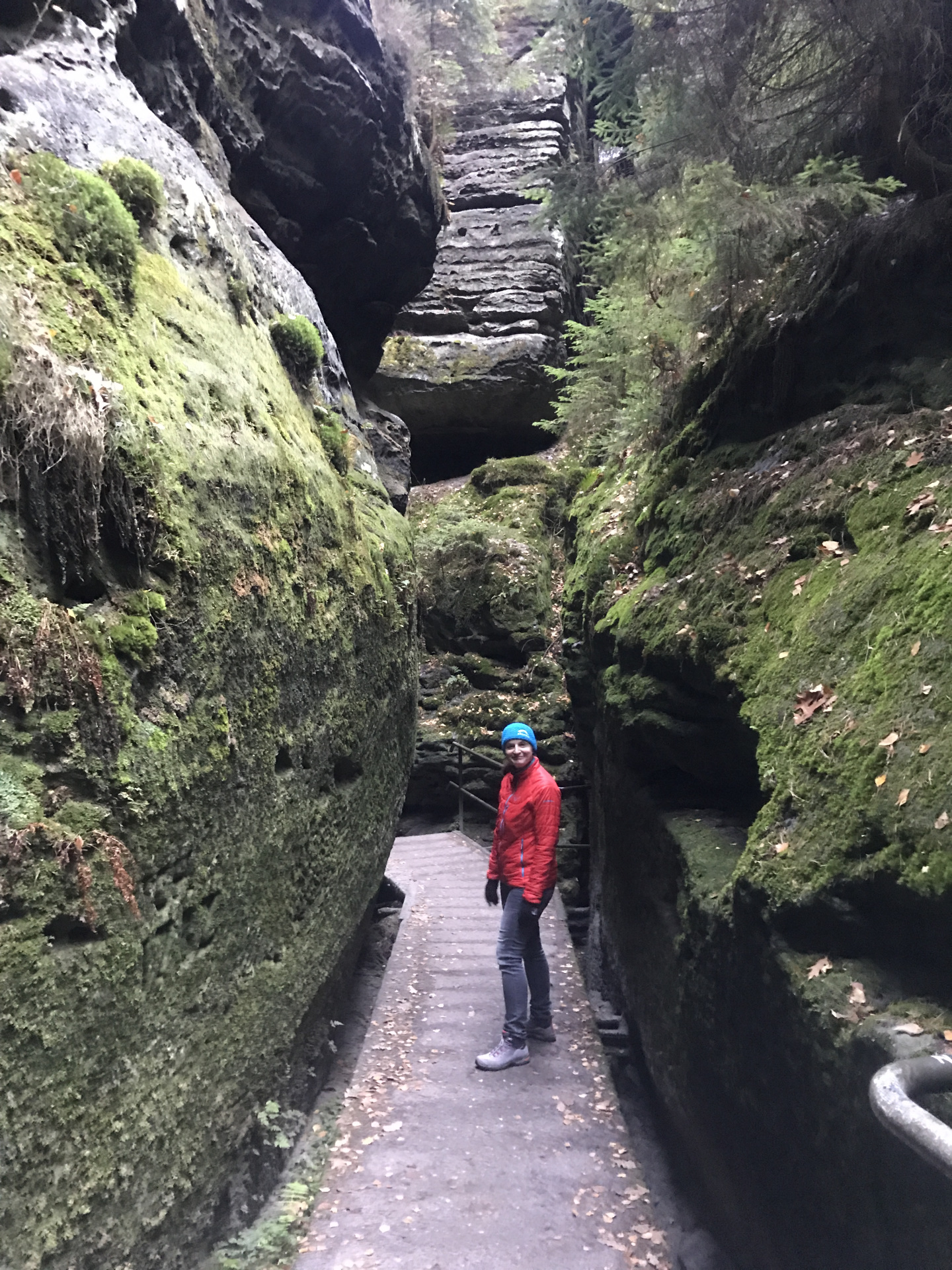Alex hatte ja die unglaublich gute Idee, auf unserer Fahrt Richtung Süden in die Heimat durch die Sächsische Schweiz zu fahren (dafür haben wir die Weinstraße gekippt :D). Wirklich toll. Wie sich wahrscheinlich jeder vorstellen kann (oder sowieso schon dort war), landet man hier im Märchen-Wunderland. Und weils ja gerade jeder weiss, ist es im Sommer wahrscheinlich unglaublich voll. Nicht so im Dezember.. 😉 Wir haben ein sehr nettes (und kostenloses) Übernachtungsplätzchen auf einem Wanderparkplatz gehabt und es uns ein paar Tage gut gehen lassen. Richtig kalt ist es aber langsam schon geworden! 😉 Genutzt haben wir das gute (traumhafte!) Wetter für ein paar zauberhafte Wanderungen, auf denen wir fast alleine waren. Was für eine unglaublich schöne Gegend! Und soo tolle Treppen und Steige überall 😉 Wirklich ein wunderbarer Platz, um draußen sein zu können. Angesehen und bewandert haben wir die Bastion (Brücke), Schwedenlöcher, Heilige und Zwillingsstiegen, Rübezahl, Kuhställe und noch ein paar trollige Stiege, Steige und Treppen. Allerdings… So viele Stufen findet man auf der Welt nicht noch einmal, glaube ich.. Da wir bei unserer langen Wanderung einige „Klettersteige“ aneinandergereiht haben, sind wir alle dazwischen liegenden Höhenmeter auf den Stufen abwärts gegangen. Gut, gibt auch Knieschwammerl, aber so viele Treppen aufwärts wären auch ein echter Rekord gewesen. Wenn man die „Heilige Stiege“ aufwärts geht, glaubt man am Ende sicherlich an alles.. 😀