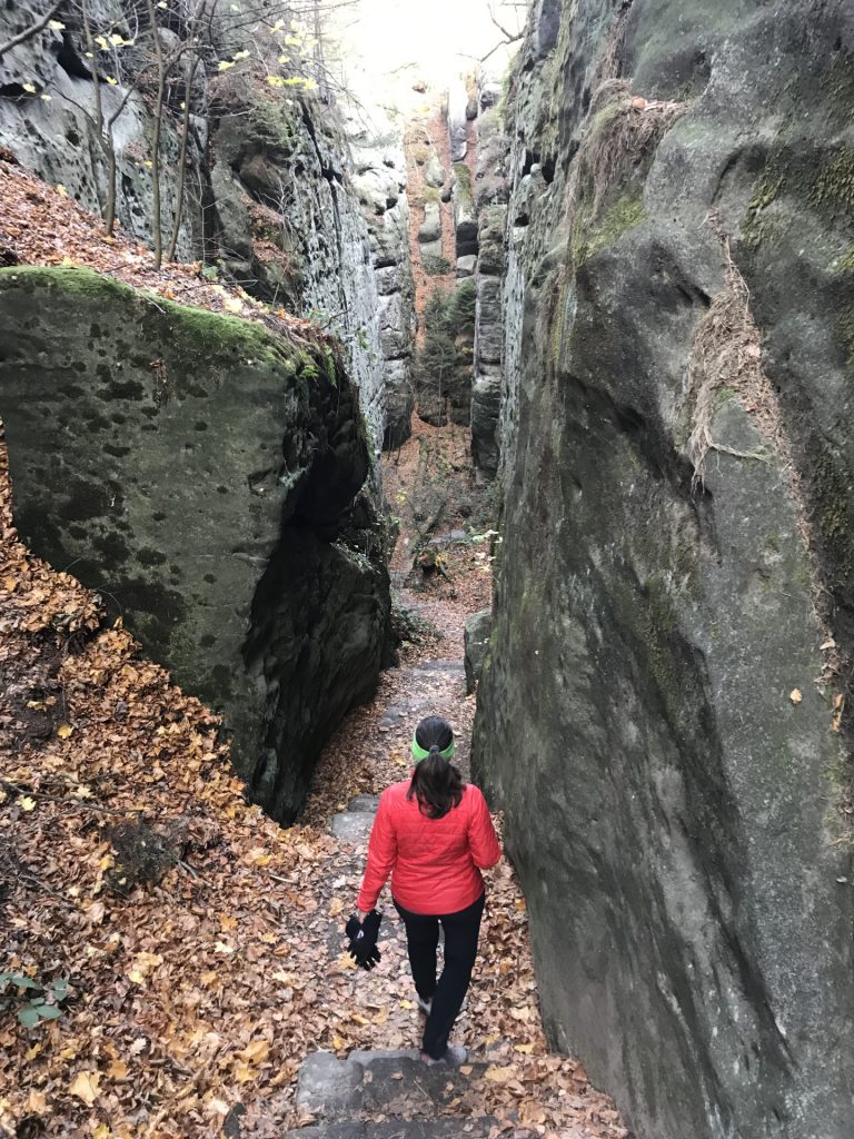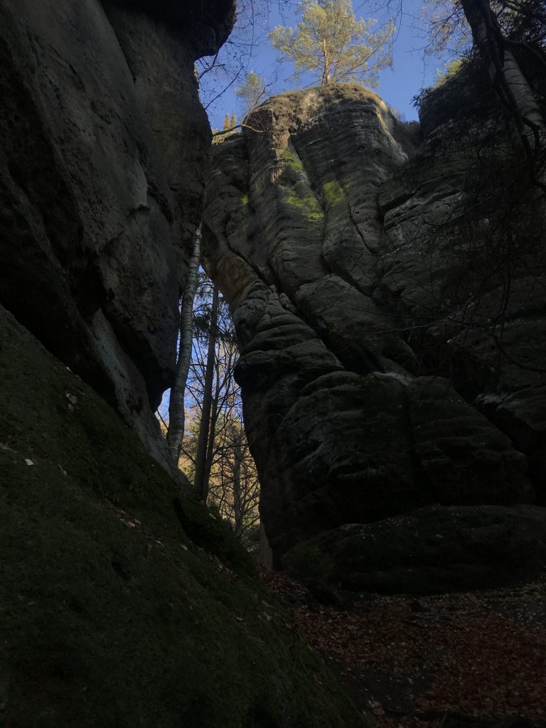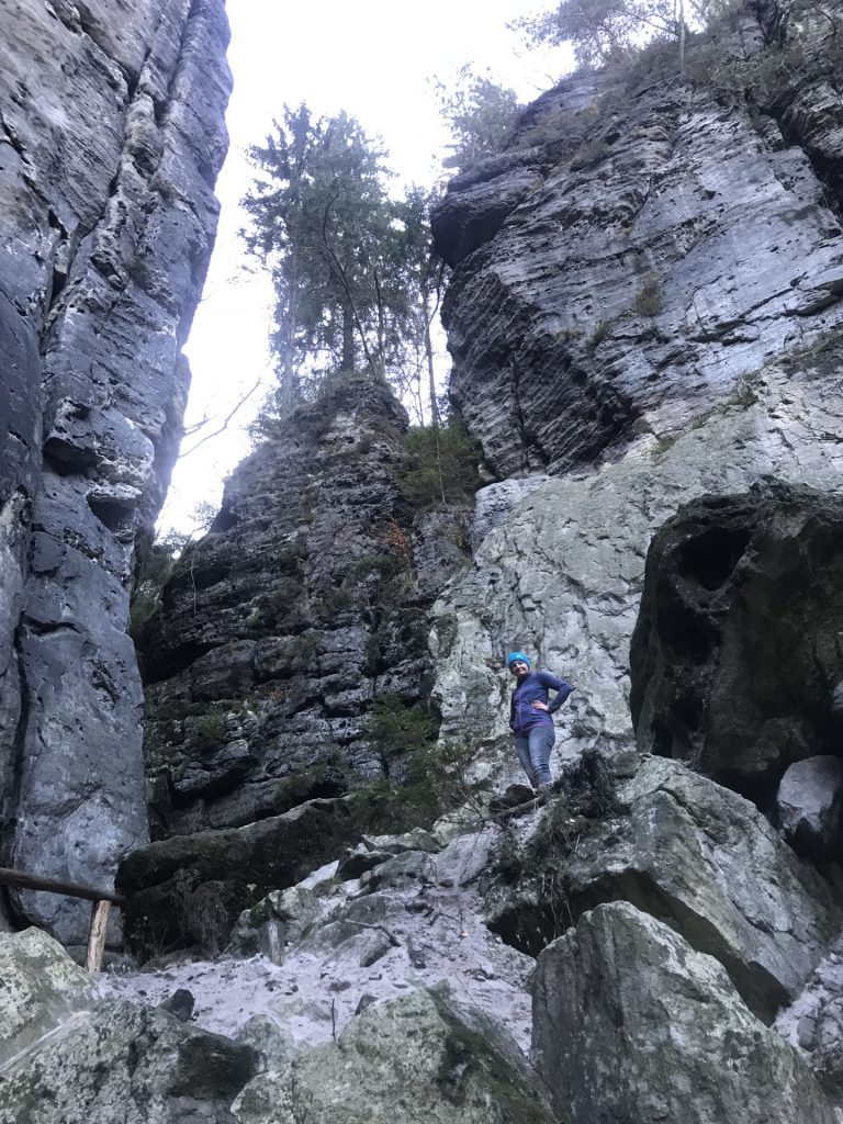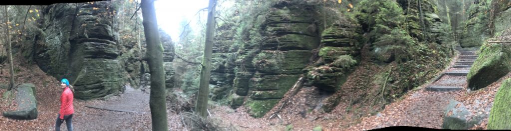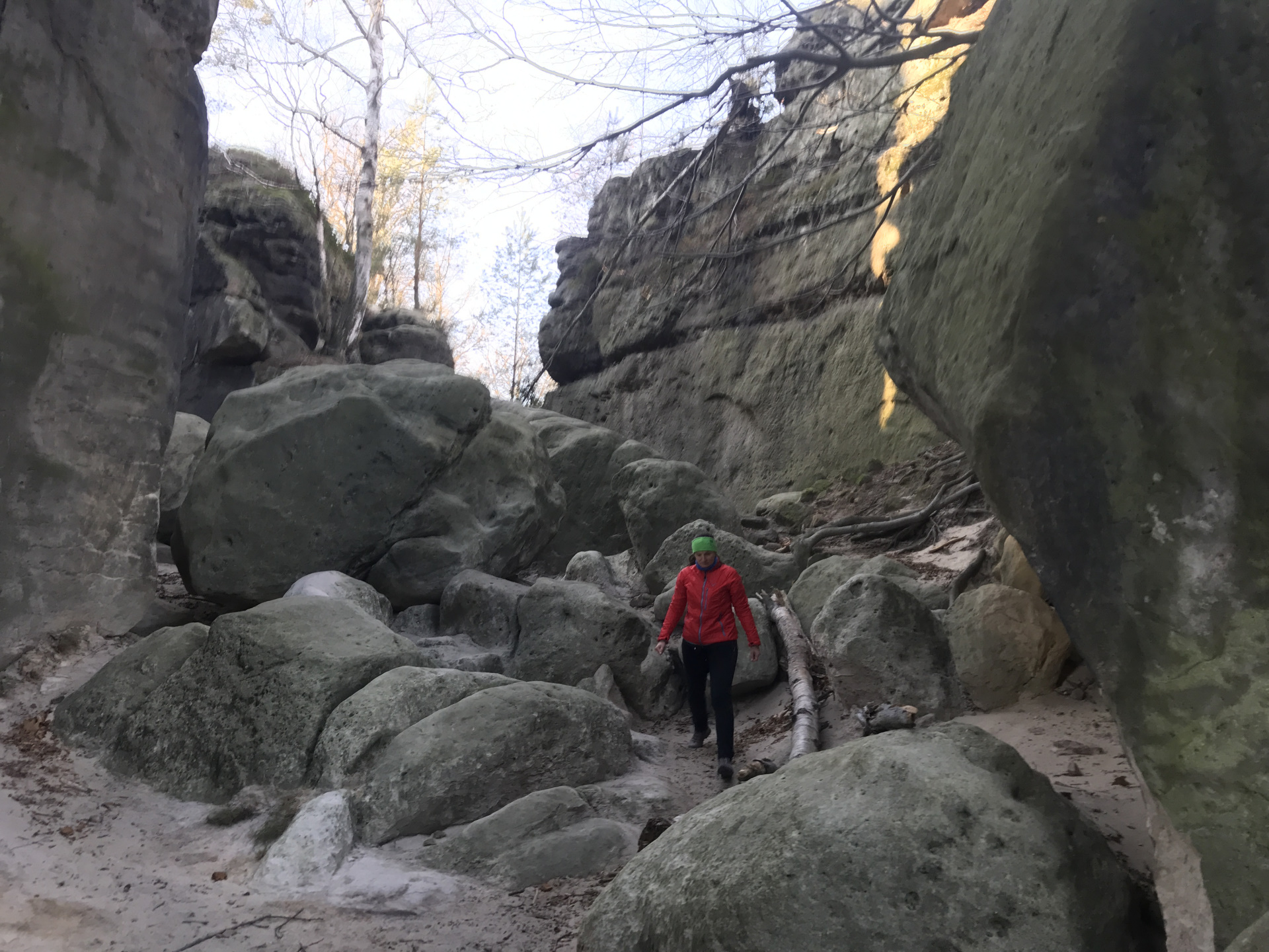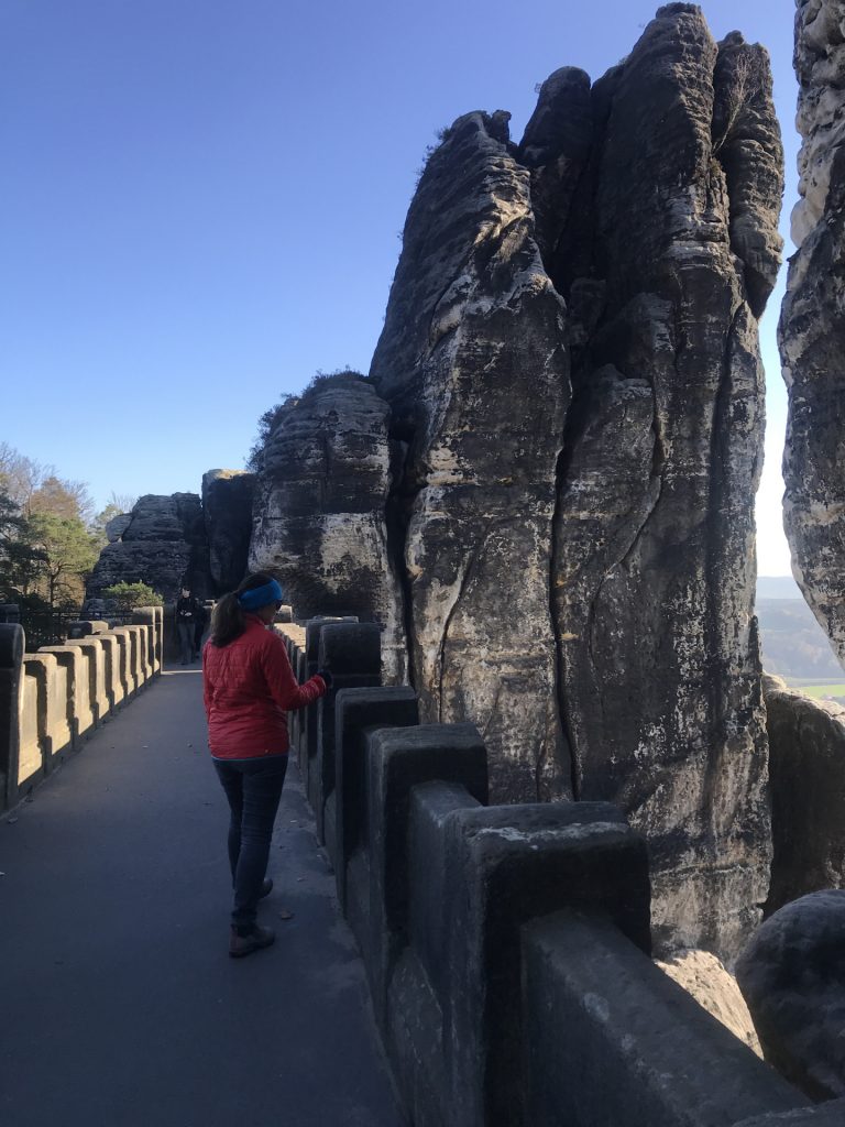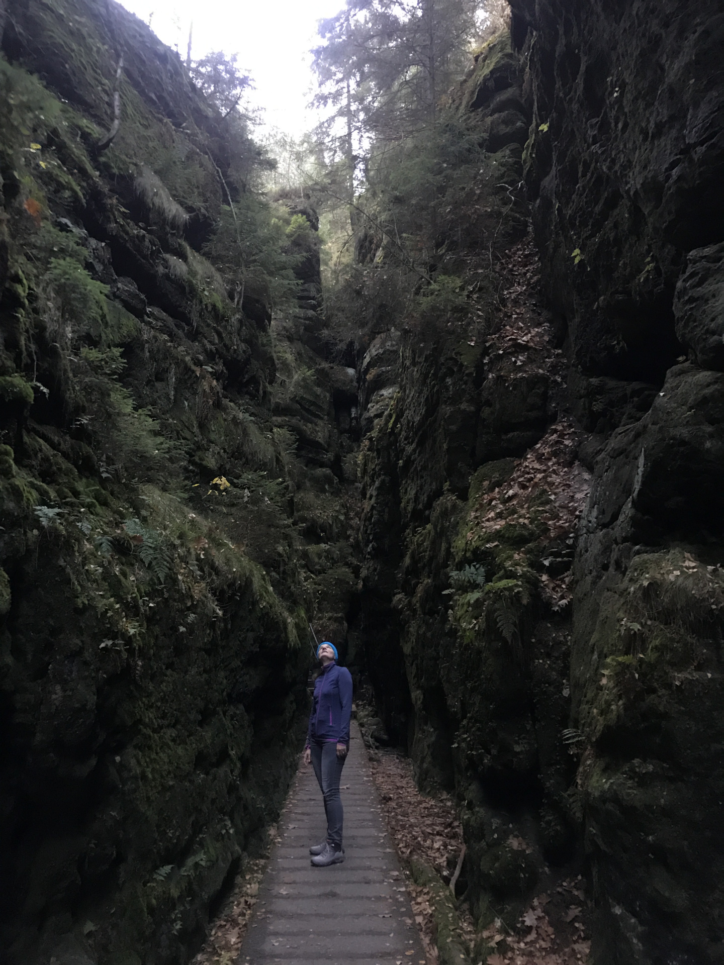 Alex hatte ja die unglaublich gute Idee, auf unserer Fahrt Richtung Süden in die Heimat durch die Sächsische Schweiz zu fahren (dafür haben wir die Weinstraße gekippt :D). Wirklich toll. Wie sich wahrscheinlich jeder vorstellen kann (oder sowieso schon dort war), landet man hier im Märchen-Wunderland. Und weils ja gerade jeder weiss, ist es im Sommer wahrscheinlich unglaublich voll. Nicht so im Dezember.. 😉 Wir haben ein sehr nettes (und kostenloses) Übernachtungsplätzchen auf einem Wanderparkplatz gehabt und es uns ein paar Tage gut gehen lassen. Richtig kalt ist es aber langsam schon geworden! 😉 Genutzt haben wir das gute (traumhafte!) Wetter für ein paar zauberhafte Wanderungen, auf denen wir fast alleine waren. Was für eine unglaublich schöne Gegend! Und soo tolle Treppen und Steige überall 😉 Wirklich ein wunderbarer Platz, um draußen sein zu können. Angesehen und bewandert haben wir die Bastion (Brücke), Schwedenlöcher, Heilige und Zwillingsstiegen, Rübezahl, Kuhställe und noch ein paar trollige Stiege, Steige und Treppen. Allerdings… So viele Stufen findet man auf der Welt nicht noch einmal, glaube ich.. Da wir bei unserer langen Wanderung einige „Klettersteige“ aneinandergereiht haben, sind wir alle dazwischen liegenden Höhenmeter auf den Stufen abwärts gegangen. Gut, gibt auch Knieschwammerl, aber so viele Treppen aufwärts wären auch ein echter Rekord gewesen. Wenn man die „Heilige Stiege“ aufwärts geht, glaubt man am Ende sicherlich an alles.. 😀