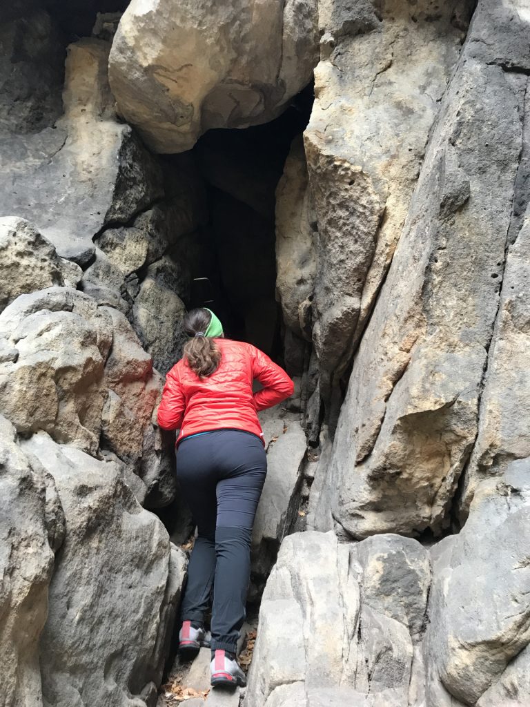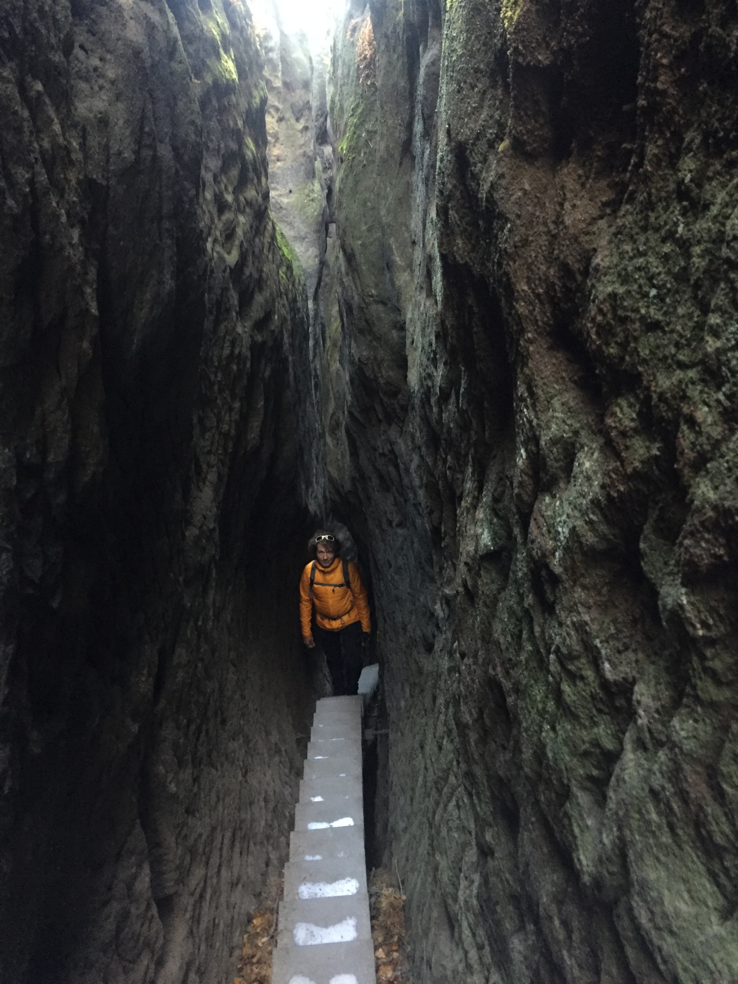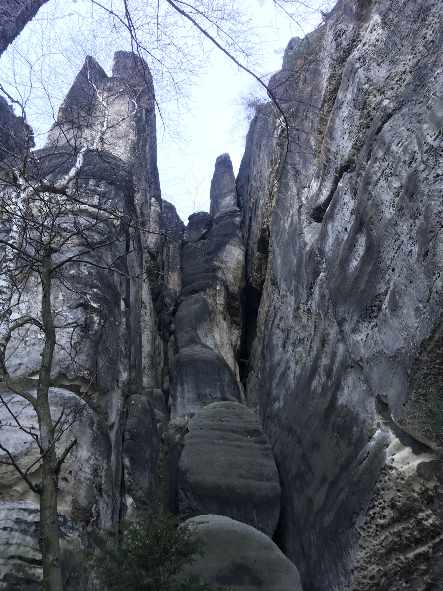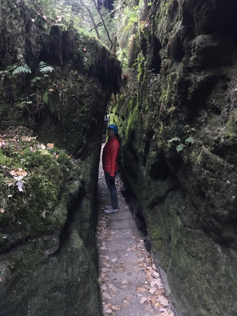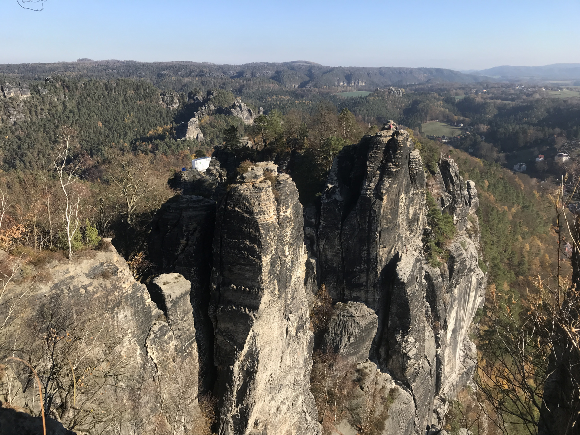 Alex hatte ja die unglaublich gute Idee, auf unserer Fahrt Richtung Süden in die Heimat durch die Sächsische Schweiz zu fahren (dafür haben wir die Weinstraße gekippt :D). Wirklich toll. Wie sich wahrscheinlich jeder vorstellen kann (oder sowieso schon dort war), landet man hier im Märchen-Wunderland. Und weils ja gerade jeder weiss, ist es im Sommer wahrscheinlich unglaublich voll. Nicht so im Dezember.. 😉 Wir haben ein sehr nettes (und kostenloses) Übernachtungsplätzchen auf einem Wanderparkplatz gehabt und es uns ein paar Tage gut gehen lassen. Richtig kalt ist es aber langsam schon geworden! 😉 Genutzt haben wir das gute (traumhafte!) Wetter für ein paar zauberhafte Wanderungen, auf denen wir fast alleine waren. Was für eine unglaublich schöne Gegend! Und soo tolle Treppen und Steige überall 😉 Wirklich ein wunderbarer Platz, um draußen sein zu können. Angesehen und bewandert haben wir die Bastion (Brücke), Schwedenlöcher, Heilige und Zwillingsstiegen, Rübezahl, Kuhställe und noch ein paar trollige Stiege, Steige und Treppen. Allerdings… So viele Stufen findet man auf der Welt nicht noch einmal, glaube ich.. Da wir bei unserer langen Wanderung einige „Klettersteige“ aneinandergereiht haben, sind wir alle dazwischen liegenden Höhenmeter auf den Stufen abwärts gegangen. Gut, gibt auch Knieschwammerl, aber so viele Treppen aufwärts wären auch ein echter Rekord gewesen. Wenn man die „Heilige Stiege“ aufwärts geht, glaubt man am Ende sicherlich an alles.. 😀