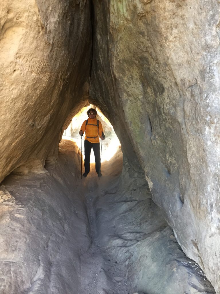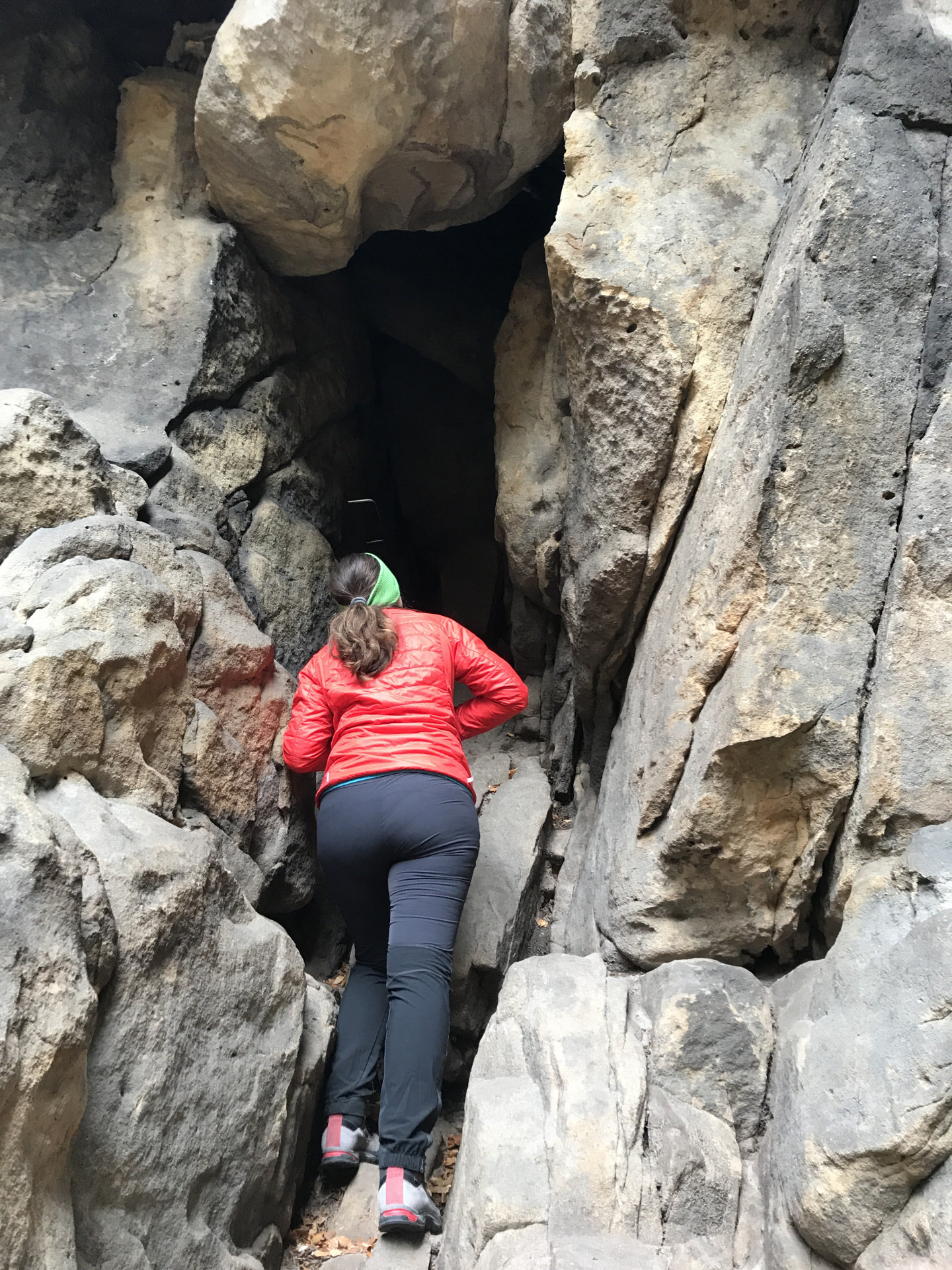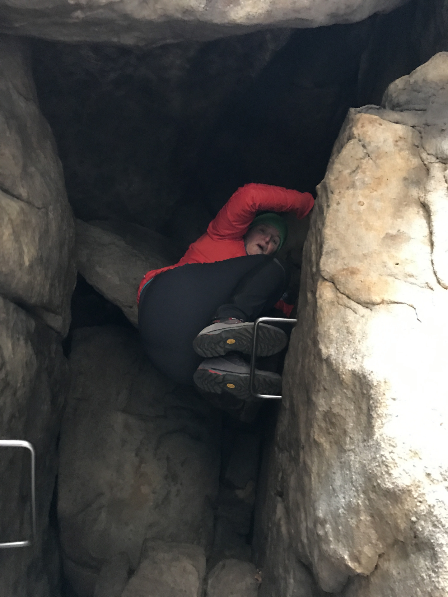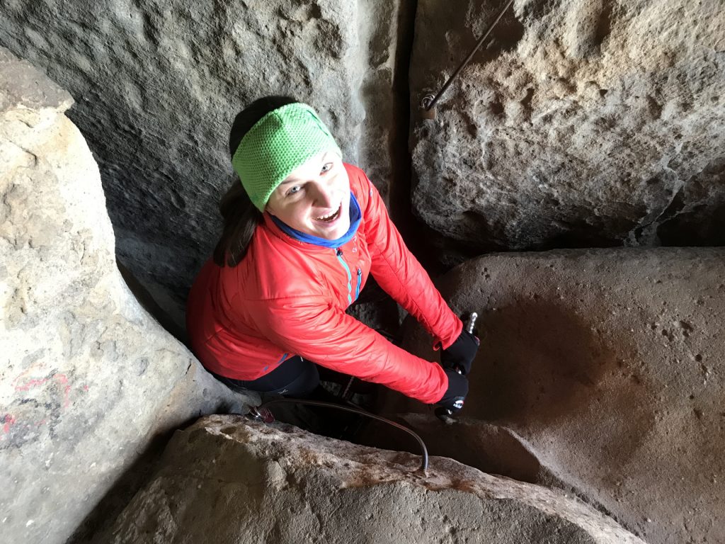 Unglaublich war dann eben der Rübezahl-Steig, durch ein Felsloch hinaus auf das obere Wandende. Gut, dass wir hier noch nicht unsere Südtirolerische Halbpension hatte: ist die Wampe zu dick, bleibst du hier garantiert stecken!! 😀