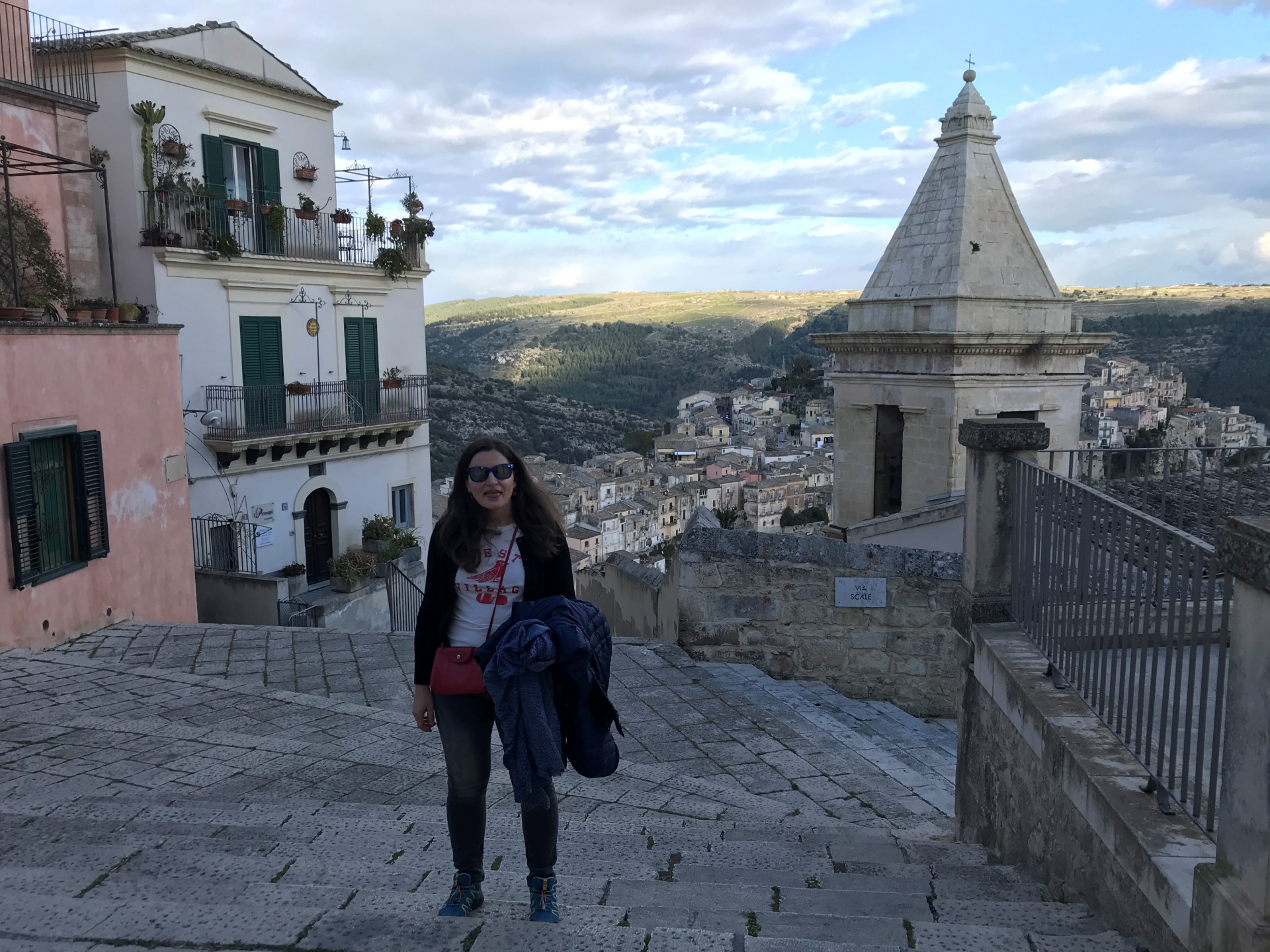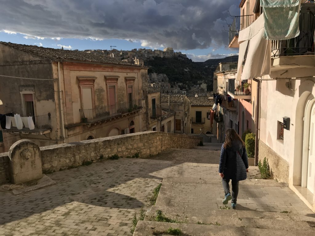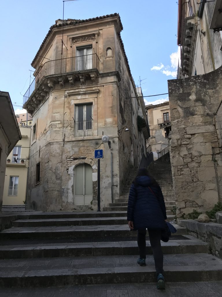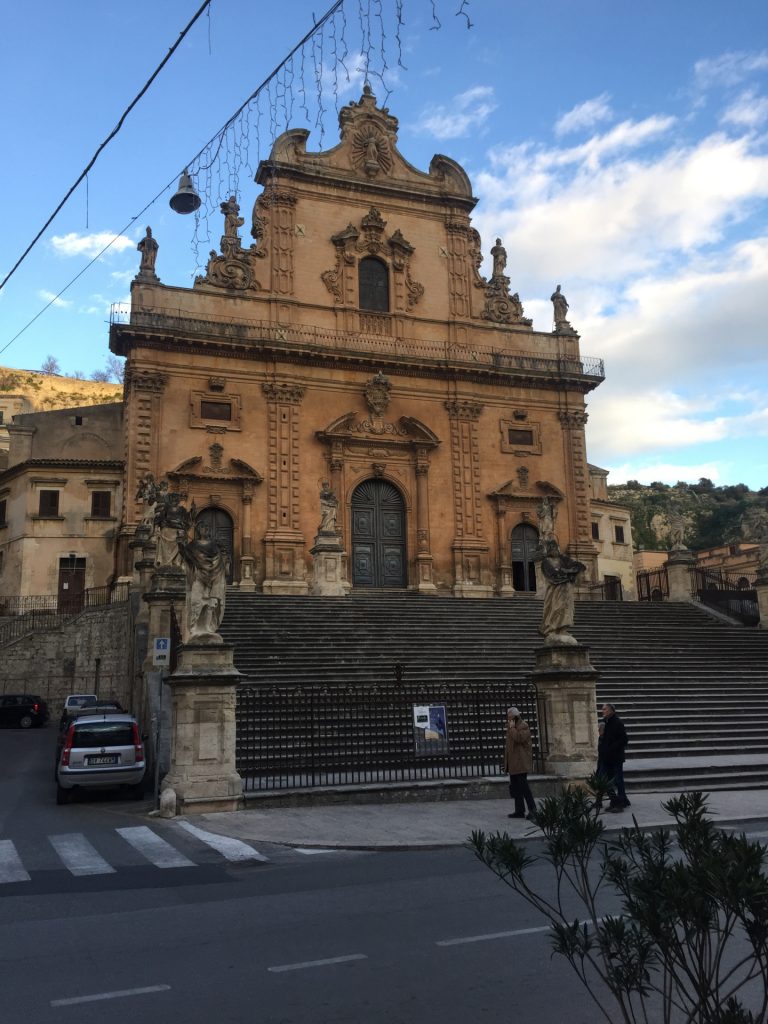 Angesehen haben wir uns Ragusa und Modica, zwei sehr schöne Städte. Ragusa war nach einen Erdbeben zweigeteilt, in eine ältere und engere „Unterstadt“ und eine schickere und reichere „Oberstadt“. Alles auf den Karsthügeln und, na, wer weiß es?, mit viiiiielen Treppen verbunden..