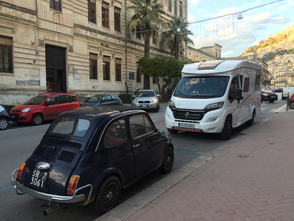 Oh, mal eine weitere Feststellung hier aufschreiben: nirgends gibt es so viele originale Fiat 500 wie hier auf Sizilien im Altagsbetrieb!! 😀 Die passen einfach zu gut durch die super engen Gassen.. 🙂 und schauen auch noch hübsch aus (Bella figura e molto importante)!