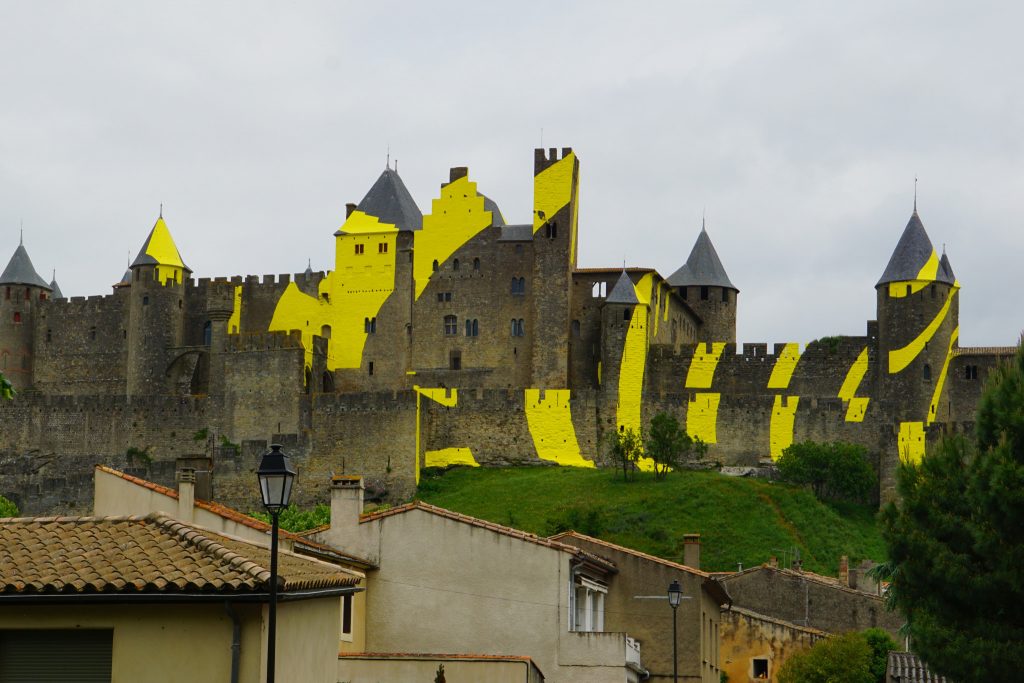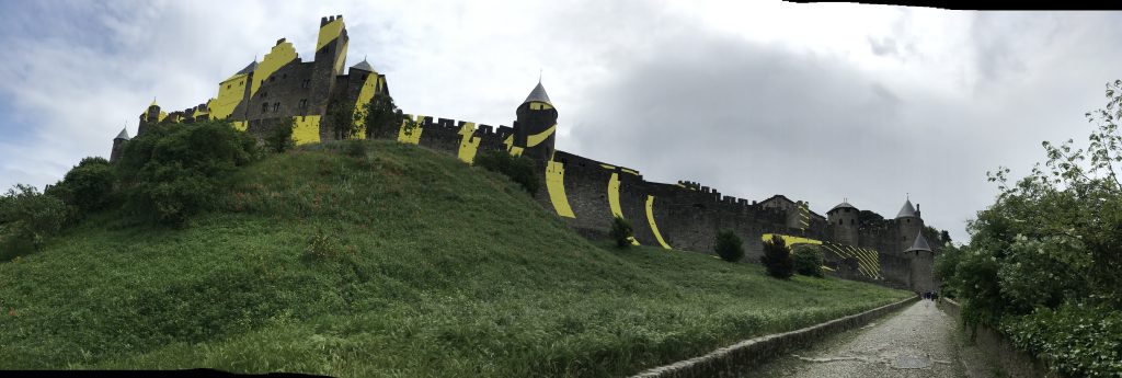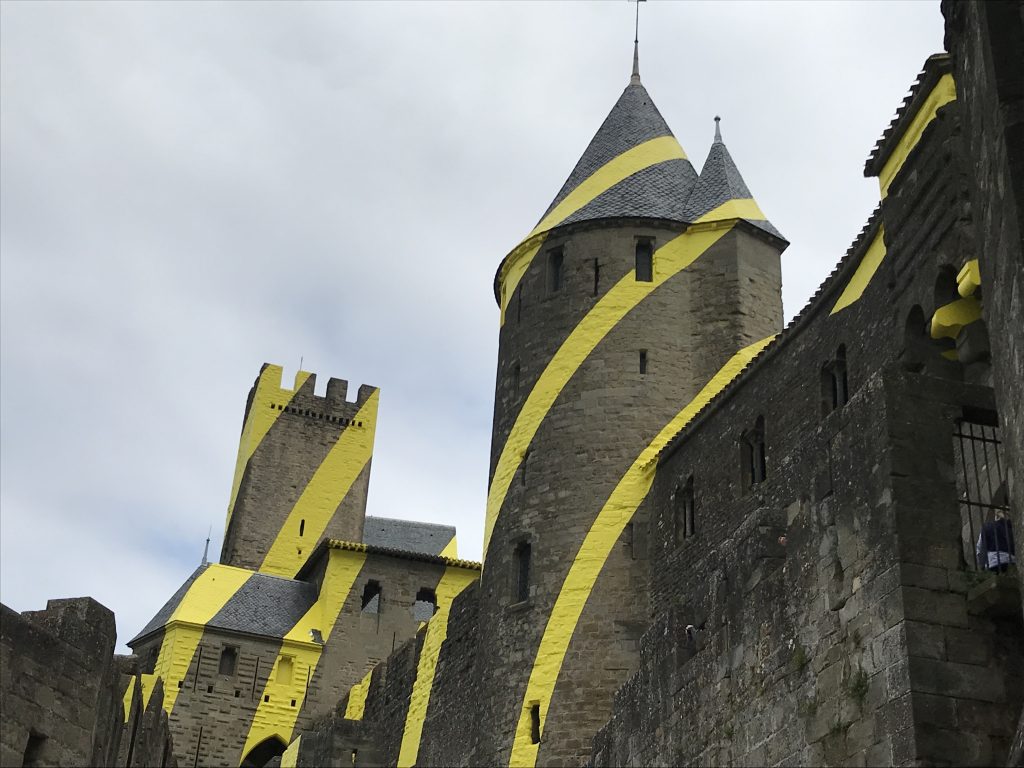 Kennt man vielleicht in Deutschland vom Brettspiel (ich jedenfalls 😉). Die Stadt ist mittelalterlich, komplett von einer Stadtmauer umrundet, von einem Künstler zum Jubiläum mit gelber Farbe verschönert und unglaublich voll (voller Touris). Da ganz Frankreich ja voller alter Städte ist, muss man sich in diesem Land gar nicht unbedingt in die Touristen-Massen werfen.. Wir sind durch wirklich viele, echte und lebendige Städte gefahren, wo wir mit noch ein paar anderen die einzigen Touris waren.