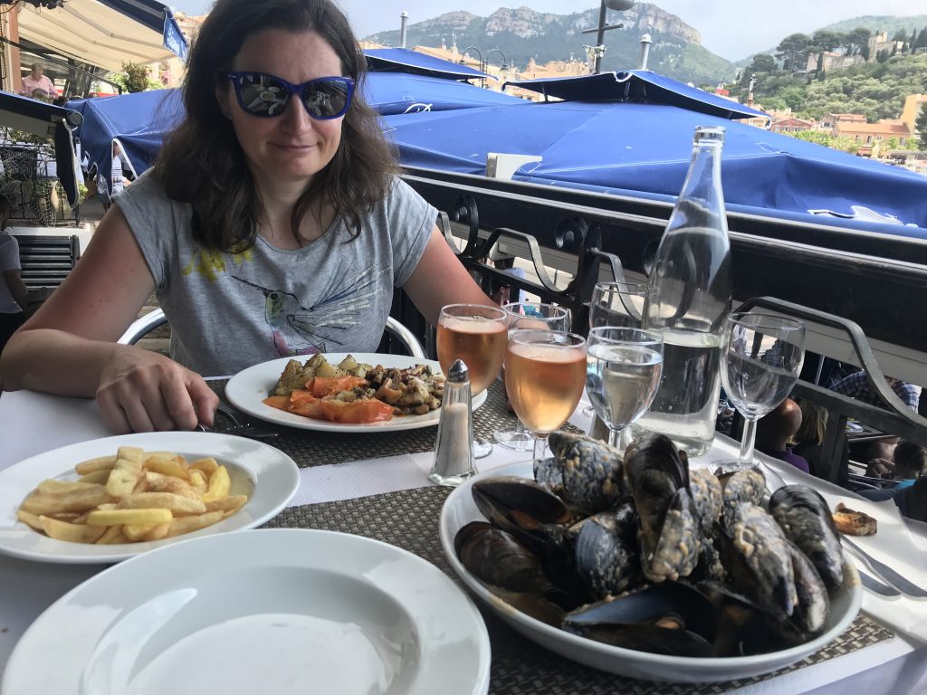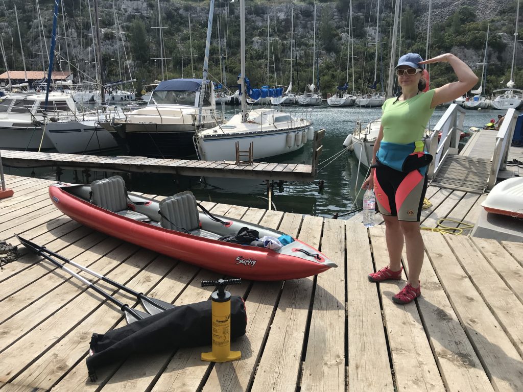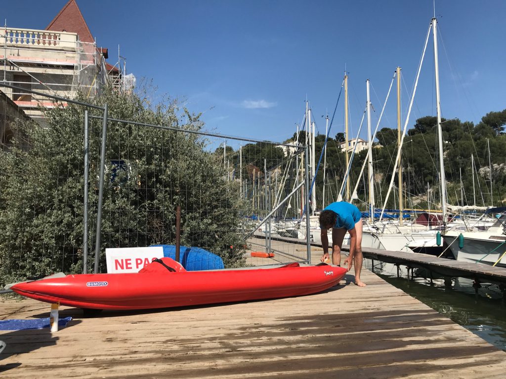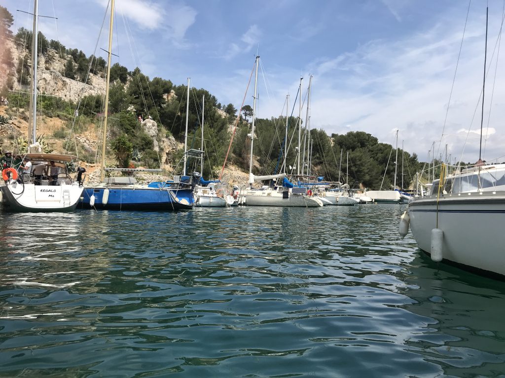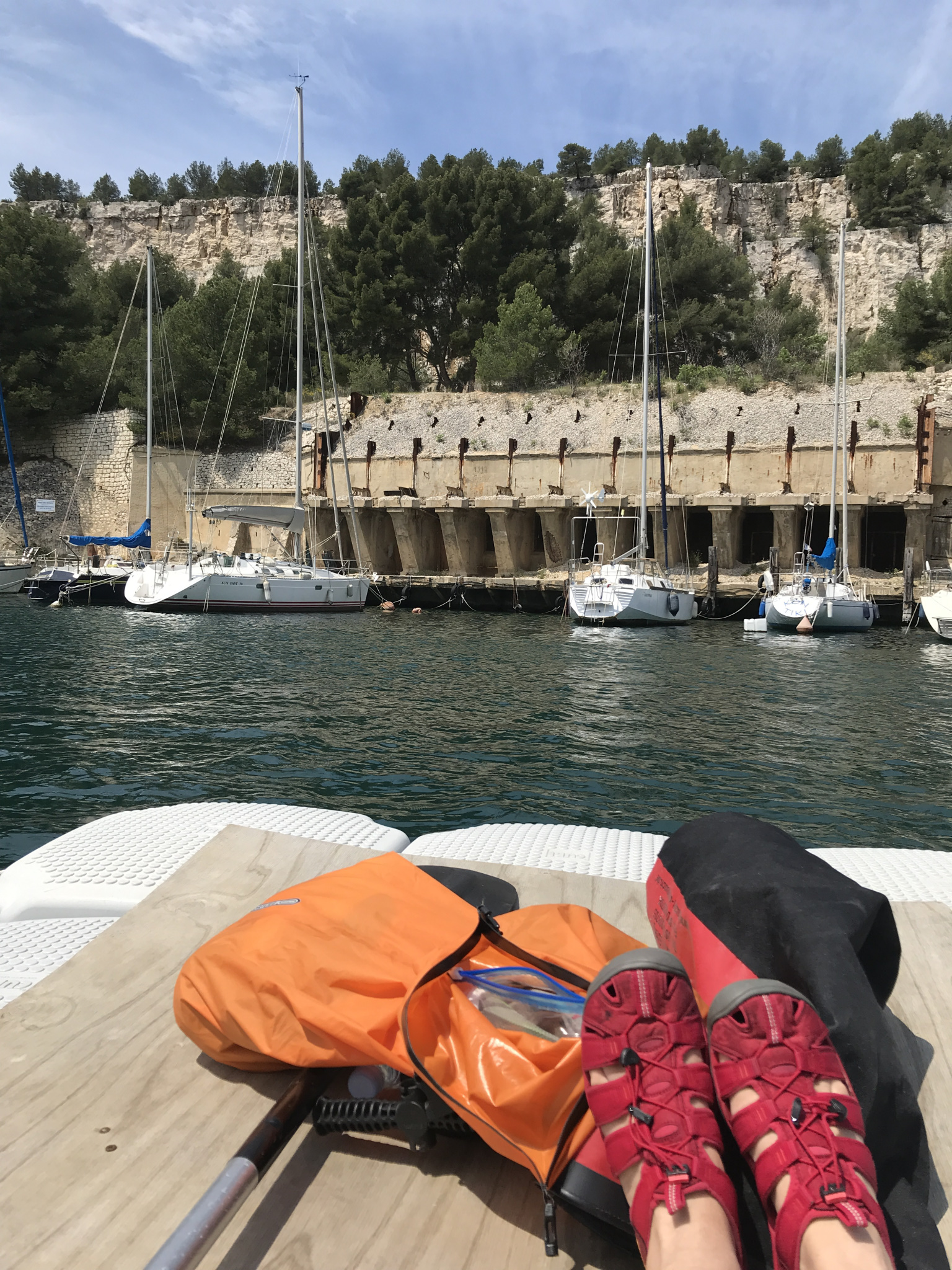 …Cassis. Hier konnten wir noch bei Starkwind auf dem Meer paddeln und die Calanques von unten anschauen. Wenn man das Wasser vor lauter Leuten noch gefunden hat… Es war nämlich Feiertag und ganz Marseille (und Rest-Frankreich?) wollte wohl genau dort baden. Unser Campingplatz in Cassis hatte 250 Plätze und war voll… Trotzdem waren bei dem starken Wind nur wenige so mutig, im Meer herum zu paddeln 😀 Insbesondere mit einem offenen Boot… Die Wellen waren so hoch, dass man in einem Moment in einem Tal verschwunden war und im nächsten eine Doppel-Garage auf einen zugefahren kam… Wir hatten jedenfalls mächtig zu tun, unglaublichen Muskelkater und ein fettes Abenteuer! 😀 Fotos gibt’s nicht so viele, die Absauf-Gefahr fürs gute Phone war zu hoch.