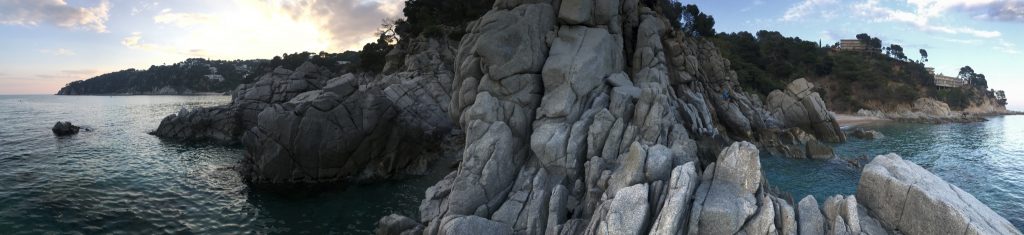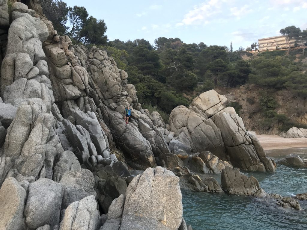 Wir haben mit Spanien noch nicht ganz Frieden geschlossen, die Küstenstrasse und eigentlich alle Städte sind eher lieblos und es liegt viel Müll herum… Uns fehlt ein wenig der Charm. Hinzu kommt, dass an der Costa Blanca, Costa Brave etc ganz Deutschland auf riesigen Campingplatzen Urlaub macht, dazwischen nichts bzw. „Urlaubsorte“ wie Lloret del Mar oder Benidorm liegen. Und mit Sicherheit ein Aldi, Lidl und Mc Donalds. Bemerkenswert. Dafür immer tonnenweise Strand und ein Vergnügungspark. Und wirklich alles ist unglaublich billig. Auch wo wir im Moment stehen, gibt es diese Apartment-Hochhäuser (mit Deutschen und Briten bewohnt), einen Vergnügungspark und Strand UND Spaniens kleinstes Naturschutzgebiet (in dem wir morgen klettern wollen): den wunderschönen Fels auf den Fotos. Alex hat ein tolles Video gedreht: ganz am Schluss sieht man kurz (rechts) unseren Stellplatz.