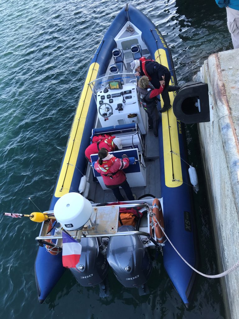 Sandra hat im Internet bei Le Conquet einen Veranstalter für Delphintouren mit dem Zodiak gefunden, da mussten wir natürlich hin! Der Stellplatz ist bei der Touristeninformation (kostenlos!!) und die nette Dame hat uns am Abend noch die zwei letzten Plätze gebucht.