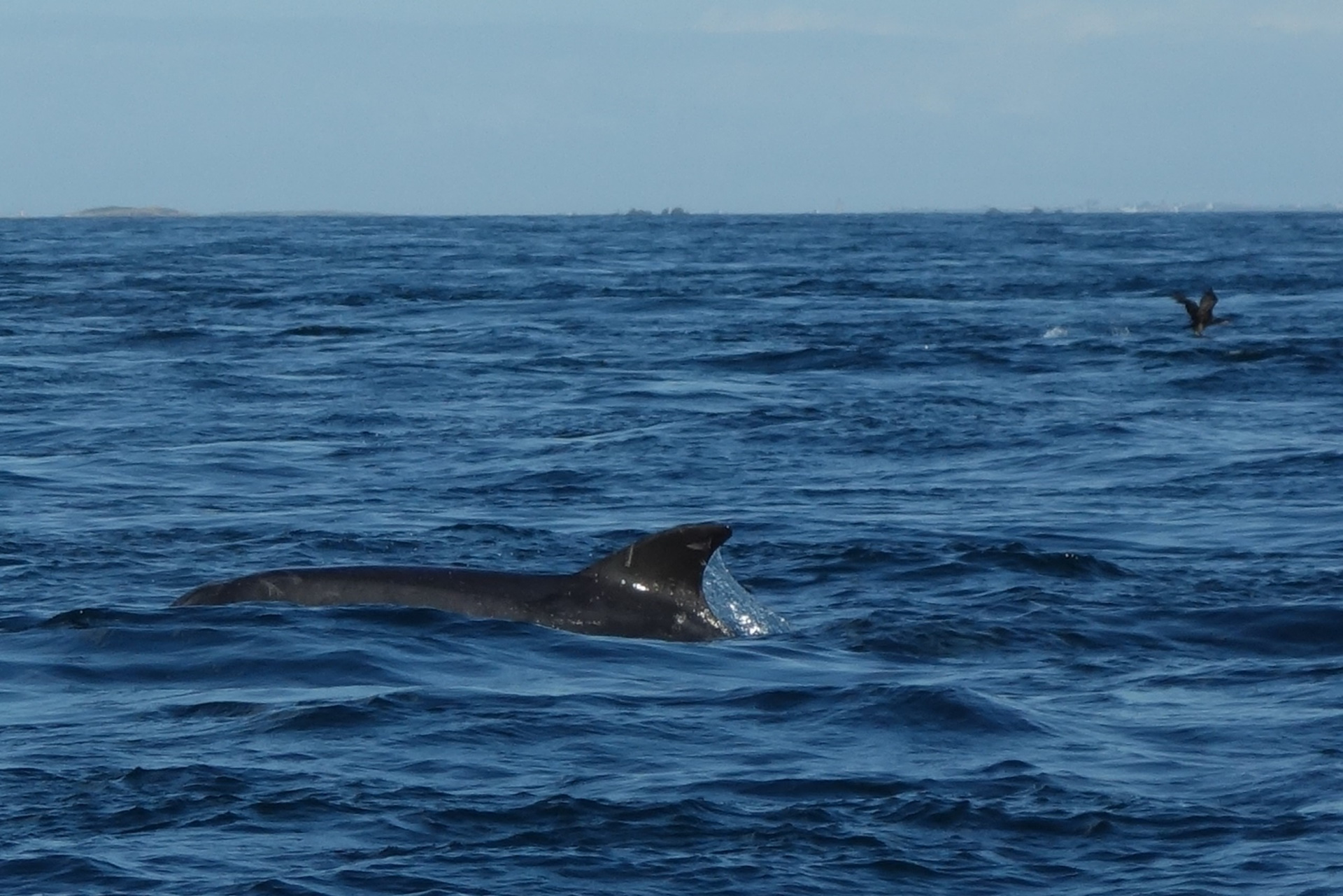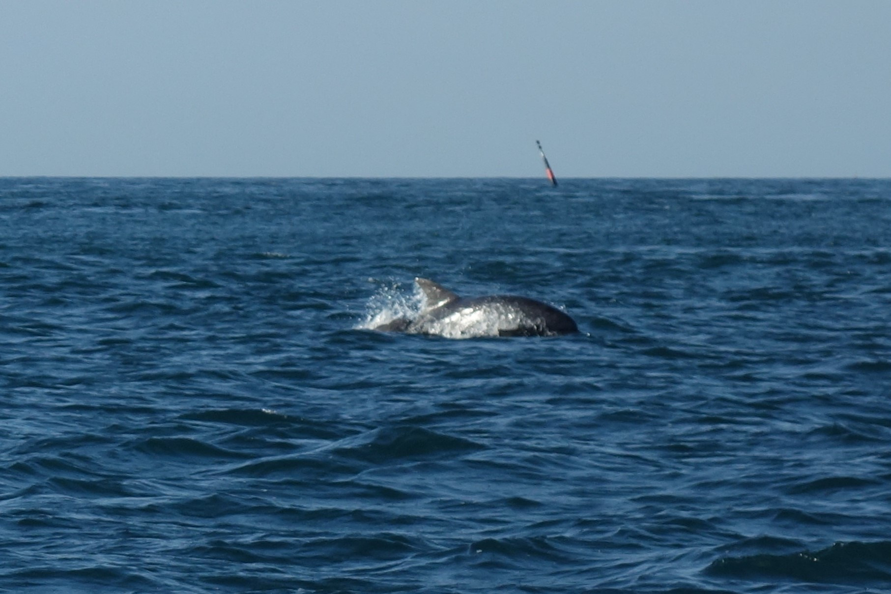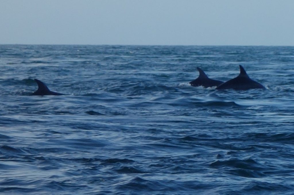 Am nächsten Morgen ging es mit einem Zodiak mit 2*300PS Yamaha Motoren (so was habe ich noch nie gesehen, ein Porsche ist nix dagegen) aufs Meer. Wir hatten mit den 16 Passagieren gerade abgelegt als auch schon die ersten Delphine gesprungen sind :-). Unterm Boot durch und mit vielen Delphin-Kindern, superschön und sehr ergreifend. Sandra musste sich mal wieder kräftig schnäuzen! 😀 Ein Baby war auch in der Gruppe dabei…