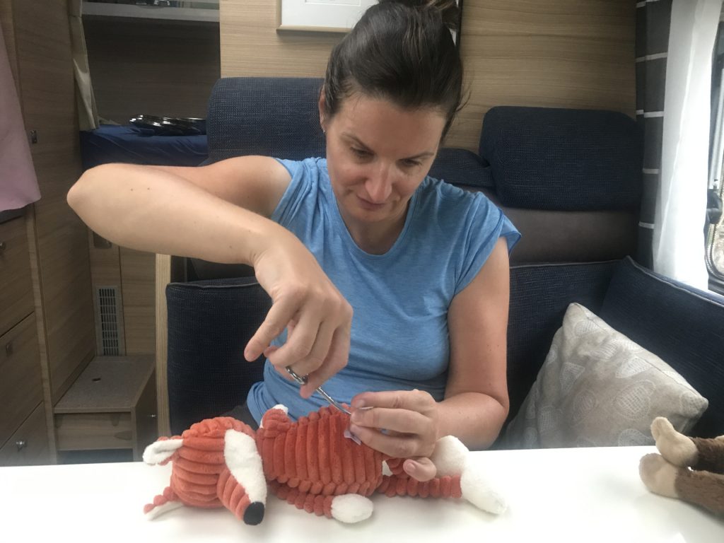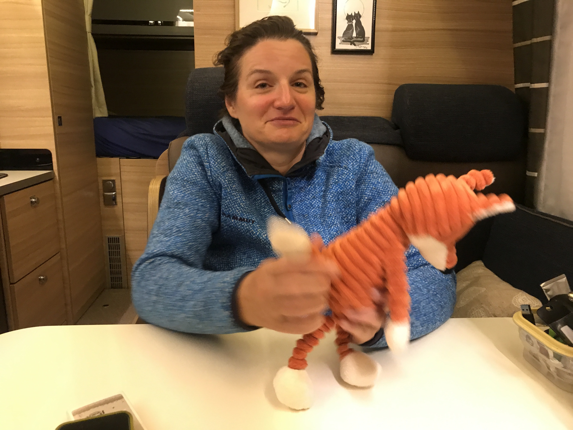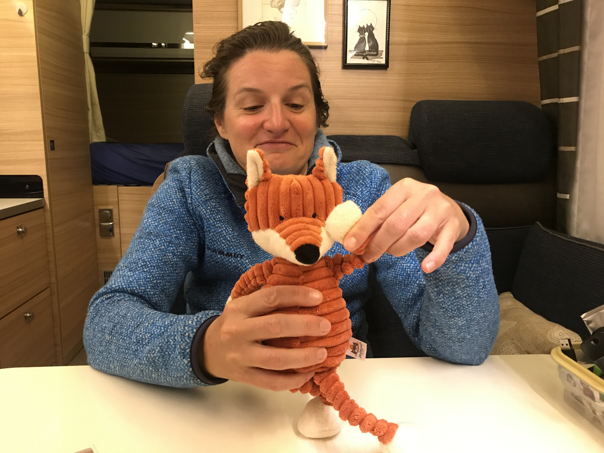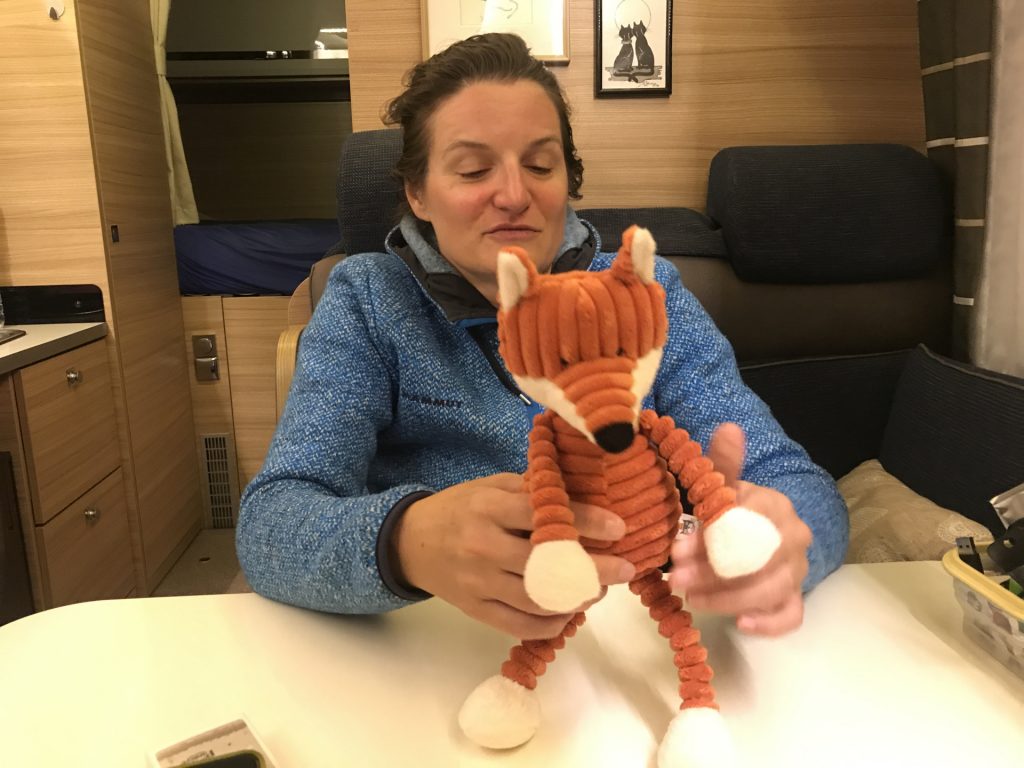 An der bretonischen Küste gibt es super schöne Orte (z.B. eben Vannes und Locmariaquer) und in denen kann man allerlei kaufen, so unter anderem ein Füchslein :-). So haben wir jetzt ein neues Crew-Mitglied, das irgendwie eher faul, dafür sehr hasenorientiert ist und wegen seiner Ähnlichkeit zum Michelin-Männchen „Michelin“ getauft wurde 🙂