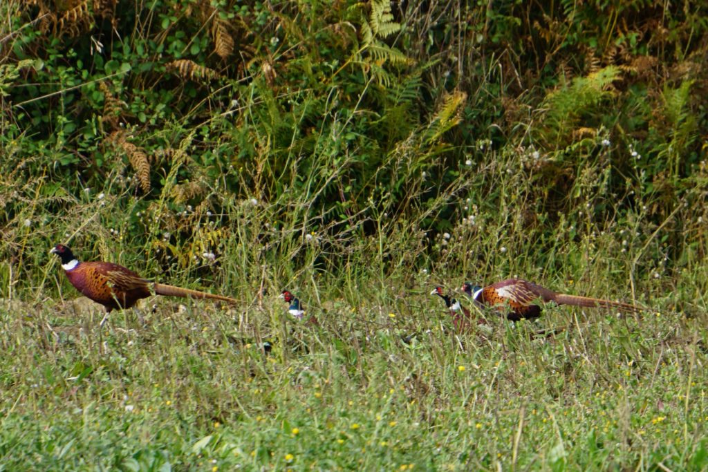 Unser Füchslein „Michelin“ wurde auf einmal ganz nervös: Fasane!!! Direkt vor unserer Windschutzscheibe. Die laufen hier einfach frei rum und posen auch noch schick. Es wurde sogar zu uns herüber gekollert! Haben wohl zu unverschämt geglotzt 😀 Zum Glück für die Fasane war Michelin im Moppel und konnte nur mit dem Fernglas die Beute sichten! Egal. Er hat sich dafür ein Bier aufgemacht 🙂