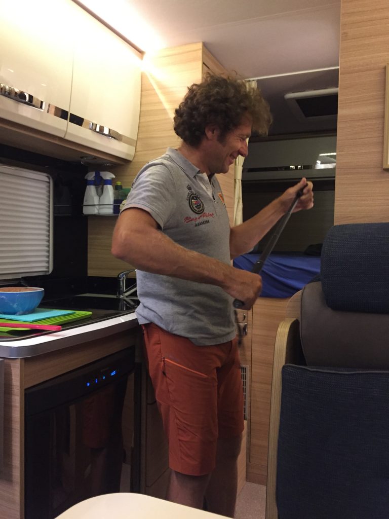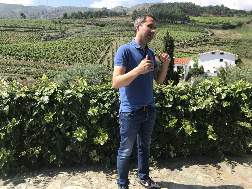 Nach dem leckeren Einstand in Porto sind wir tatsächlich dem Port-Wein entgegen gefahren: hinauf entlang dem Fluss Douro  (ca. 100 km) in die Weinanbau-Gebiete. Unsere unerreichte App Park4Night hat uns zu einem Weingut geführt, auf dem wir gratis stehen durften, vom jungen Chef Pedro auch noch super nett empfangen und am nächsten Tag bei einem 2 stündigen Wine-Tasting verwöhnt wurden. Eingelagert im Moppel-Weinkeller haben wir dann ca. 6 Flaschen, Käse und Olivenöl 😀