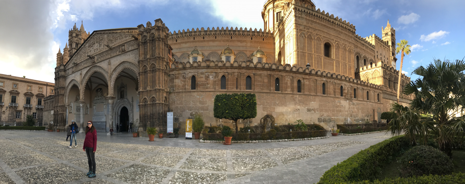 Zum Schluss gings noch in die Kathedrale von Palermo, in der die sterblichen Überreste der Stadtheiligen Rosalia liegen. Diesmal liegt die Spannung im Außen, da hier eine Kathedrale aus dem 6. Jahrhundert, von den Arabern zur großen Moschee Palermos und unter Normannenzeit, im 12 Jahrhundert, wieder zur Kathedrale umgebaut wurde. Ein absolut irrer Baumix, den wir so noch nirgends gesehen haben!!!