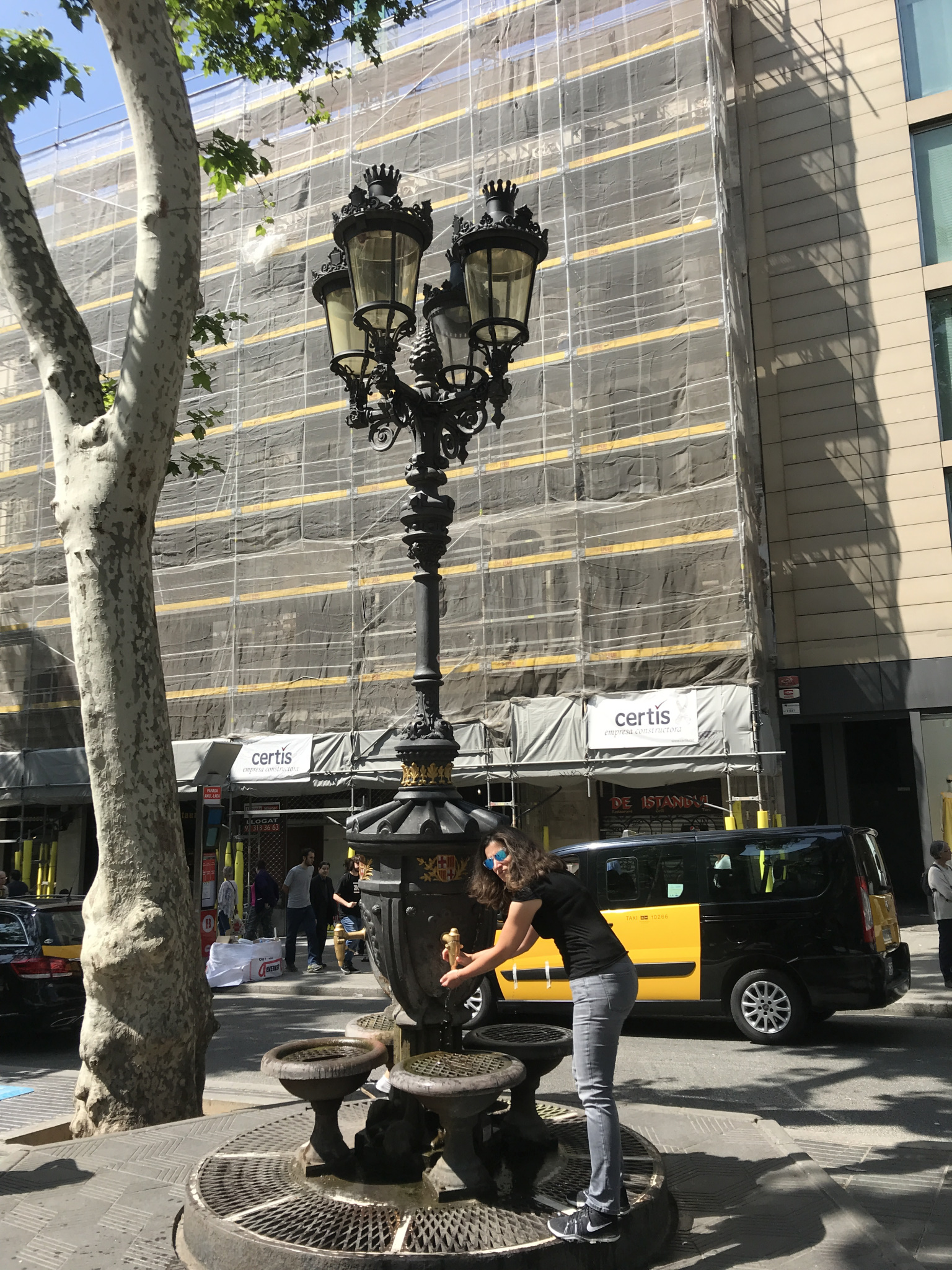 Praktisch! Wasser an der Laterne auf den Ramblas