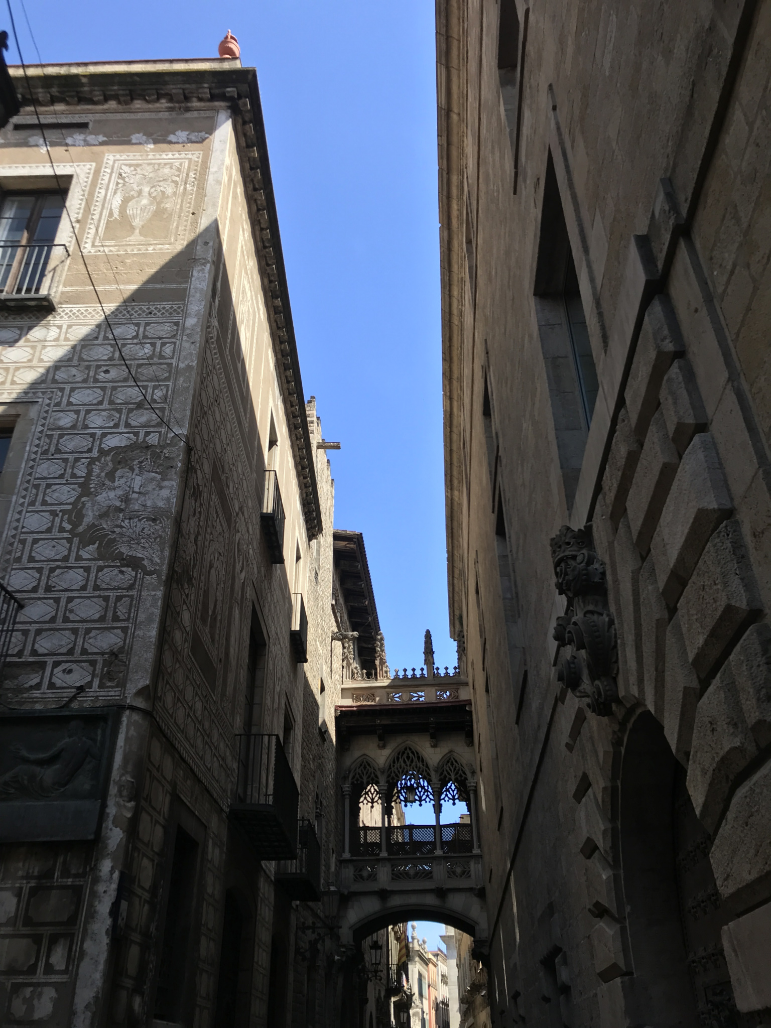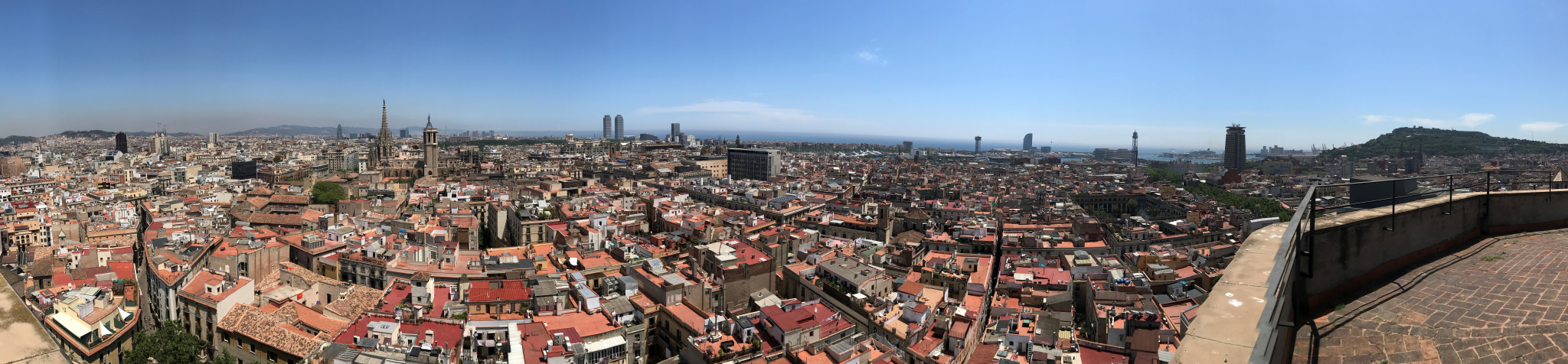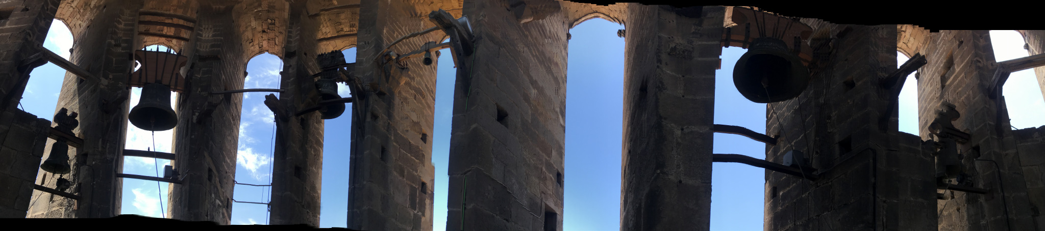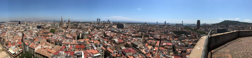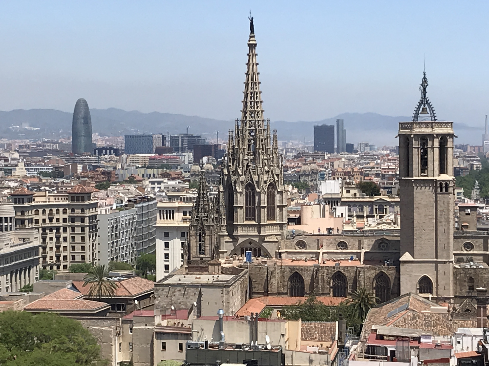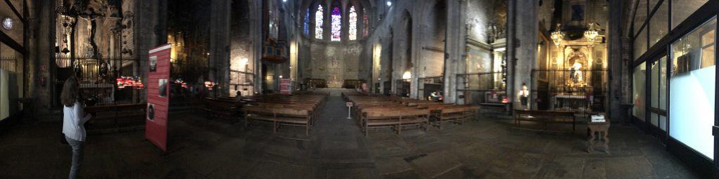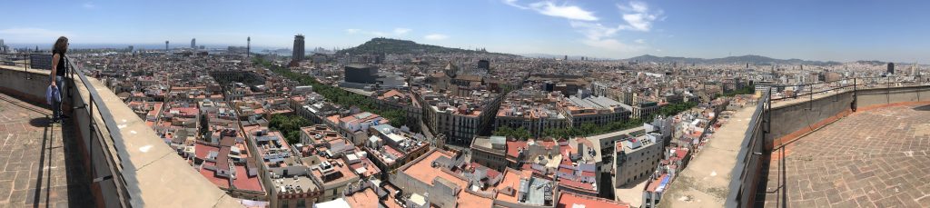 Die Stadt ist unglaublich voll mit Touristen, die berühmten „La Ramblas“ eher eine Touristenfalle. Der Markt, die Gaudi-Kirche (Sr Famiglia) und unser Zufallsfund (Alex‘ Wunsch, die Kirche zu besichtigen, St Maria del Pi), dafür der Hammer. In der Kirche, die Alex ausgesucht hat, hatten wir einen total netten jungen Guide, der uns auch viel über die Geschichte Spaniens erzählt hat. Und auf dem Turm mit sprachlos machender Aussicht über Barca, waren wir ganze 5 Personen. Super!