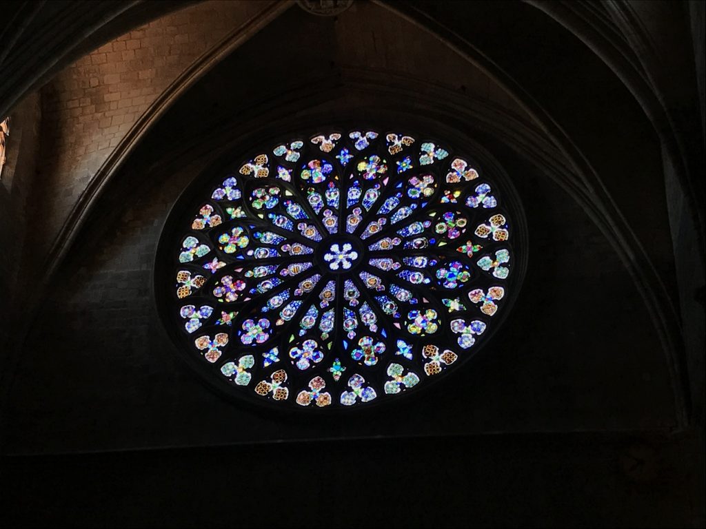 Eines der größten Rosen-Fenster Spaniens (mehrfach zerstört)