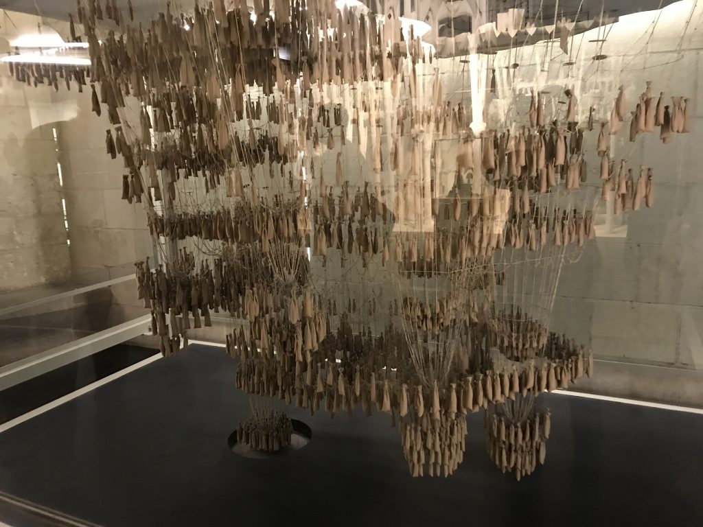 Trick: Modellbau mit perfekten Bogen: Seile gespannt und Bleisäckchen zum beschweren. Schaut man das Bild auf dem Kopf an, sieht man die spätere Turm-Konstruktion! Wie genial.