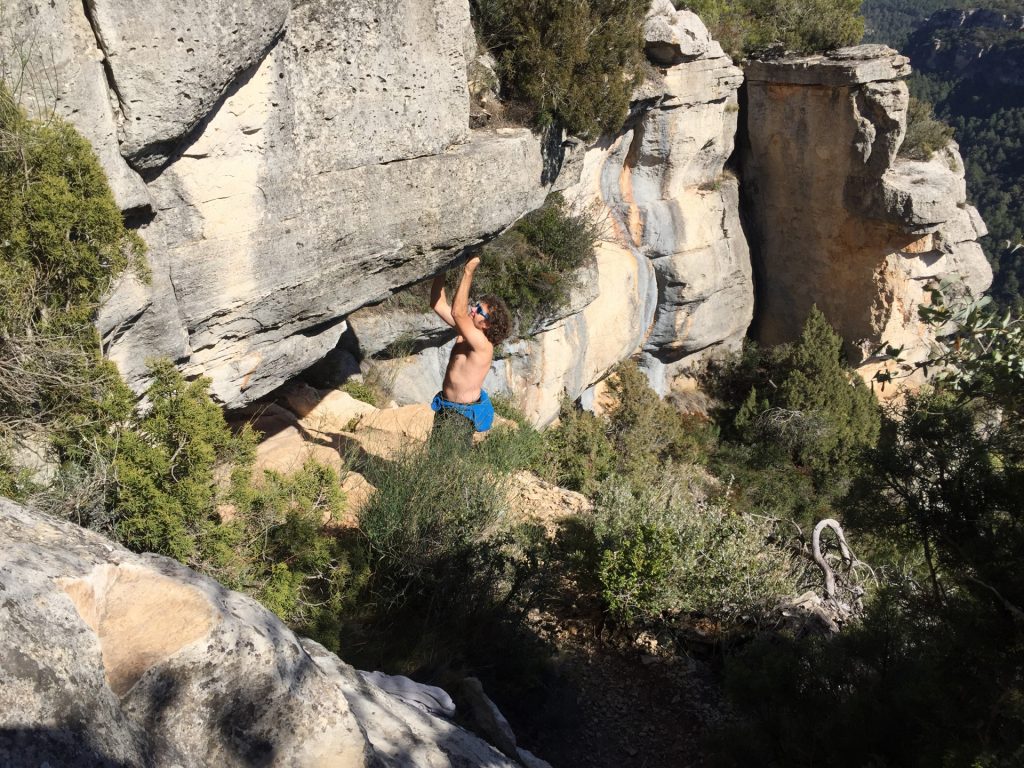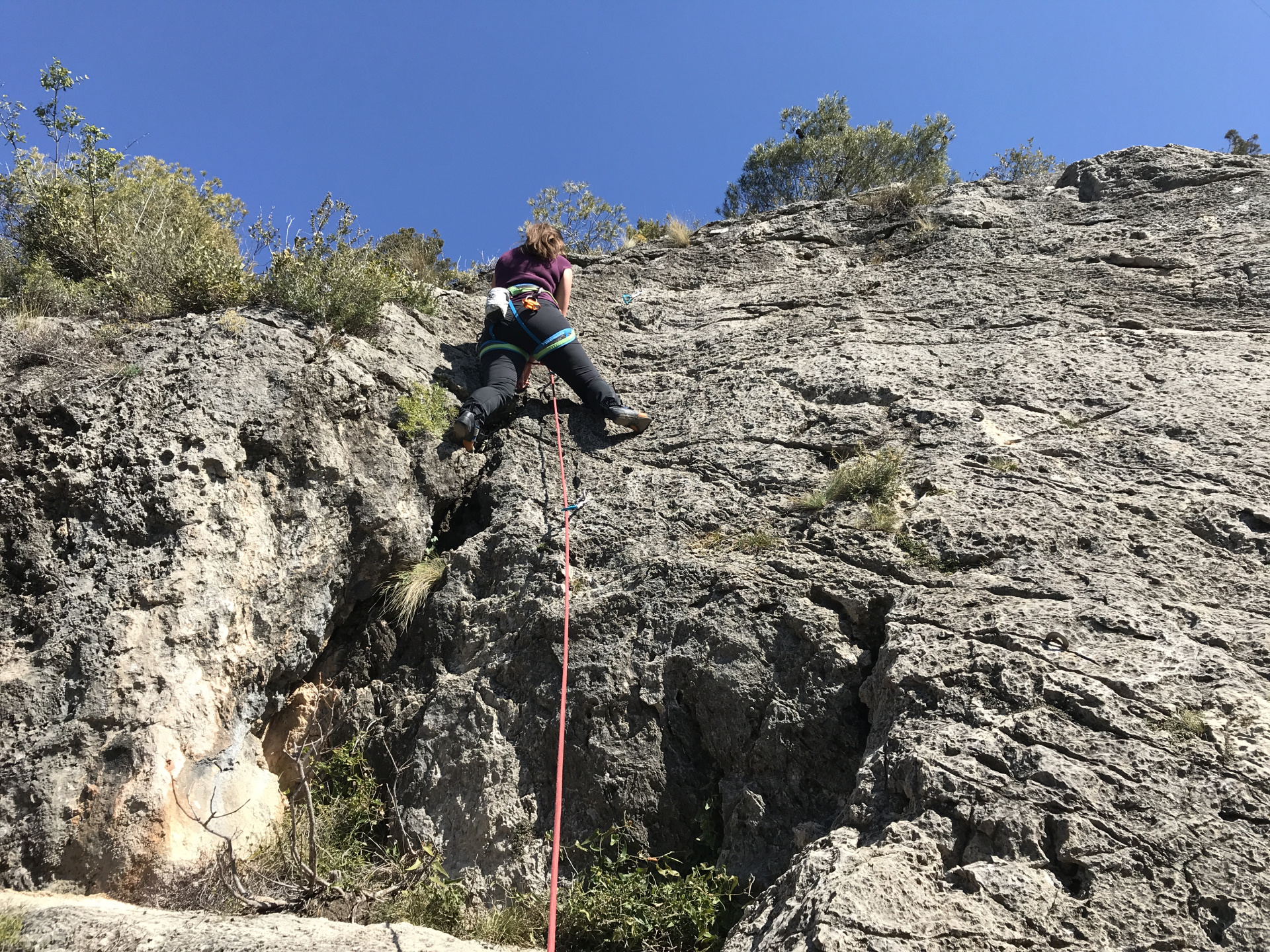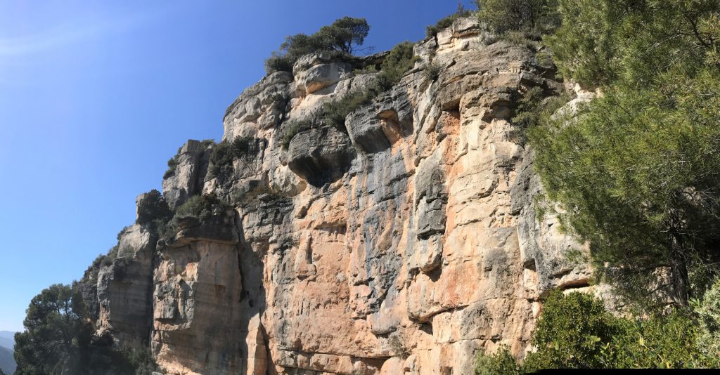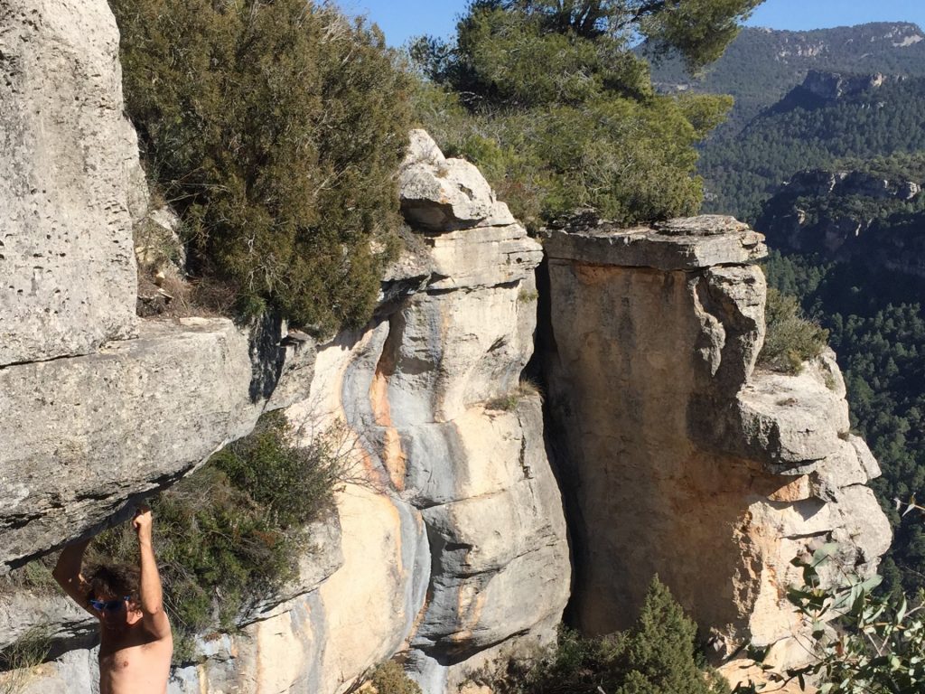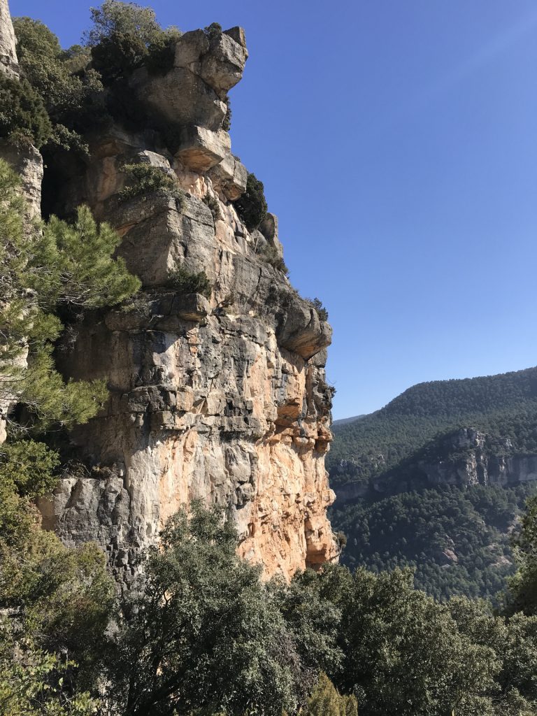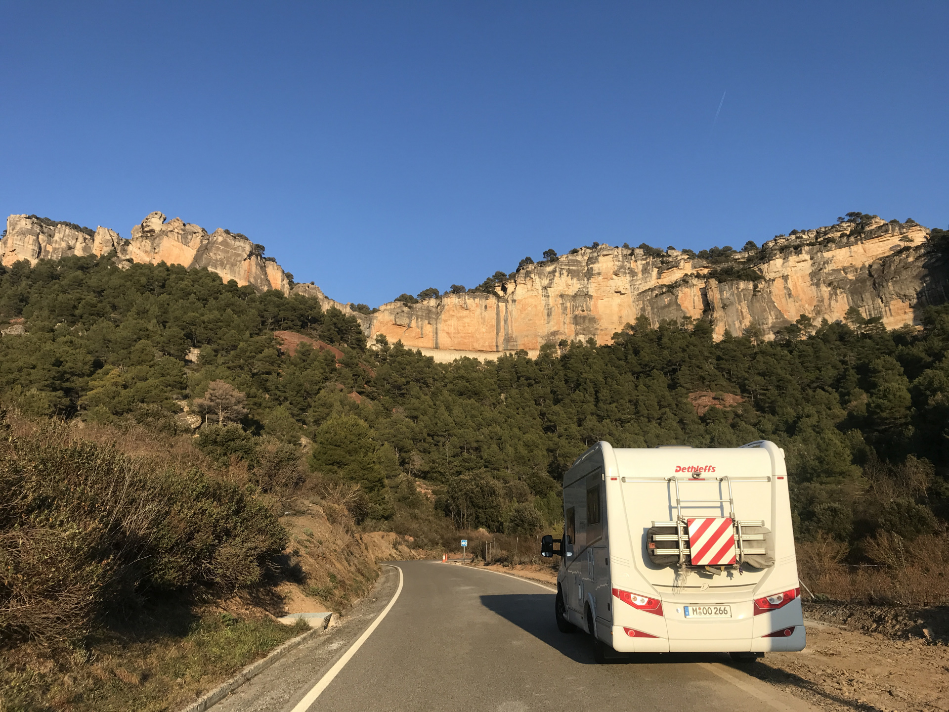 La Rambla, die schwierigste Ketterroute der Welt (zumindest 1994)! Die originale Route wurde 1993 von Alexander Huber eingebohrt und war damals die schwierigste Route im Grad 9a+ (oder 11/11+). Sie liegt im Klettergebiet Siruana nordwestlich von Barcelona und ist super spektakulär! Wir wollten uns das Klettergebiet nicht entgehen lassen und sind bei bestem Wetter auf den lokalen „Campingplatz“ gefahren. Der Stellplatz ähnelt einer Berghütte und ist sehr rustikal. Wir haben eine friedliche Nacht verbracht und sind am nächsten Tag voller Tatendrang zu den lokalen Kletter-Sektoren getiger – um festzustellen, dass die Routen mindesten eine Nummer zu schwer sind. Aufwärmrouten im 5. Grad gibst nicht und so sind wir nach einem tollen Ausblicken weiter zum kleinen Dorf Arboli gleich in der Nähe gefahren. Dort gibt es deutlich einfachere Routen und die haben wir am nächsten Tag ausgiebig beklettert. Leider ist gerade die Wechselsaison der Kiefernprozessionsspinner-Raupen, die auch überall unterwegs waren. Sie sind hochgiftig und leider ziemlich zahlreich. Uns haben sie nicht gestört, nur Familien mit kleinen Kindern und vor allem Hunden meiden die Gegend um diese Jahreszeit großflächig. Trotzdem ein schöner und sehr lohnender Ausflug!