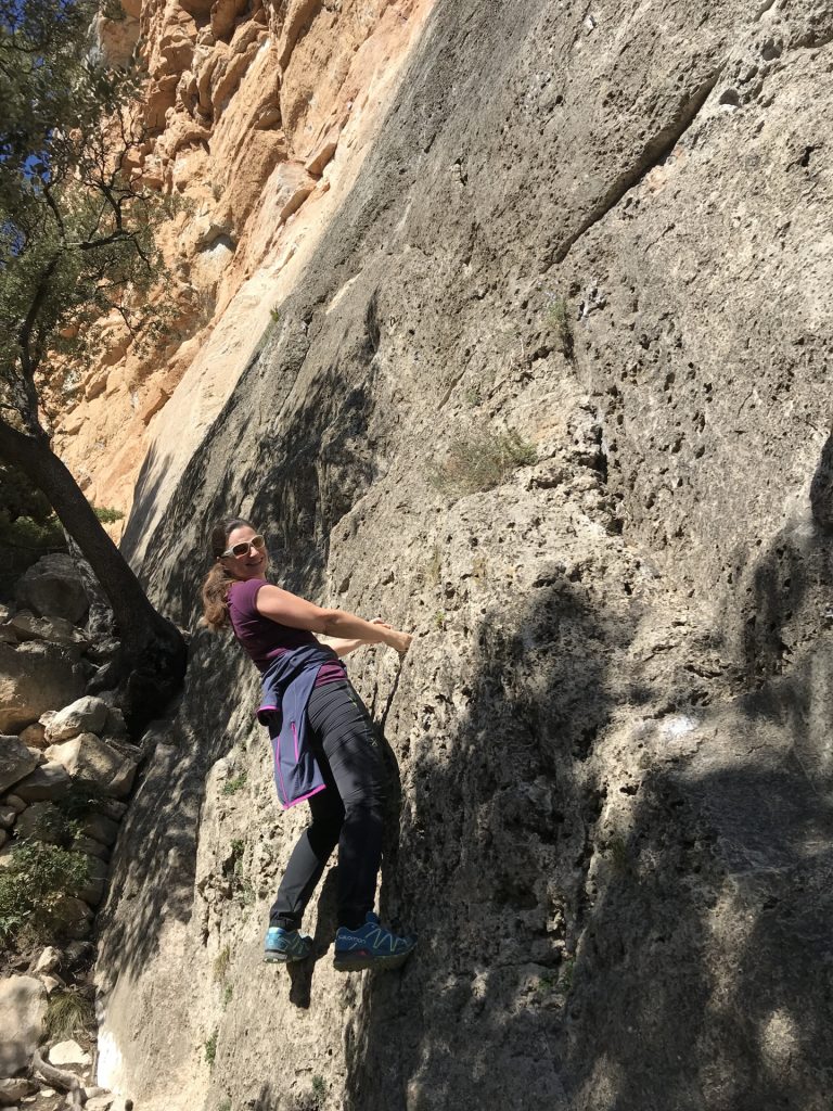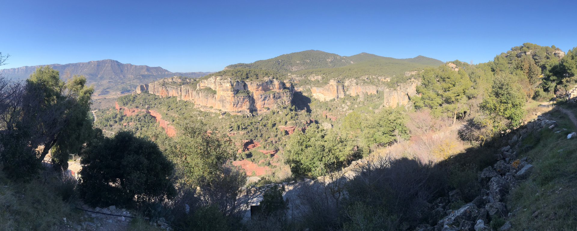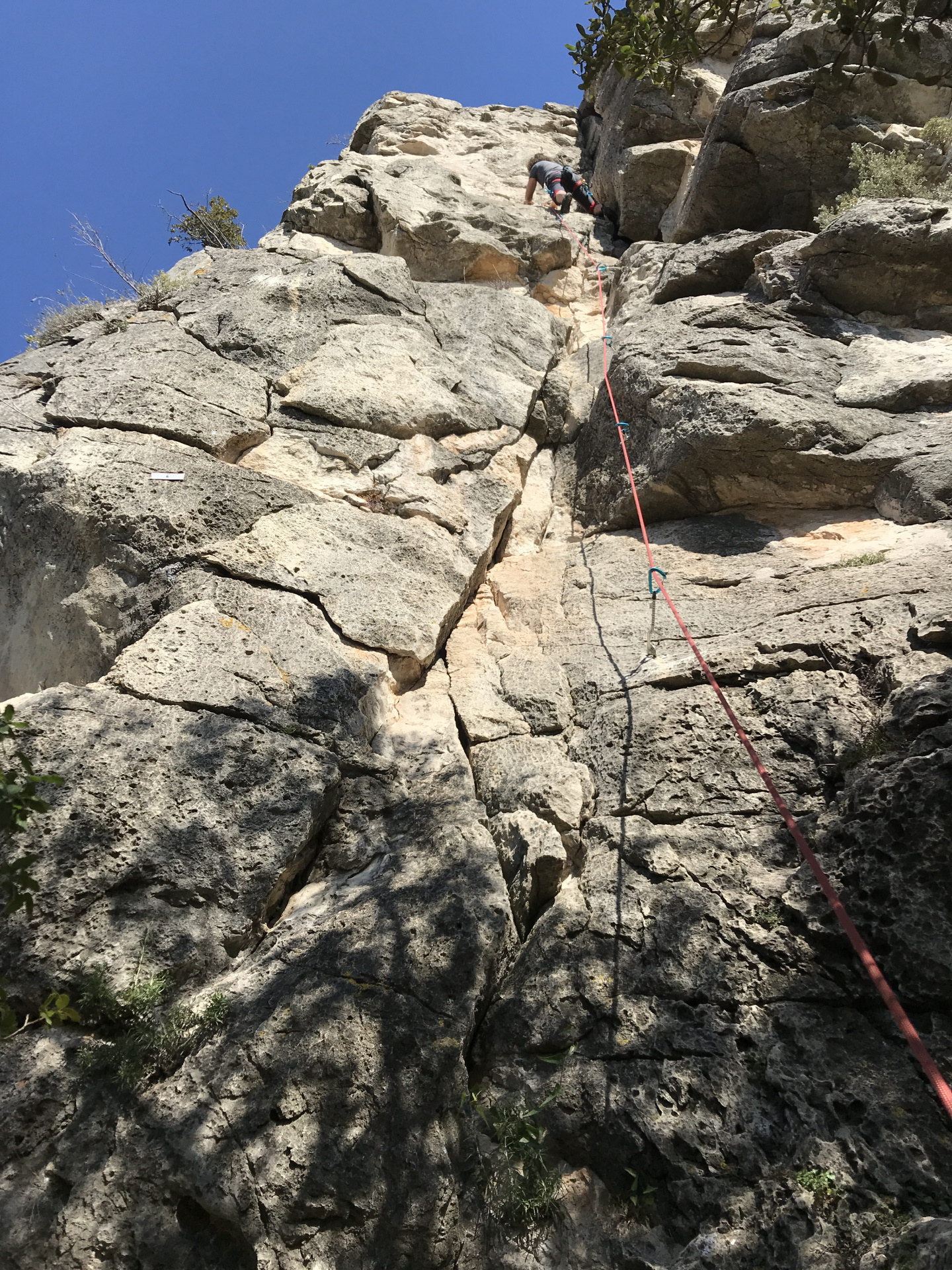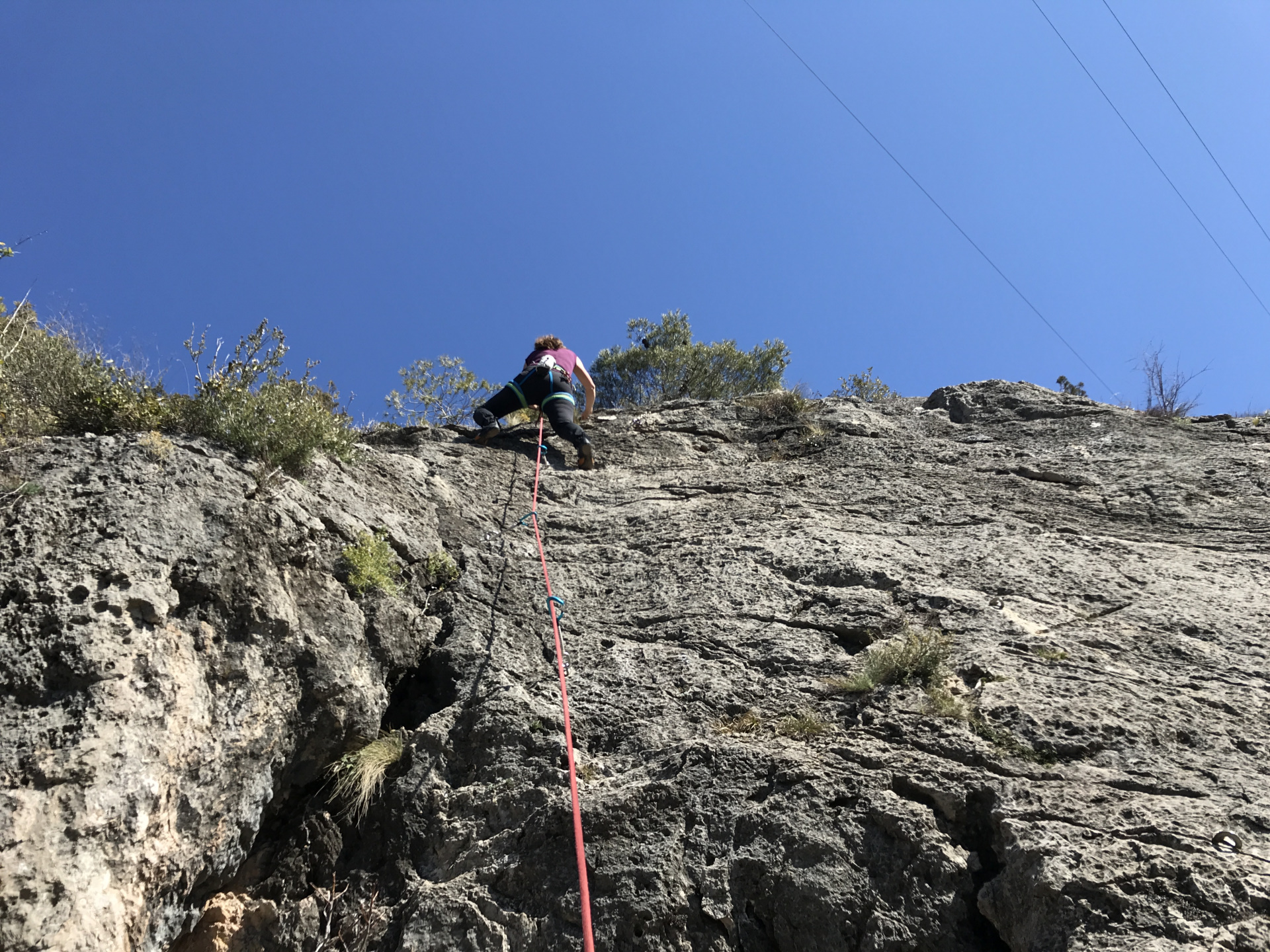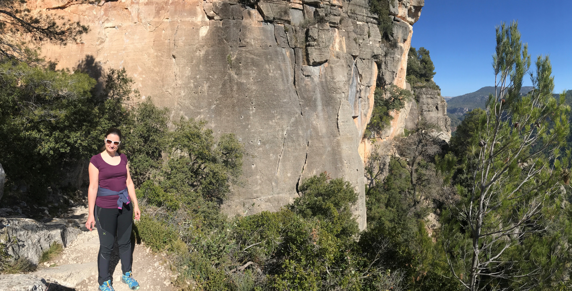 La Rambla, die schwierigste Ketterroute der Welt (zumindest 1994)! Die originale Route wurde 1993 von Alexander Huber eingebohrt und war damals die schwierigste Route im Grad 9a+ (oder 11/11+). Sie liegt im Klettergebiet Siruana nordwestlich von Barcelona und ist super spektakulär! Wir wollten uns das Klettergebiet nicht entgehen lassen und sind bei bestem Wetter auf den lokalen „Campingplatz“ gefahren. Der Stellplatz ähnelt einer Berghütte und ist sehr rustikal. Wir haben eine friedliche Nacht verbracht und sind am nächsten Tag voller Tatendrang zu den lokalen Kletter-Sektoren getiger – um festzustellen, dass die Routen mindesten eine Nummer zu schwer sind. Aufwärmrouten im 5. Grad gibst nicht und so sind wir nach einem tollen Ausblicken weiter zum kleinen Dorf Arboli gleich in der Nähe gefahren. Dort gibt es deutlich einfachere Routen und die haben wir am nächsten Tag ausgiebig beklettert. Leider ist gerade die Wechselsaison der Kiefernprozessionsspinner-Raupen, die auch überall unterwegs waren. Sie sind hochgiftig und leider ziemlich zahlreich. Uns haben sie nicht gestört, nur Familien mit kleinen Kindern und vor allem Hunden meiden die Gegend um diese Jahreszeit großflächig. Trotzdem ein schöner und sehr lohnender Ausflug!