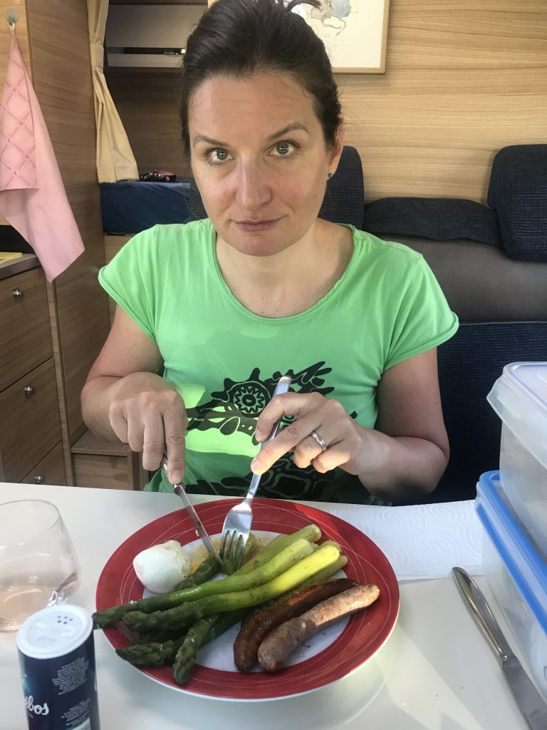 Weiter ist erstaunlich: Erdbeeren sind sehr teuer, Spargel kostet nichts. Sie wollen wohl partout alles anders als die Deutschen machen 😀 Uns wachsen die Stangen (die es wirklich überall in Massen gibt) bald zu den Ohren raus, aber es gilt: Spargel und Rose-Wein und man hat ein perfektes Abendessen!