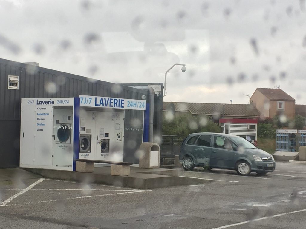 Dafür haben wir heute die Wetter-Waschküche wörtlich genommen und gleiches erledigt: Hier bietet die Supermarktkette „Intermarche“ Münz-Waschmaschinen, Trockner und Autowasch-Vorrichtungen an: Da kann man den ganzen Haushalt neben dem Einkauf erledigen, wo gibt es denn so was? Und wer braucht da noch eine eingerichtete Wohnung??? 😊