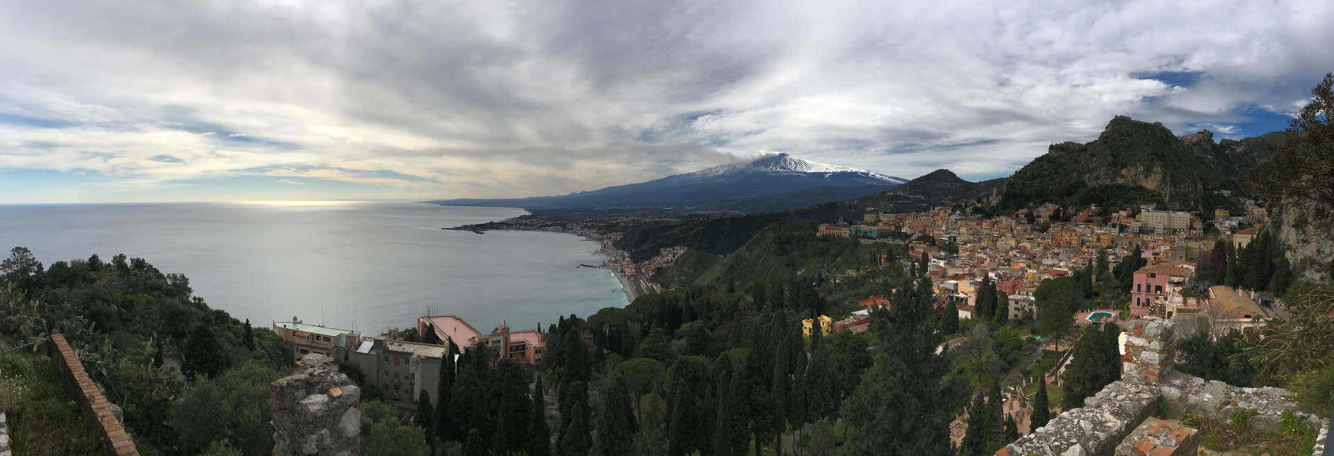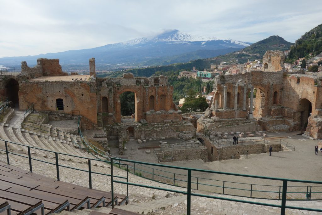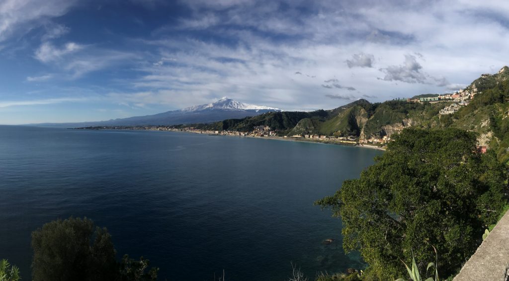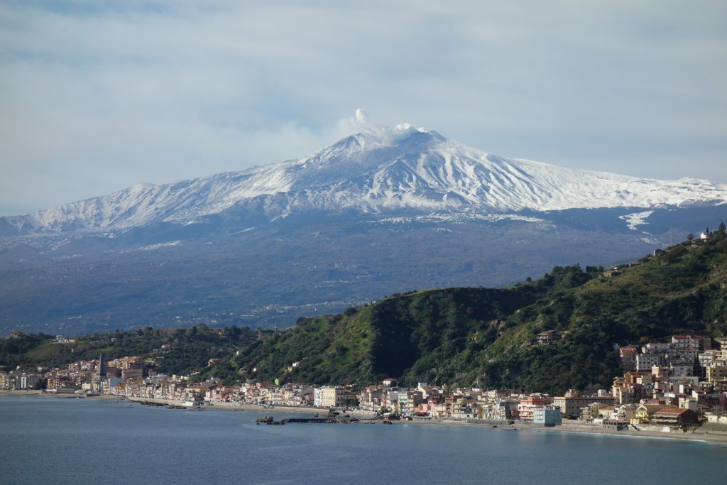 Der Ätna zeigt sich in Taormina von seiner schönsten Seite; diese Ansicht ist auch in zig (historischen) Gemälden verewigt