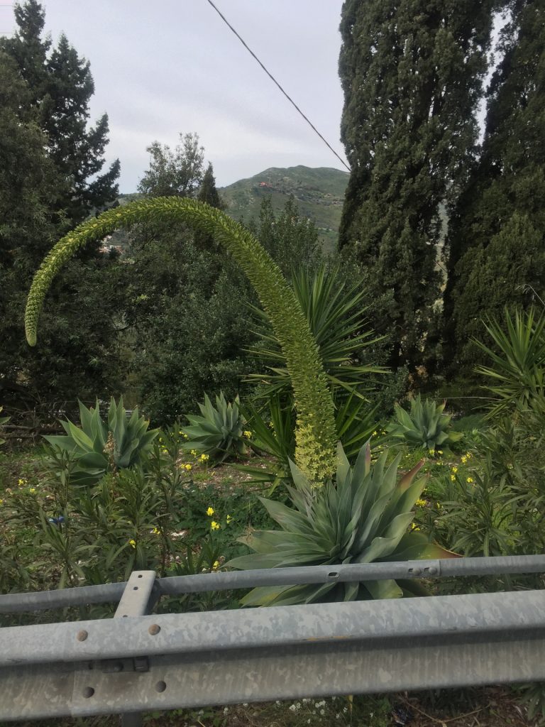 Der Weg nach Milazzo führt uns wieder durch die Berge vorbei an den „Villaggi Schisina„, 7 Dörfern die in den 1950er Jahren als soziales Projekt angelegt wurden, um armen Bauern und Landarbeitern die Möglichkeit zu einem Neuanfang zu geben. Der italienische Staat kaufte Land in großem Umfang und baute für eine Milliarde Lire 164 Häuser in 7 Dörfern. Mit Kirche und Schule, aber leider ohne fließendes Wasser und Strom. Die Häuser wurden zudem architektonisch sehr schick mit Flachdach gebaut (leider völlig unpraktisch, da von Anfang an undicht). Die Häuser wurden per Lotterie zugeteilt, aber von den 164 möglichen Häusern nahmen nur 100 Aussiedler das Los überhaupt an. Von diesen versuchten ein paar wenige ihr Glück und scheiterten nach ein paar Jahren an den harten Bedingungen – im Winter viel Schnee und in den ungeheizten Häusern bitterkalt, im Sommer dagegen brühtend heiß und kein Wasser. So verfallen die Häser seitdem und sind ein Mahnmal für die (in Süditlien allgegenwärtige) Verschwendung von Steuergeldern.