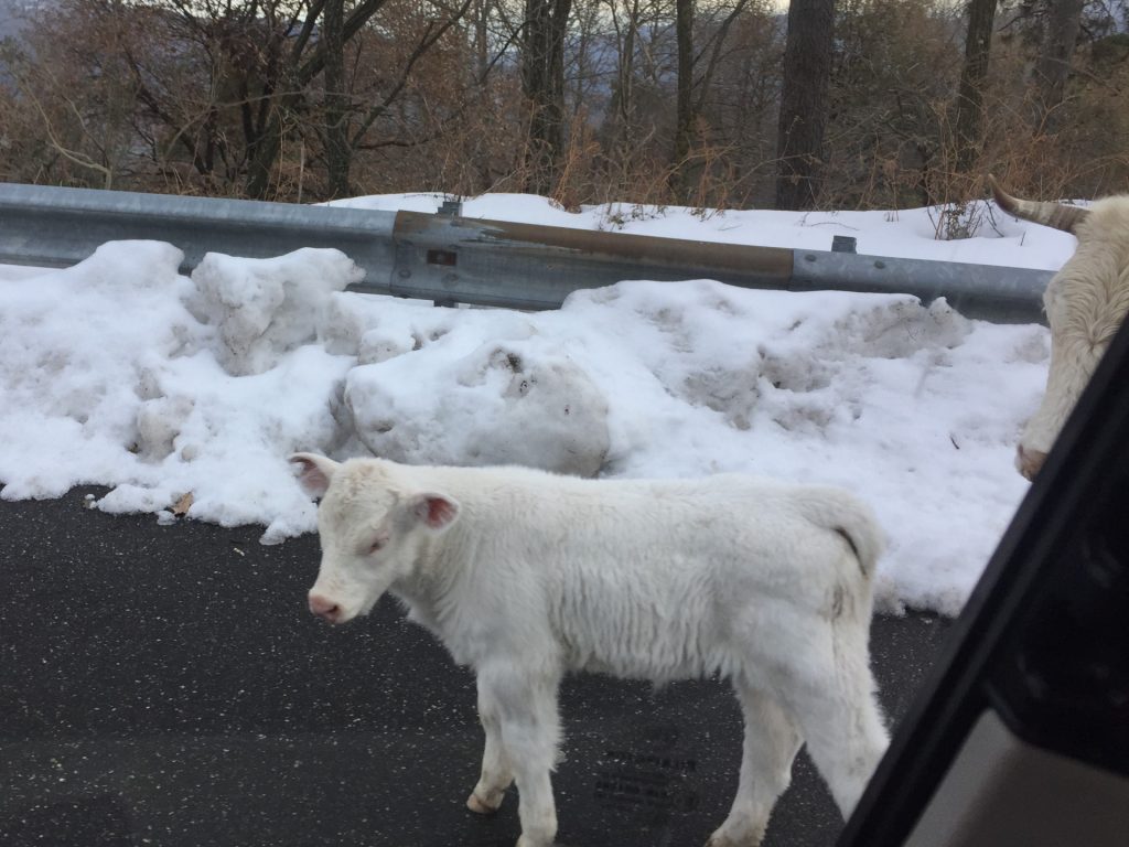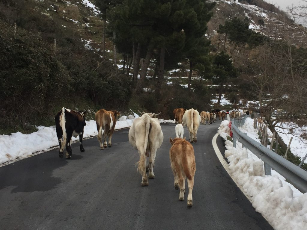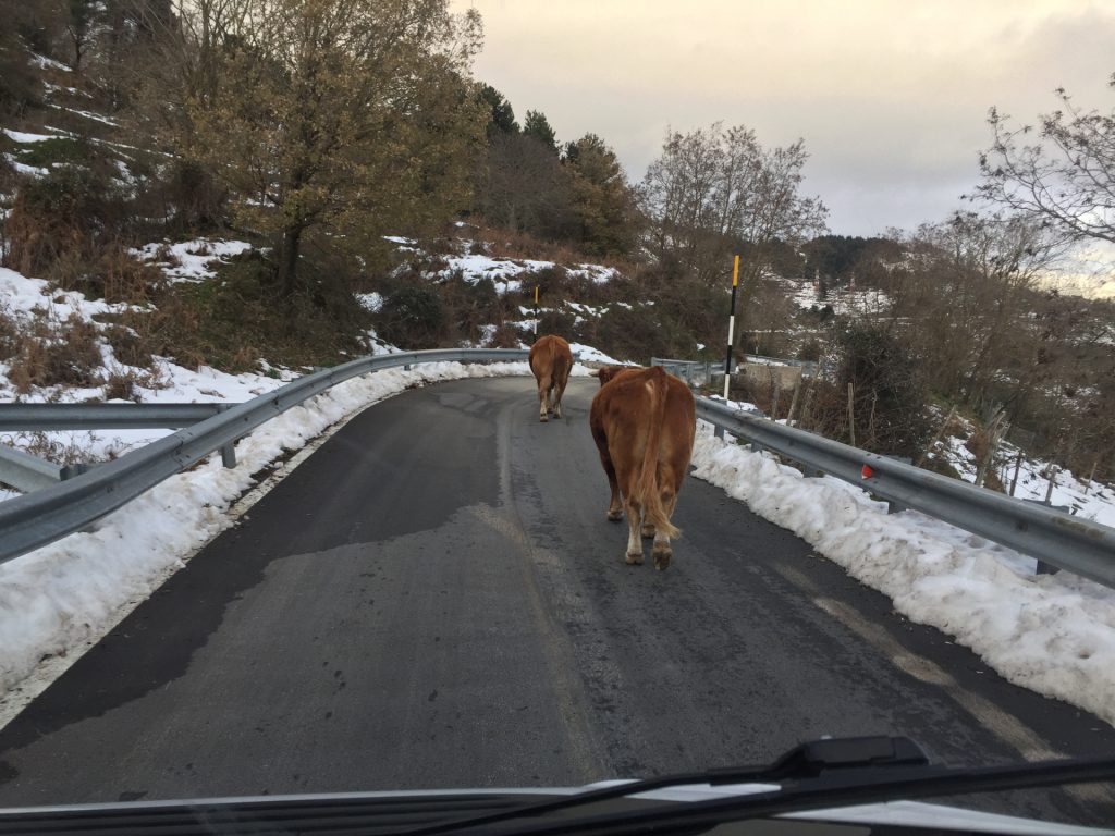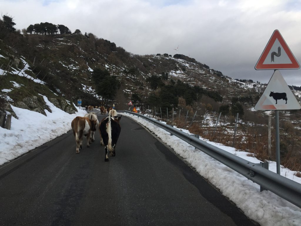 Auf dem weiteren Weg dann doch noch ein Bauer (im Auto! :)) mit seiner Kuhherde.