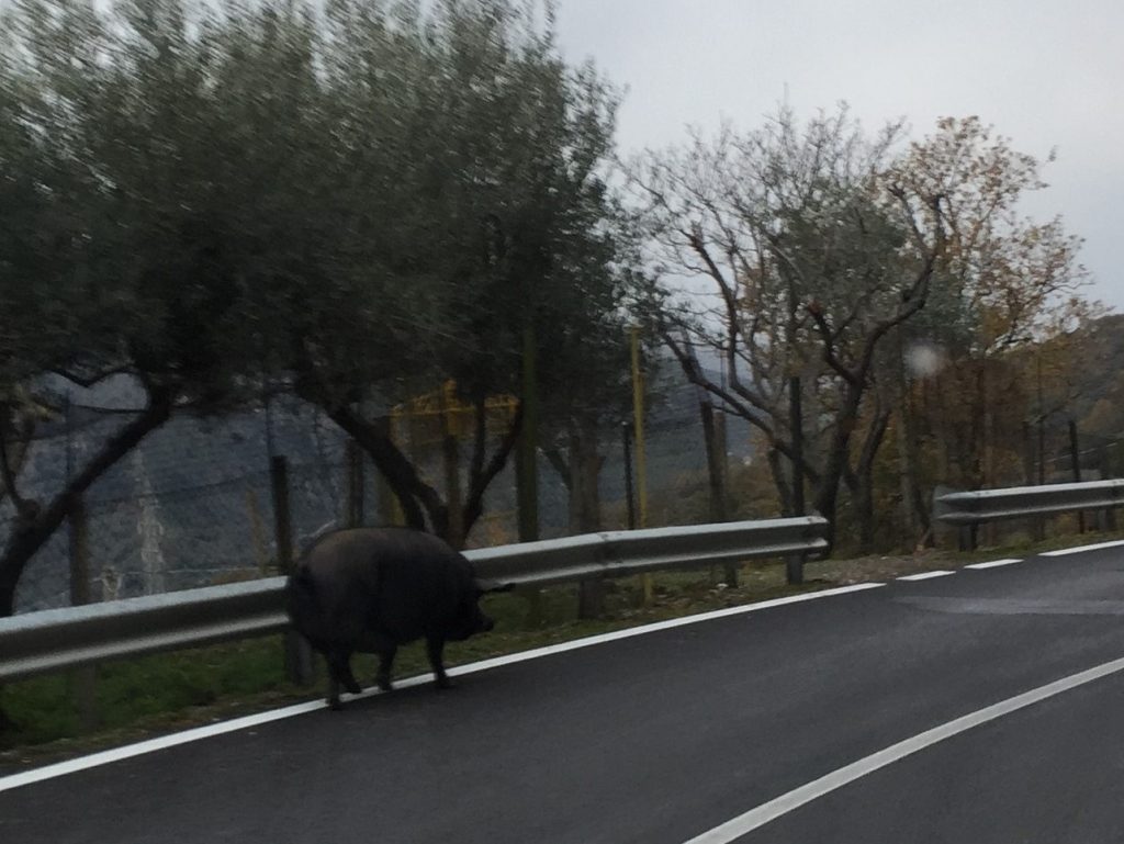 Und zum Abschluß noch eine riesige Sau(erei). Mitten auf der Landstrasse!