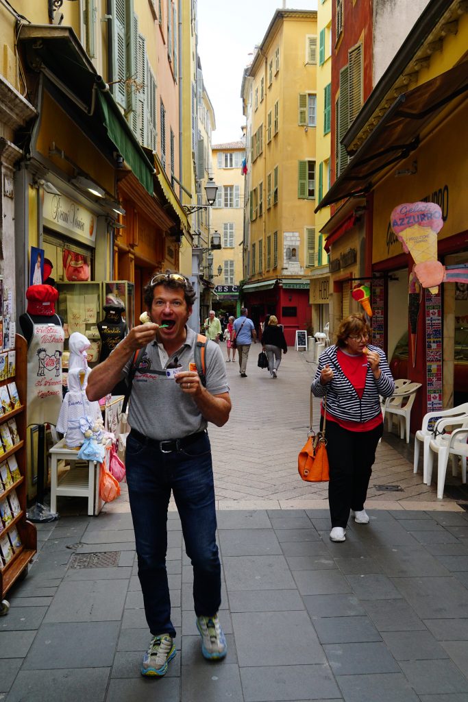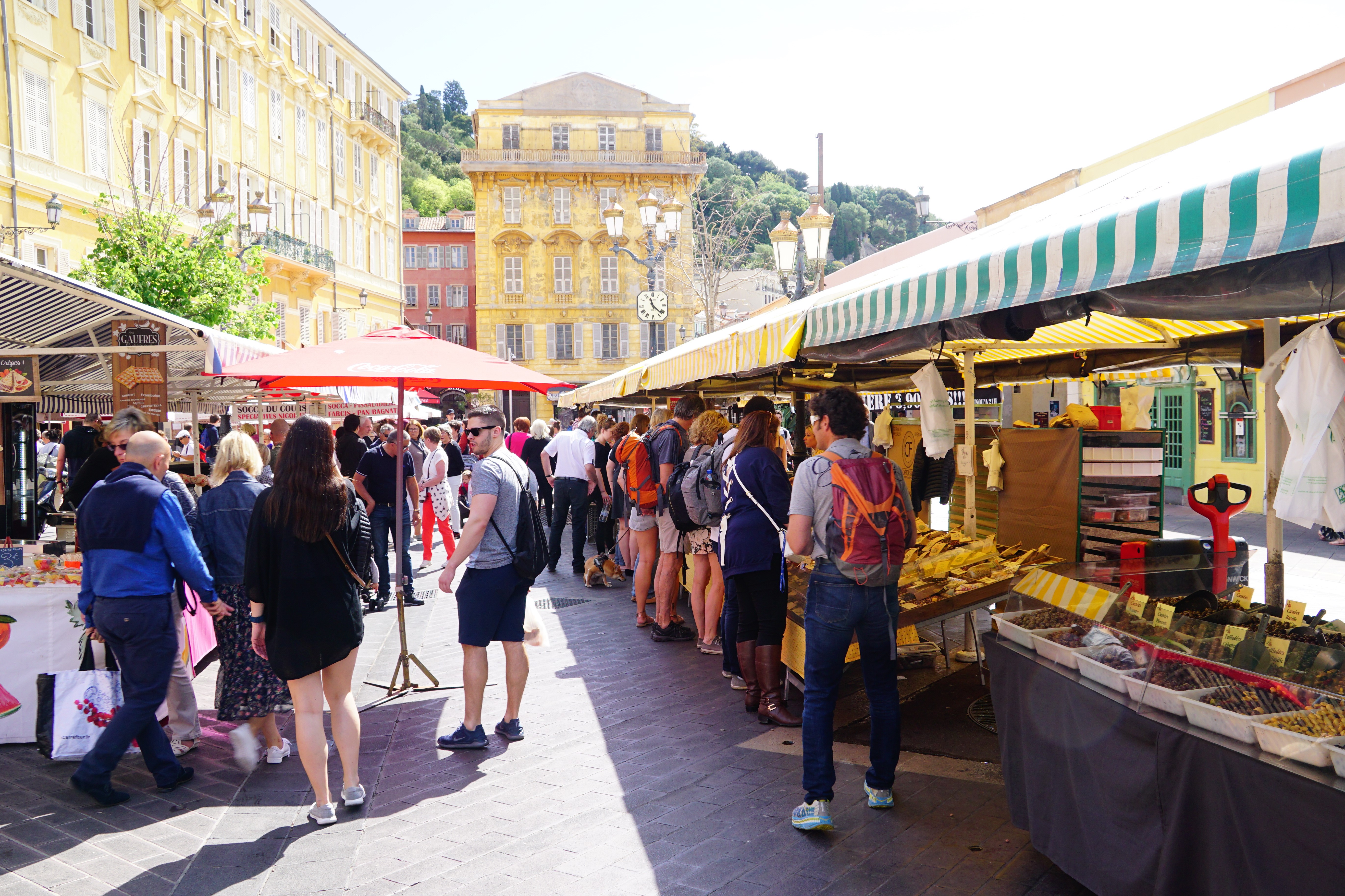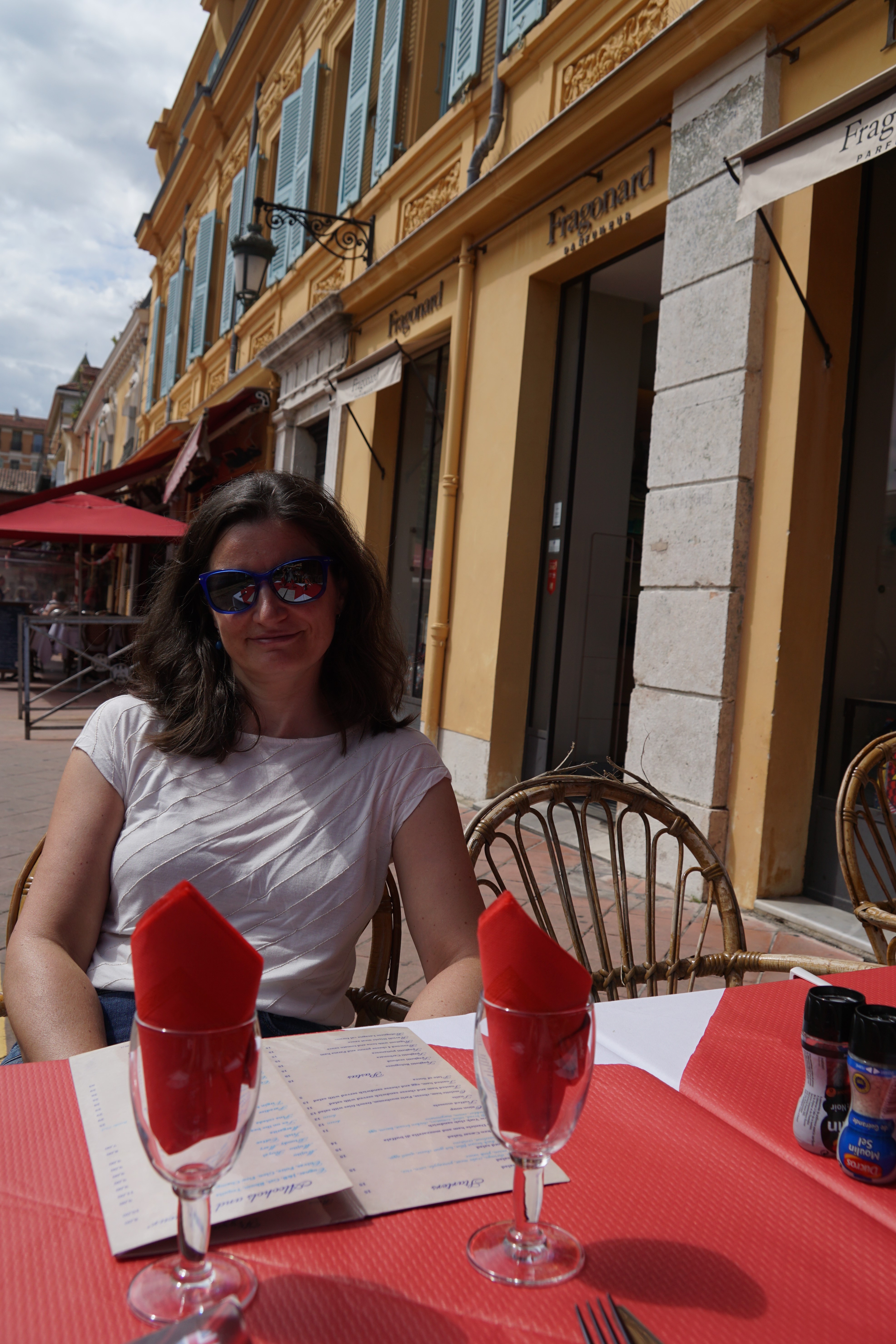 Unser Besuch in Nizza: Moppel im sicheren Nest gelassen und den 200er Bus 50 min nach Nizza geritten. Für 1,50 EUR pro (großer) Nase! Très chick. Nizza ist sehr groß und sehr busy. Der Markt sehr nett! Ich frage mich täglich, wie die Franzosen nur so schlank bleiben..