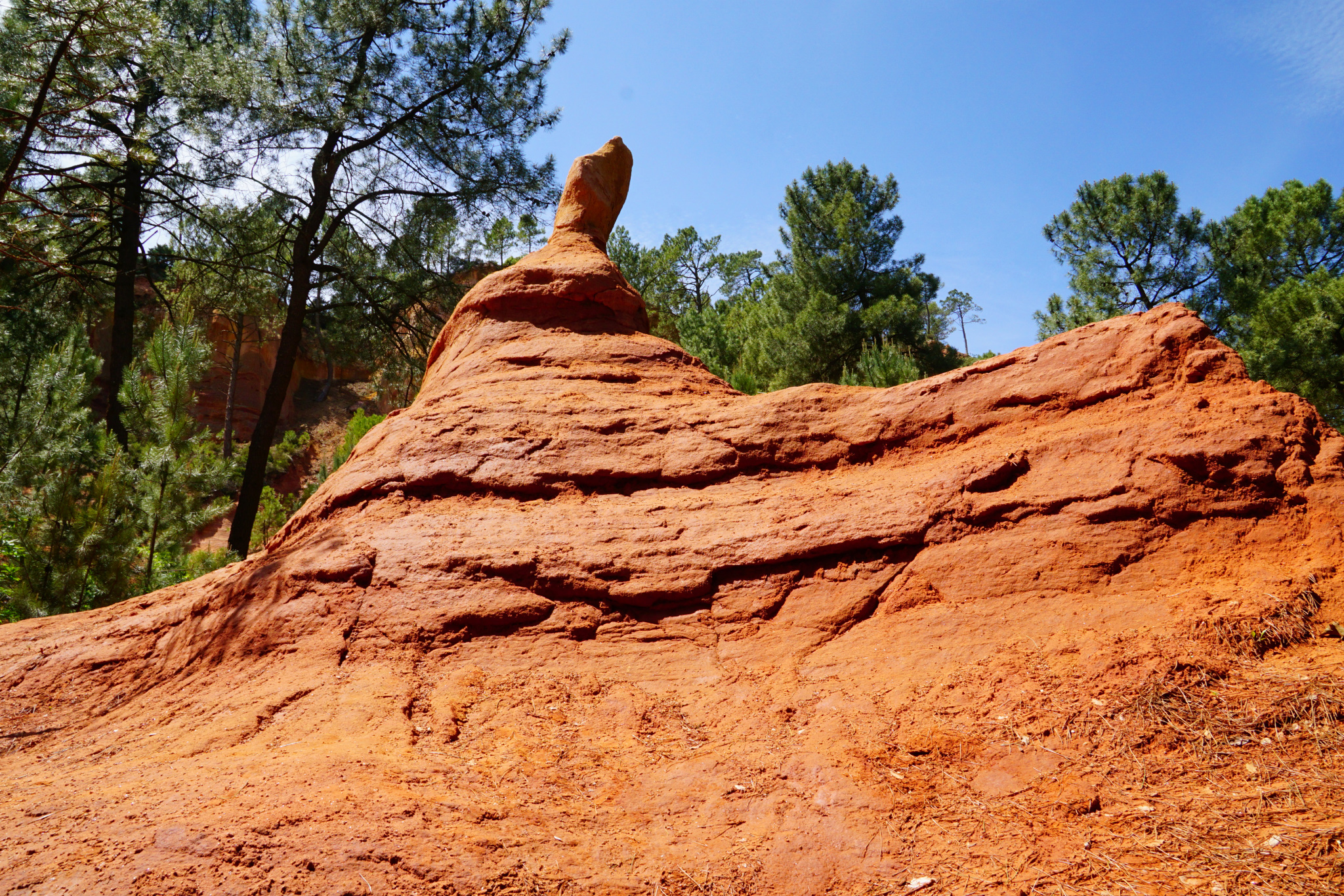 ..Roussillon und dessen Ocker-Steinbrüche. Die fanden schon die Römer schön und haben angefangen, hier abzubauen.