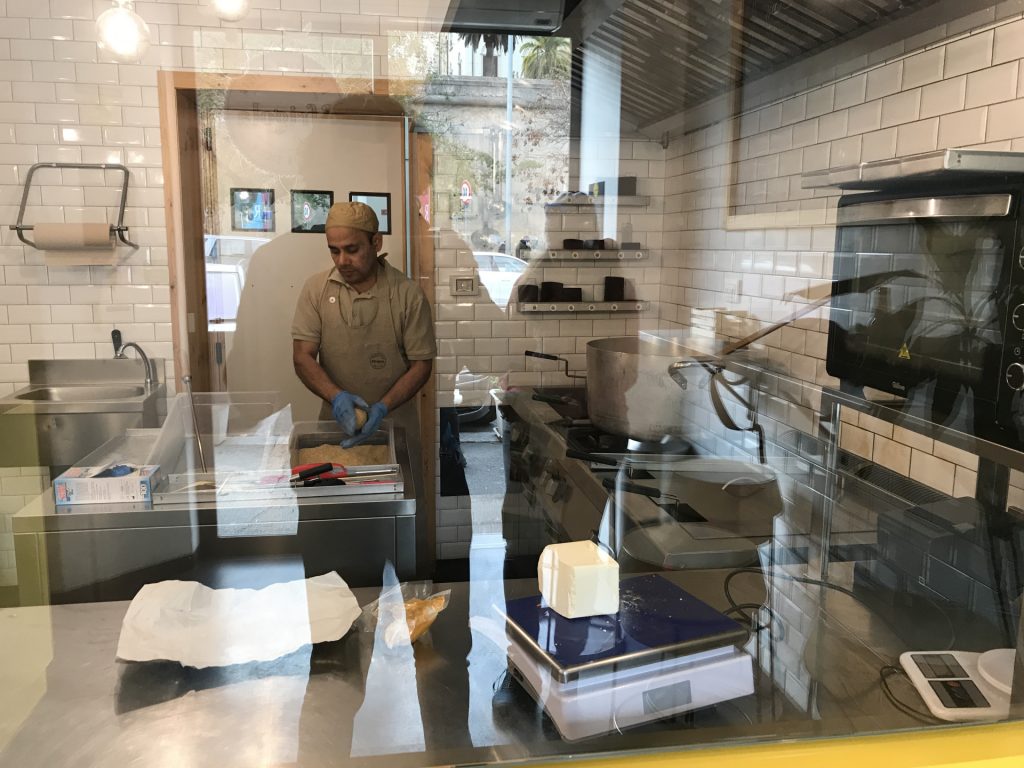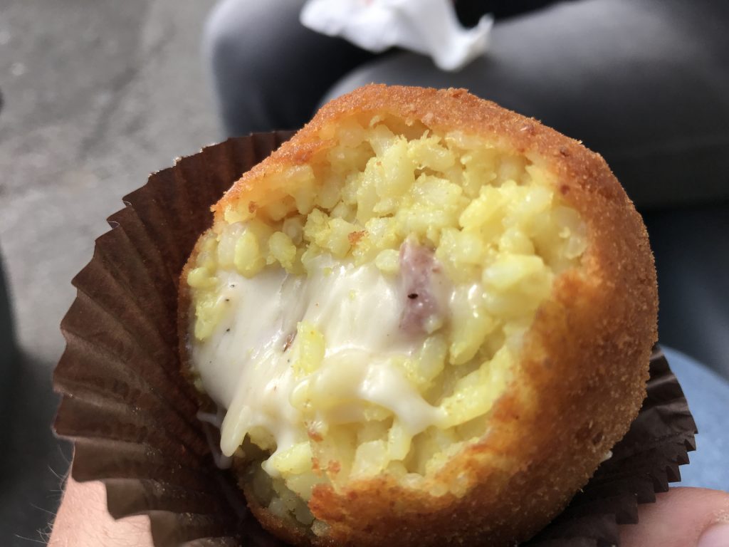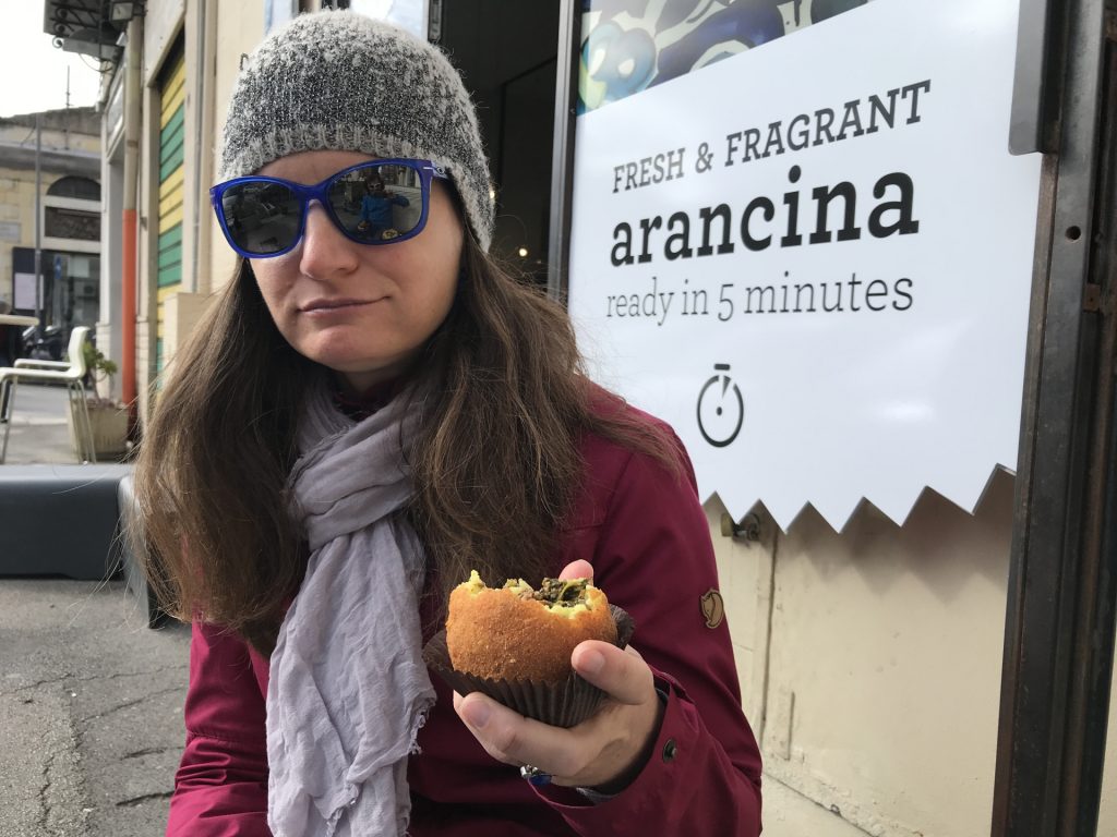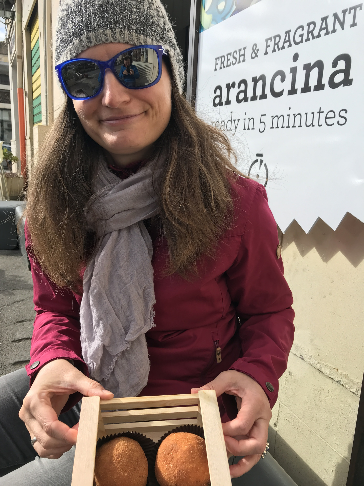 Danach gings schnurstracks zu einer Arancini Bäckerei die frische Aranchinis macht. Wer sie nicht kennt (ich kannte sie vor unserer Sizilientour nicht), es ist ein orangengroßer, panierter und frittierter Reisball, der mit verschiedenen Füllungen versehen wird. Klassisch ist Ragu, es gibt ihn aber auch vegetarisch, mit Käse, Nüssen,…. Einfach LECKER und frisch zubereitet.