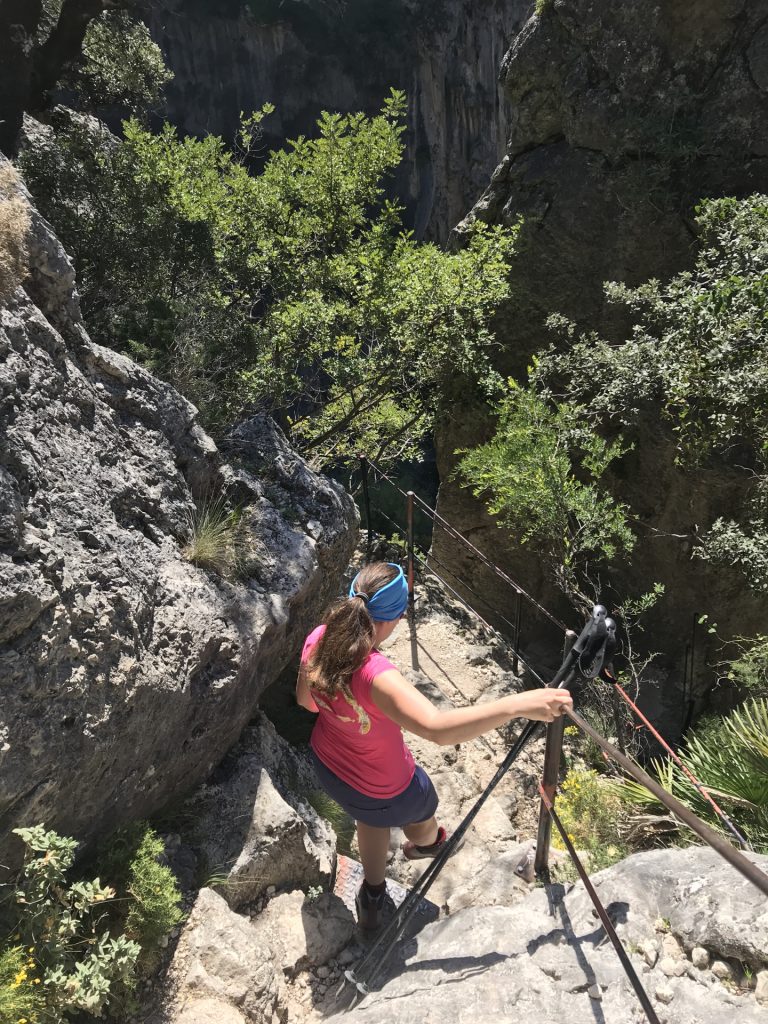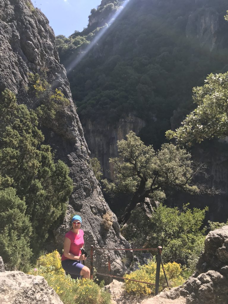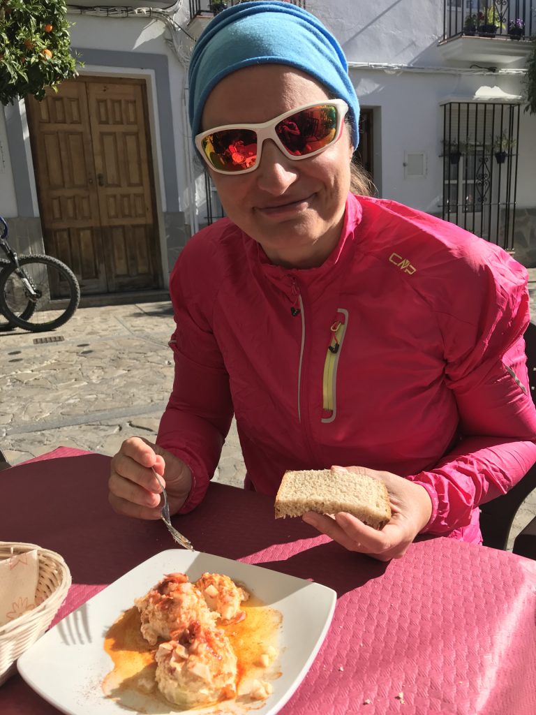 Nicht nur fliegen soll man toll in Algo können, es gibt auch eine sehr bekannte Wanderung. Uuuund wir haben ja Zeeeeit 😀 Also, nix wie los in die Garganta Verde. Mit den E-Bikes losgelegt (600 hm bis zum Eingang der Schlucht) und dann an den wunderbaren Geiern (die dort in den Felswänden brüten) hinunter ins Unterwelten-Paradies. Die Schlucht liegt im Grazalema Nationalpark und ist mehr als 300 Meter tief eingeschnitten. Die Wände hängen bis zu 50 Meter über und sind übervoll mit herrlichster Vegetation und allen Arten von Vögeln. Unglaublich schön! Und keiner da.. 😀 Ein Traum. Haben uns alles angesehen und dann gings aus der Wunderwelt wieder ans Sonnenlicht nach oben. Weiter geradelt ins schöne Zahara, als Tapas-Experten wollten wir doch gleich noch einmal in unsere neue Lieblings-Bar.. 😀 Wohlverdient! Und was für ein Traum-Wetter.. Wie nennt sich das gleich noch mal? Traum-Urlaub?!? 😀