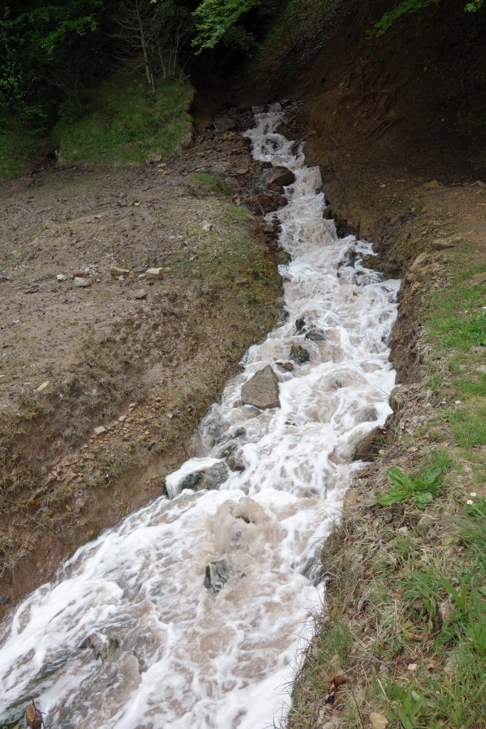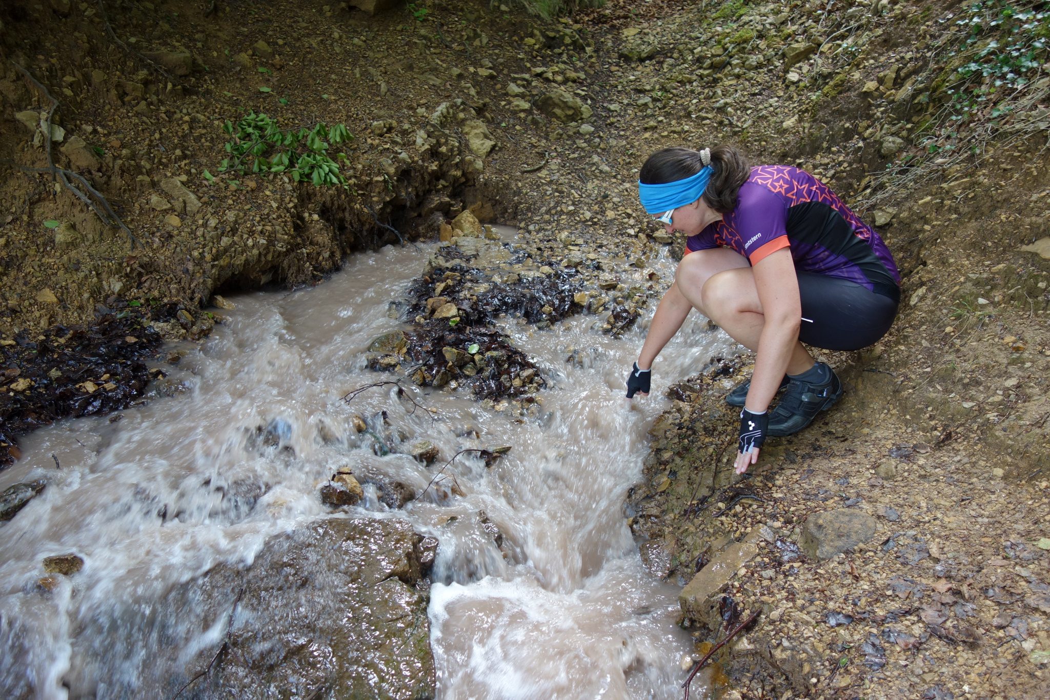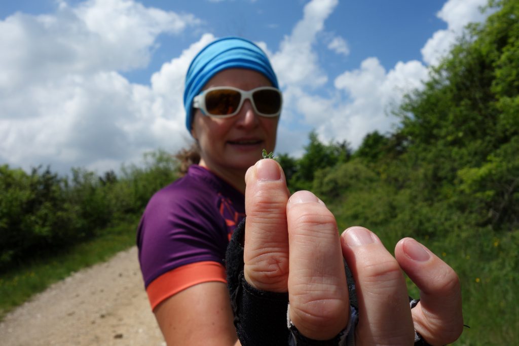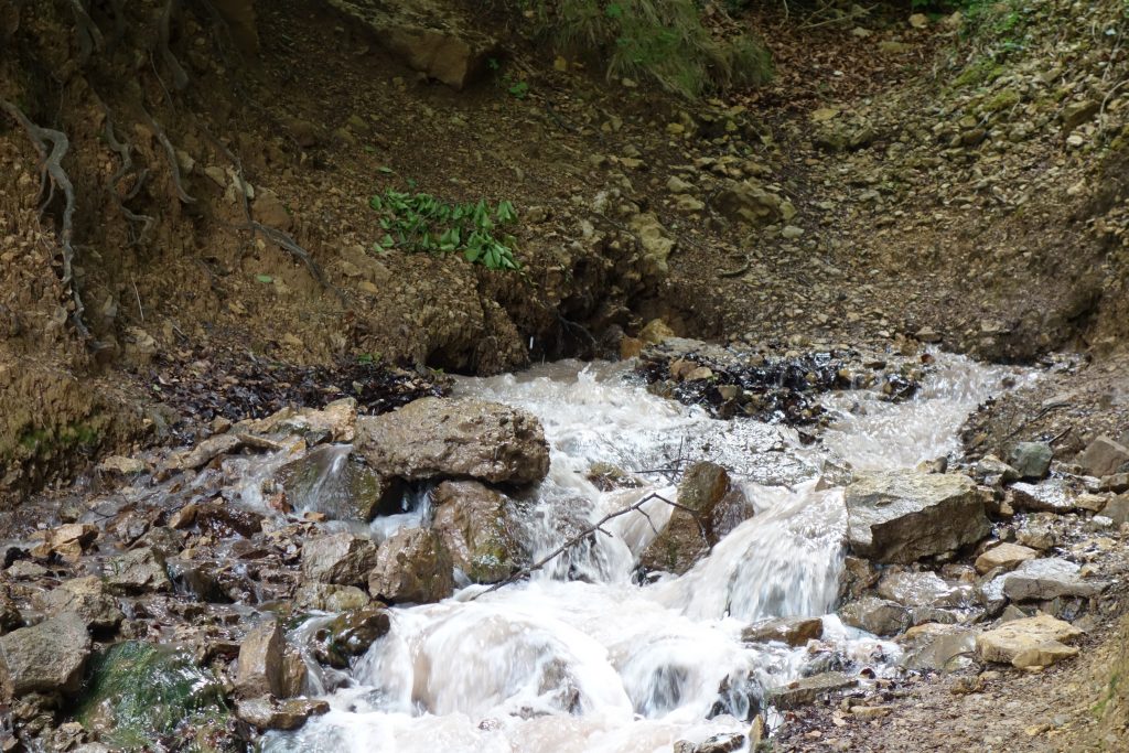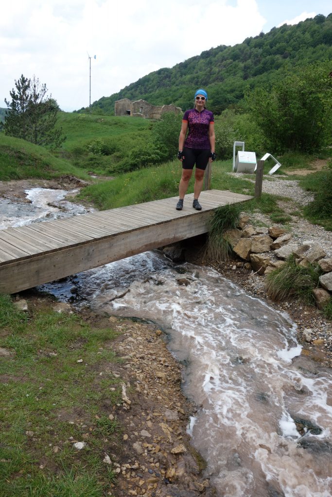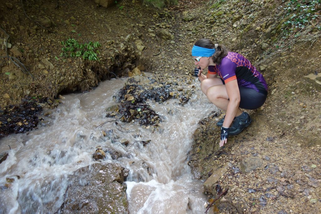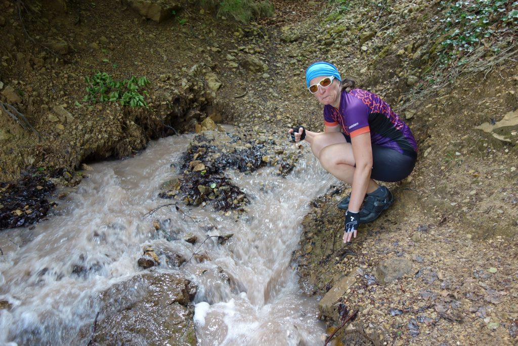 Endlich einmal wieder eine Radeltour! Und dann noch zu einem besonderen Ziel: einer sprudelnden Bach-Quelle, die Salzwasser führt! Eine salzige Erdschicht (verdunstetes prähistorisches Meer) wird von Sickerwasser durchspült und tritt als Salz-Quelle an die Oberfläche. Um als salziger, algiger Bach lustig weiter zu sprudeln. Schmeckt echt scheußlich salzig! Sehr nette Radeltour. Über Nacht hat es dann wieder so gewittert, dass wir in dem für diese Region wohl typischen Lehmboden krass versunken und fast stecken geblieben wären! Ein wenig Stress ist schon aufgekommen, aber das Team „Moppel-Alex-Sandra“ hat die Situation bravourös gemeistert und wir waren (sogar nur eher leicht verschmutzt… …die Schuhe hatten mehr abbekommen als der Dethleff) wieder frei.