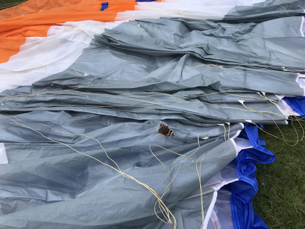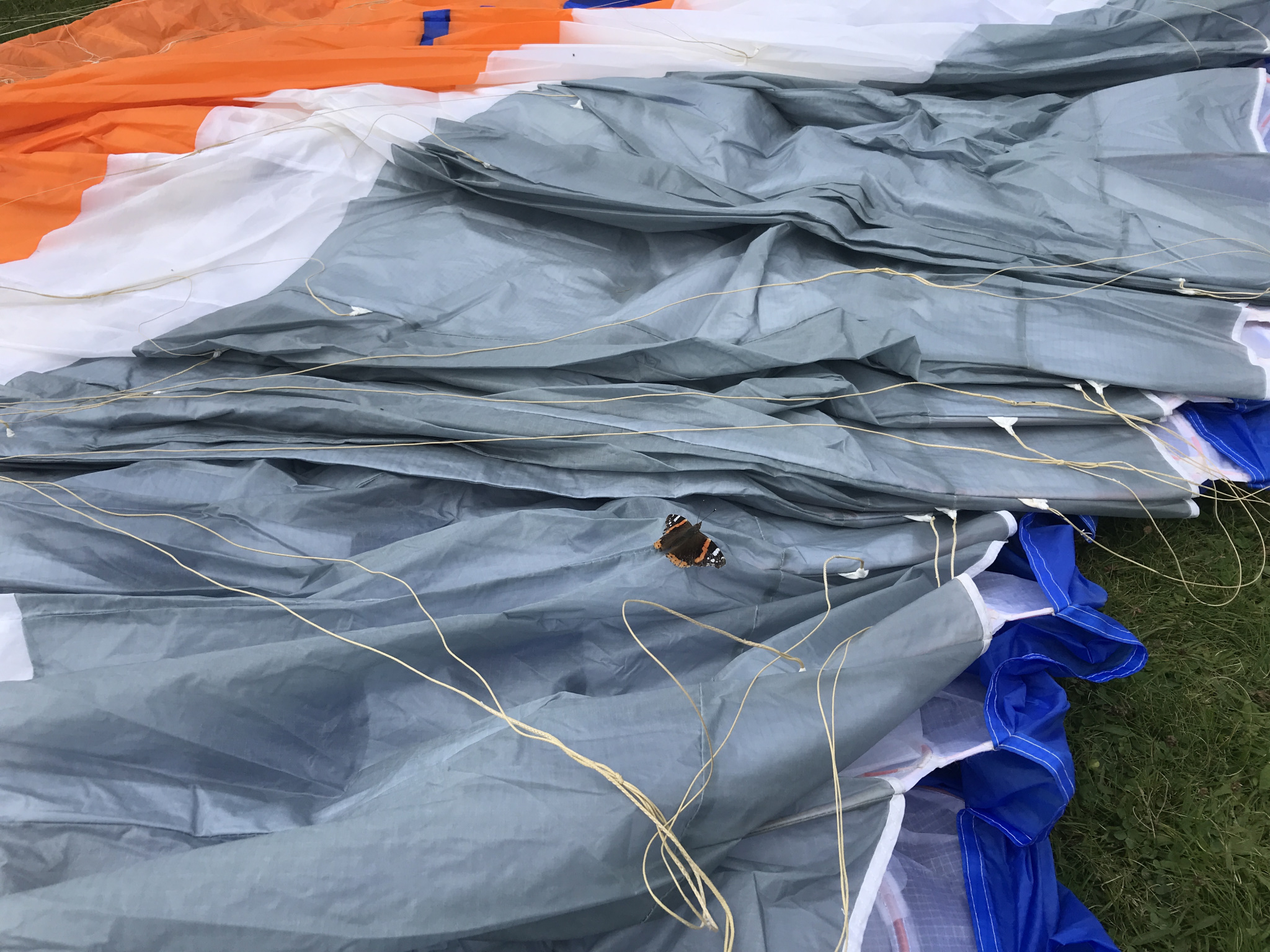 Zuerst Sandras Traumvorwärtsstart (der Kollege links im Bild hat seit 10 Minuten auf etwas Wind zum Rückwärtsaufziehen gewartet und schon ein paar mal abgebrochen)..